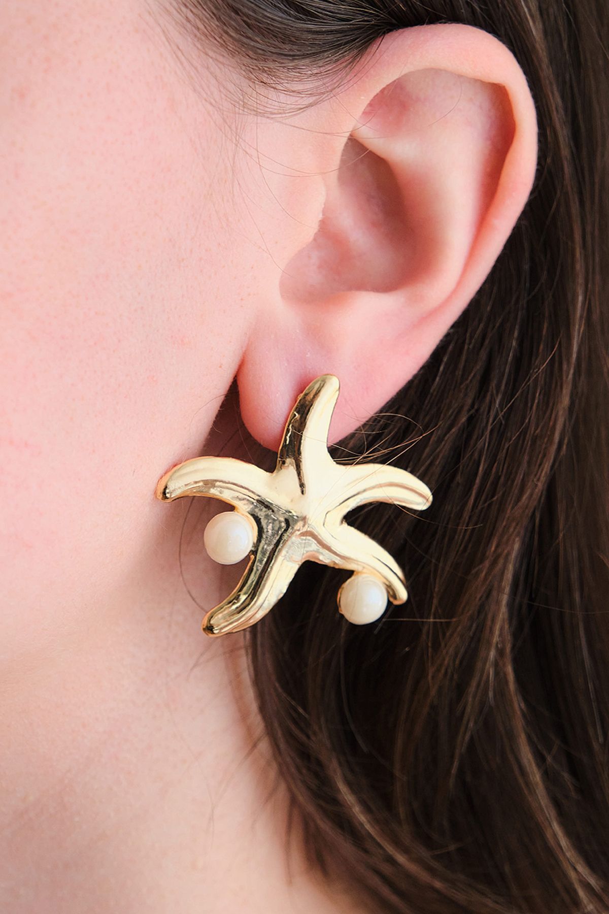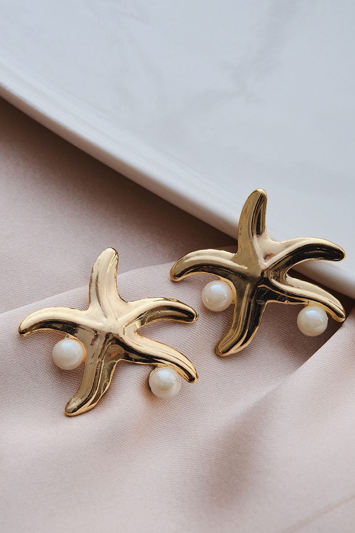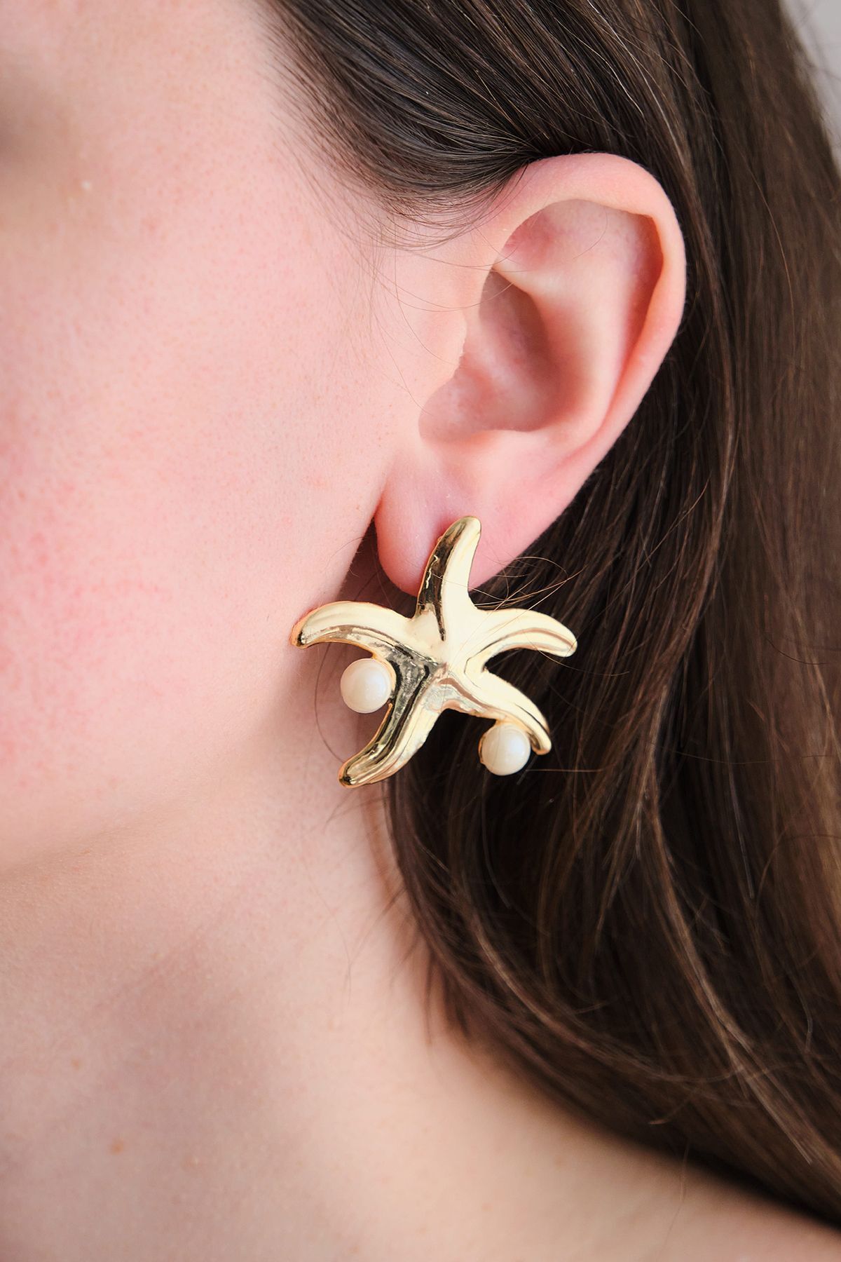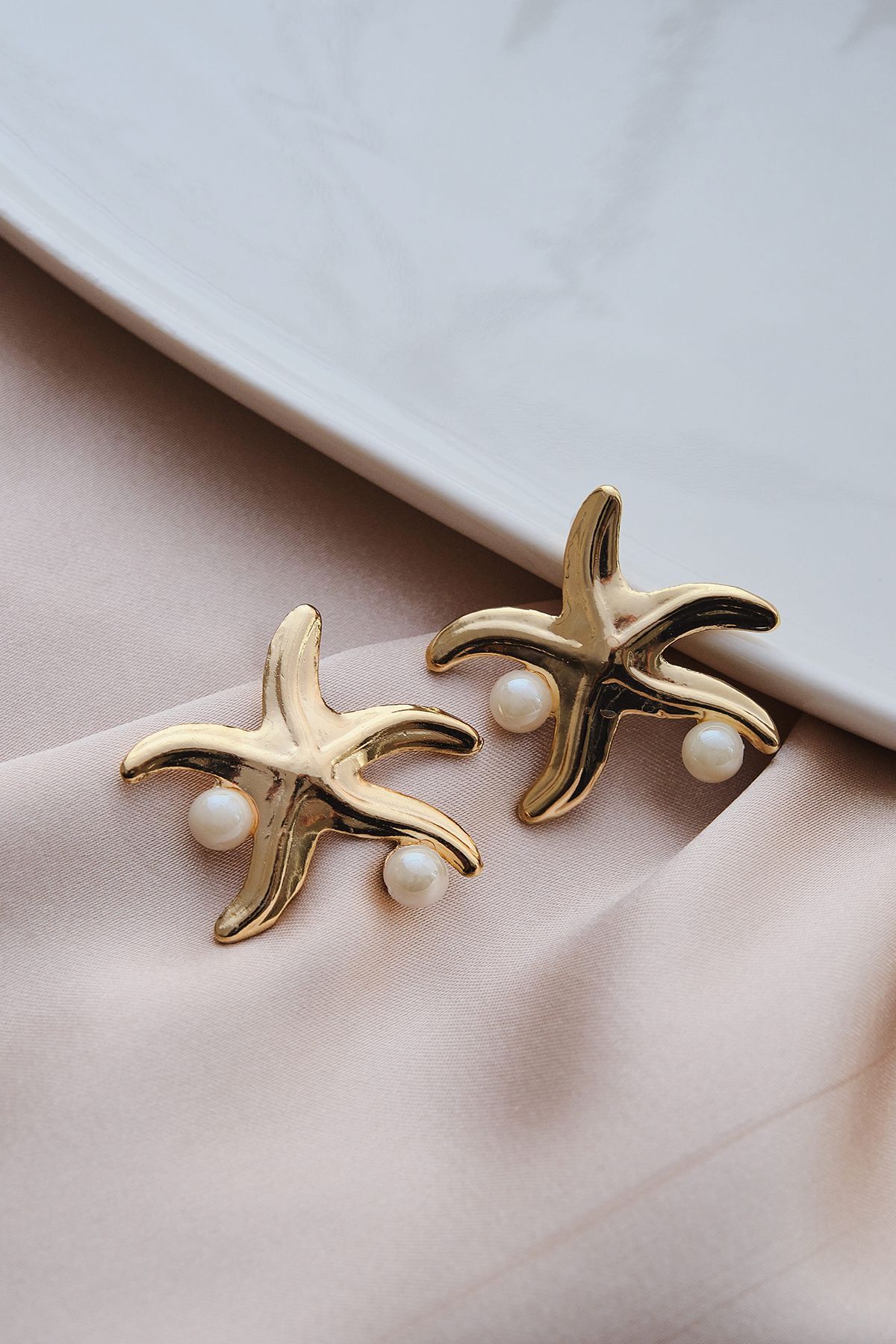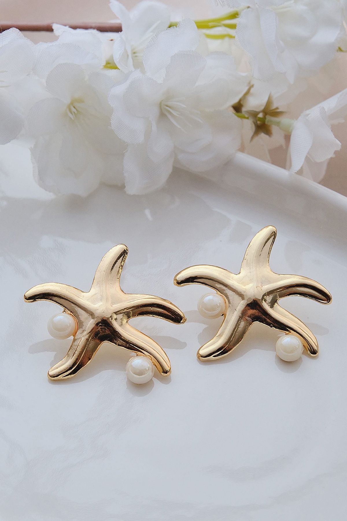 Gold İncili Deniz Yıldızı Küpe
