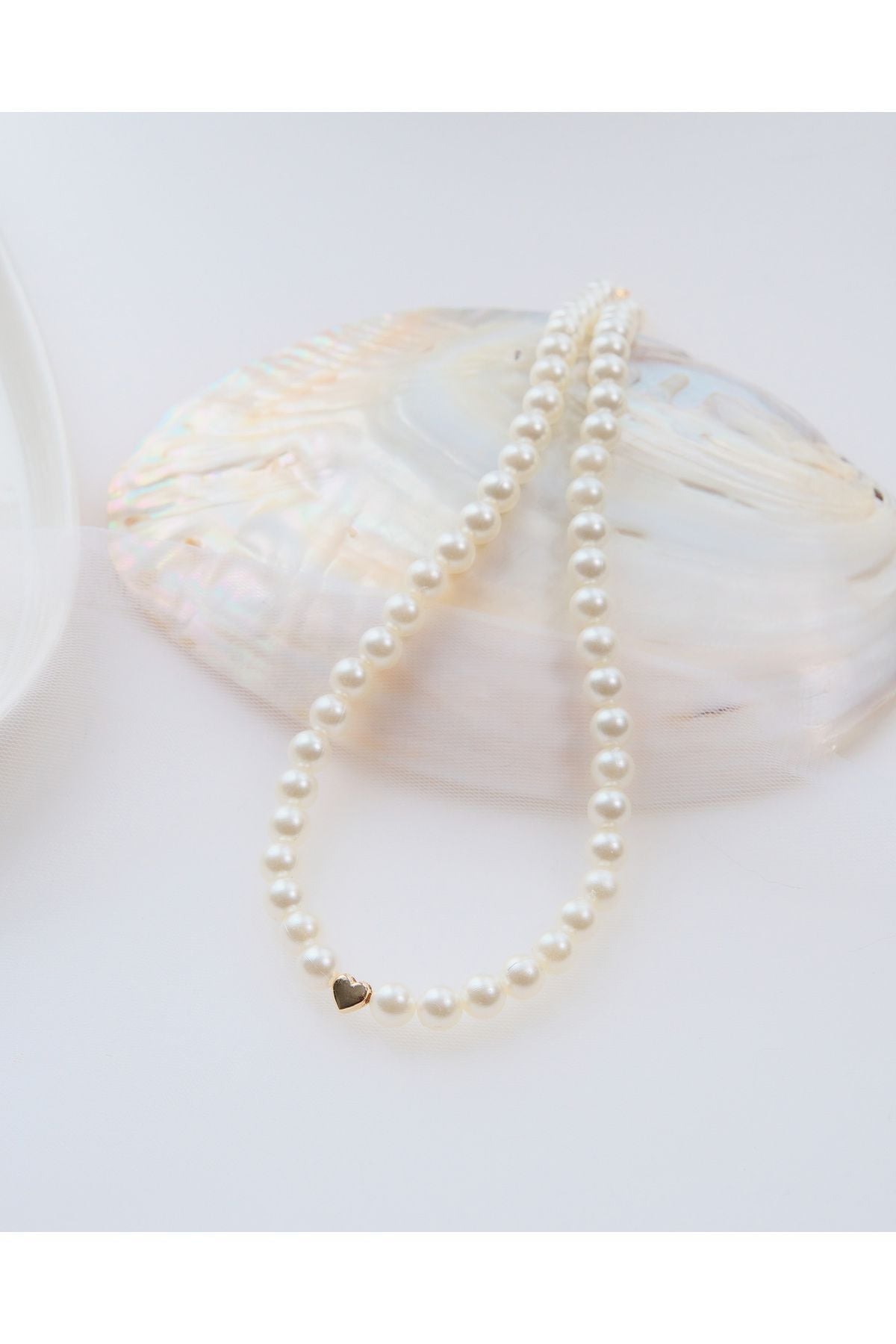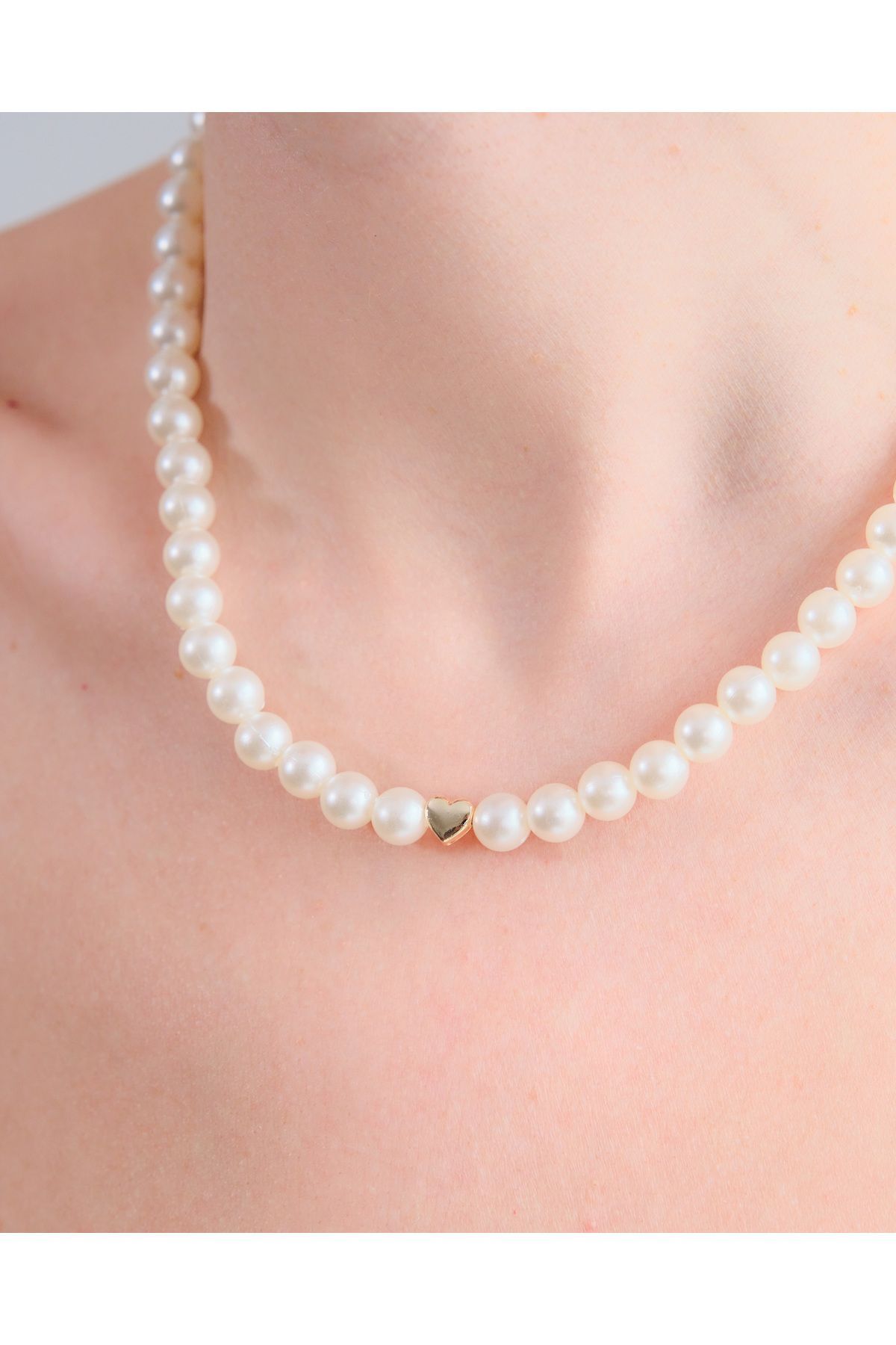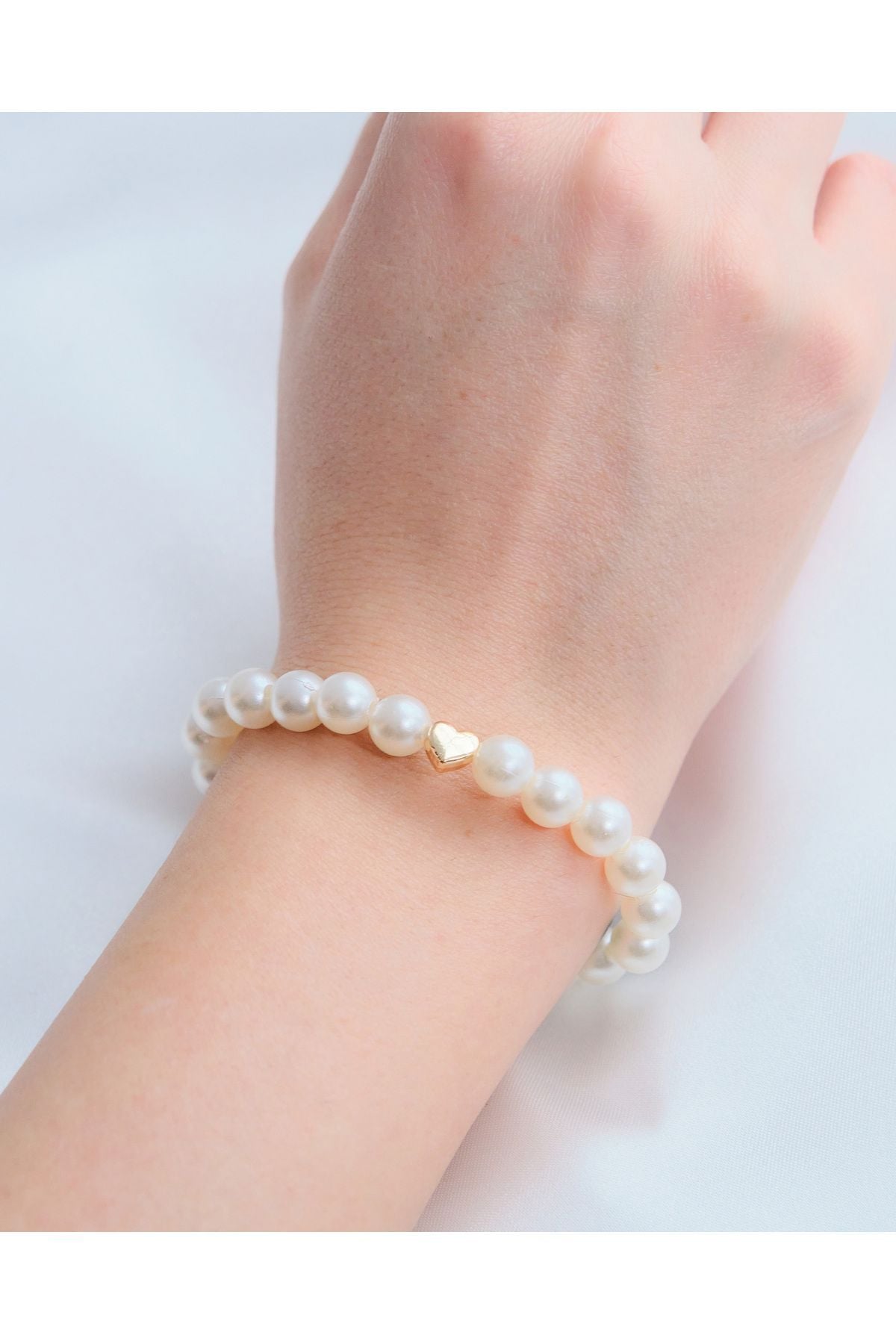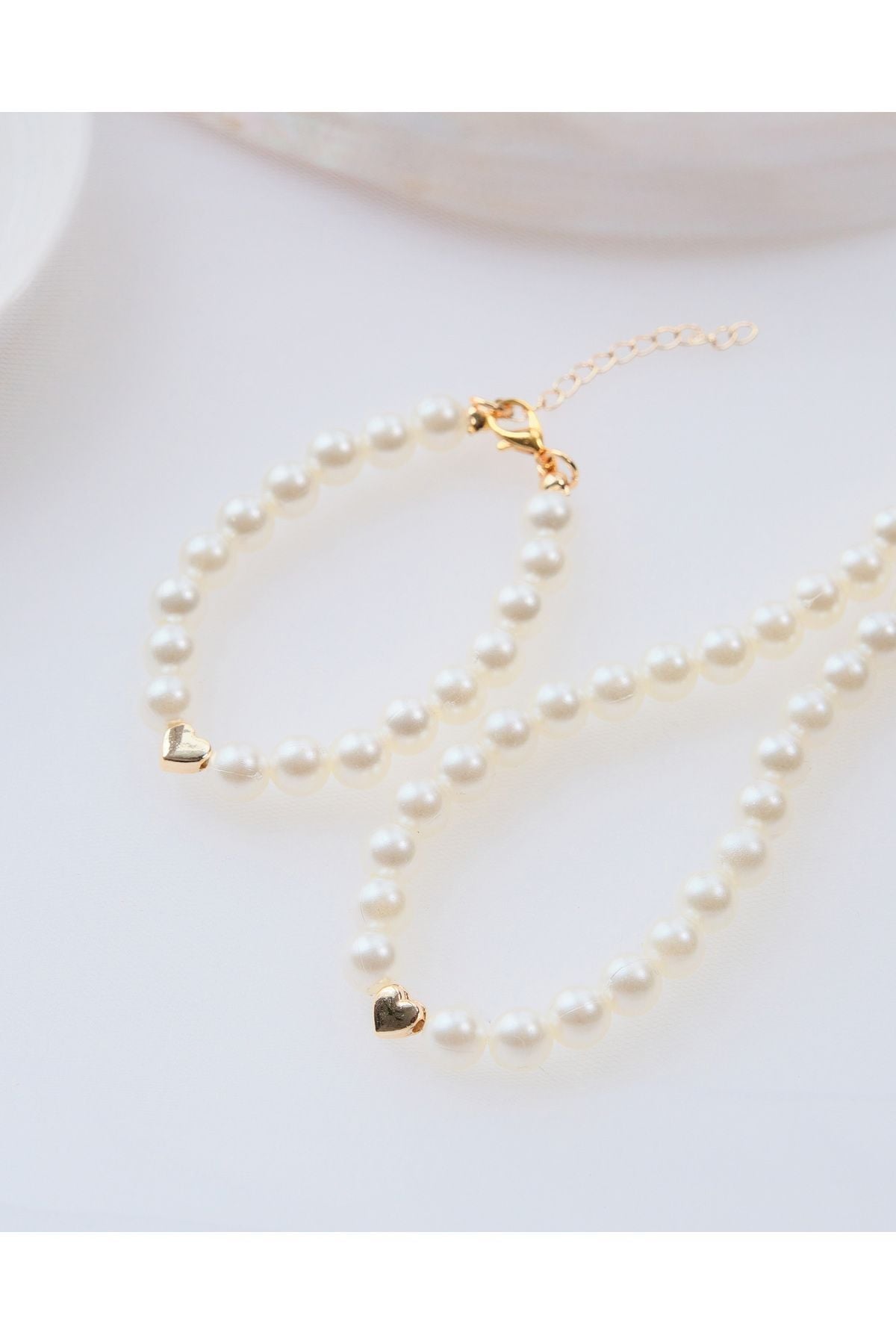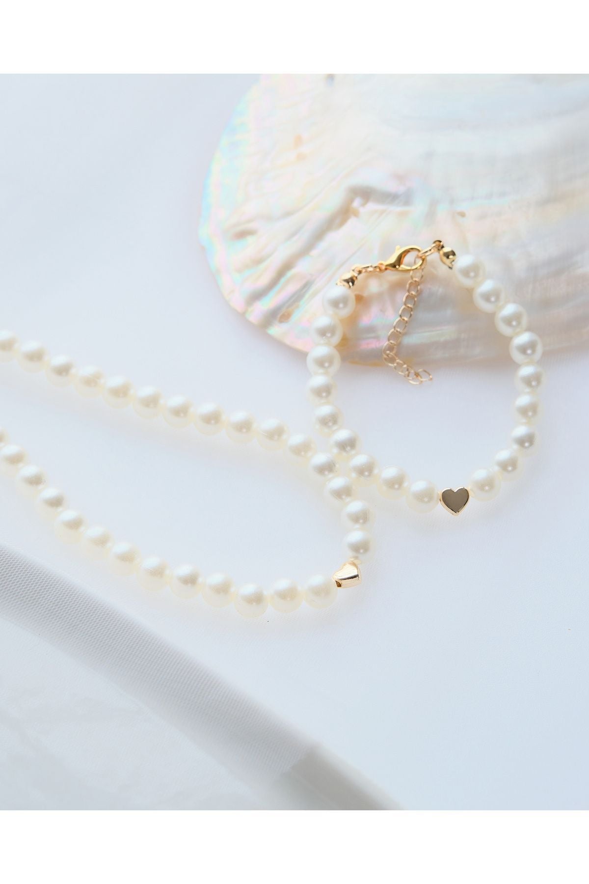 Gold Kalp Detaylı İncili Bileklik Ve Kolye Seti