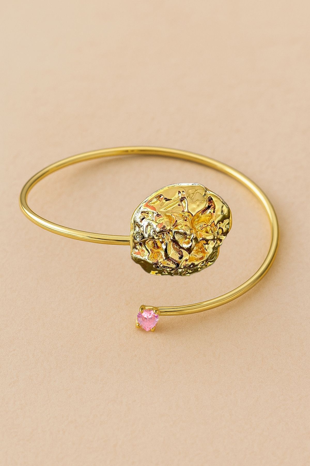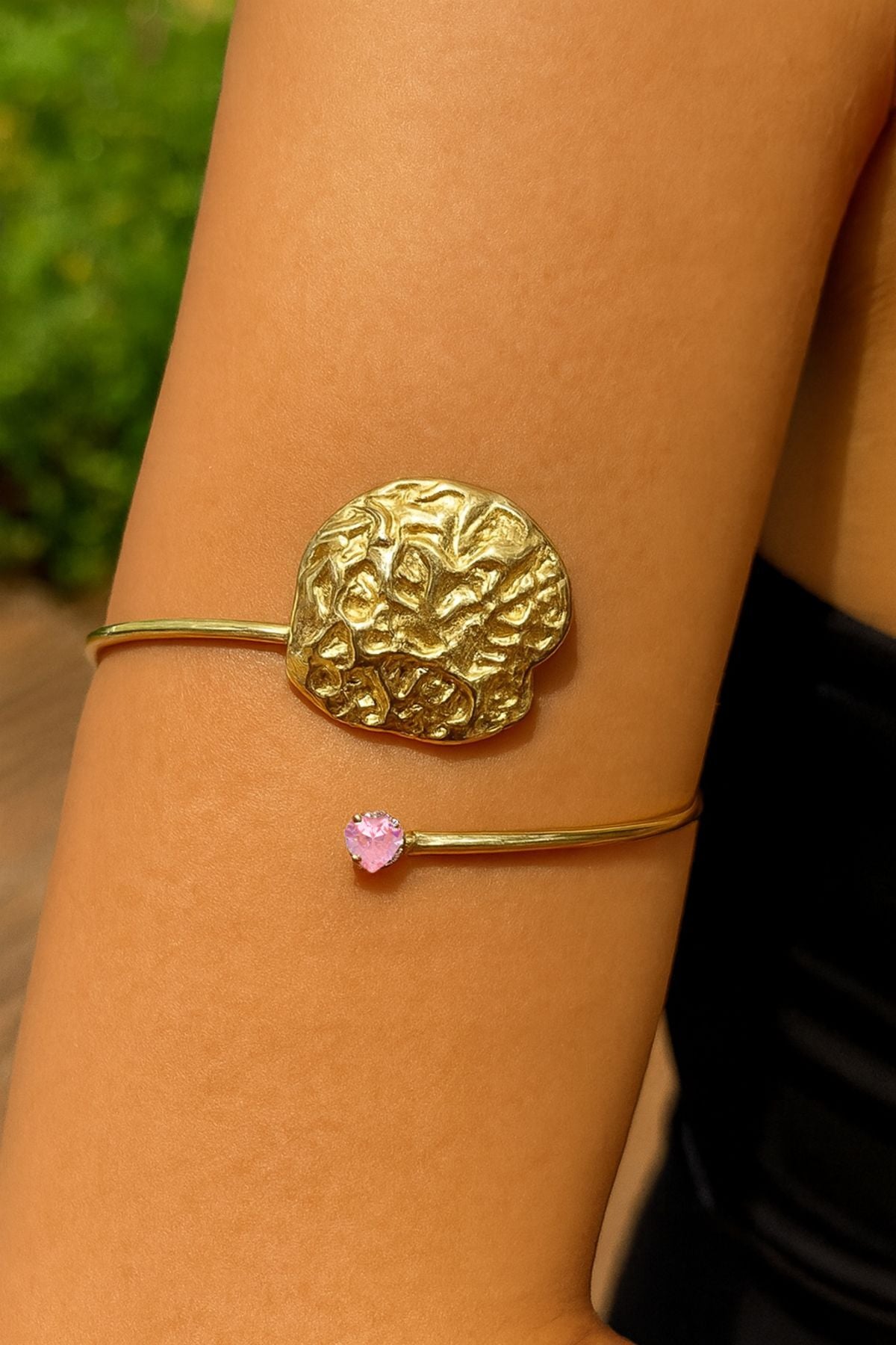 Aurrari Kadın Gold Pembe Kalpli Üst Kol Bilekliği - Ayarlanabilir Pirinç Pazu Bandı