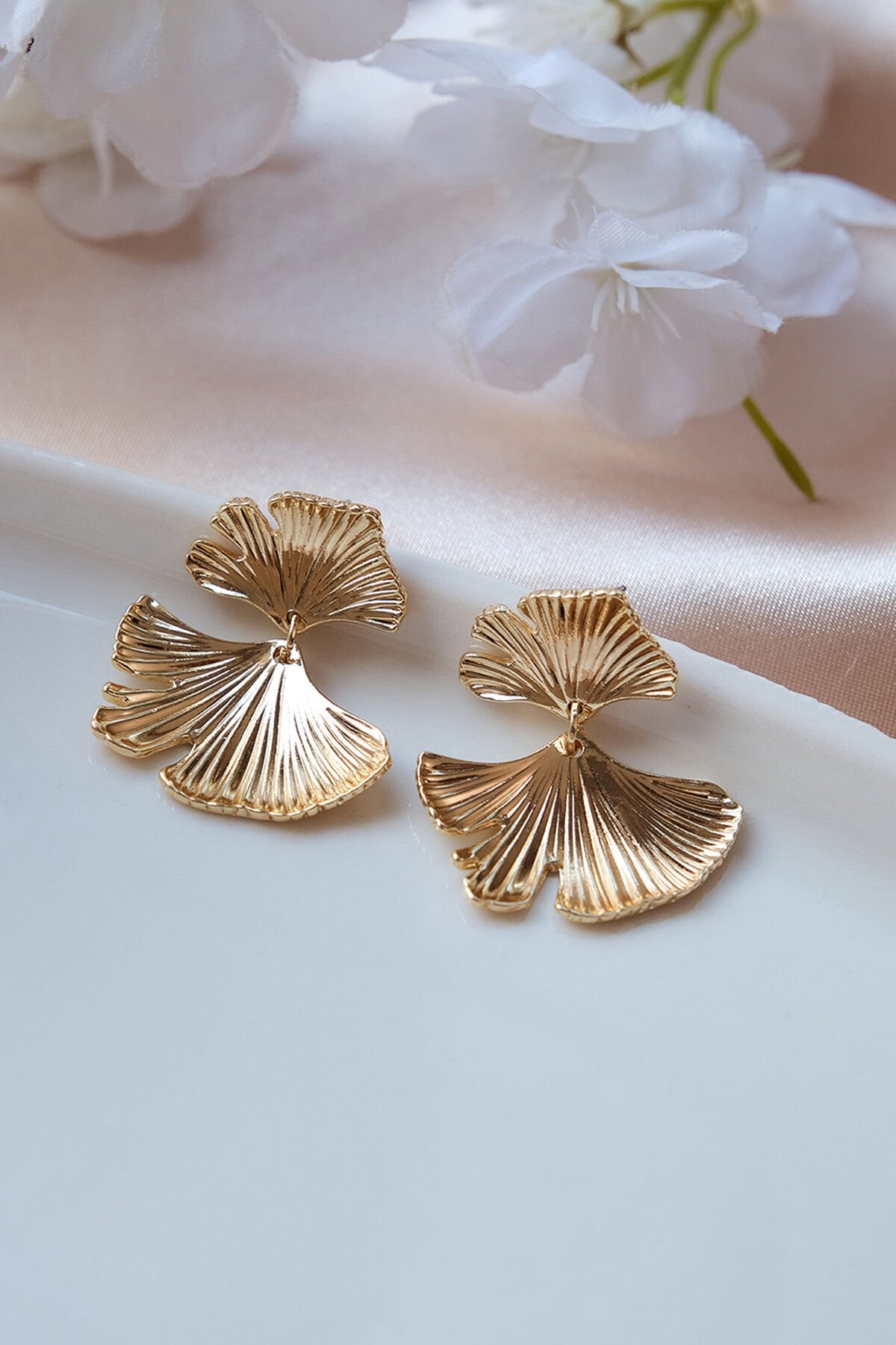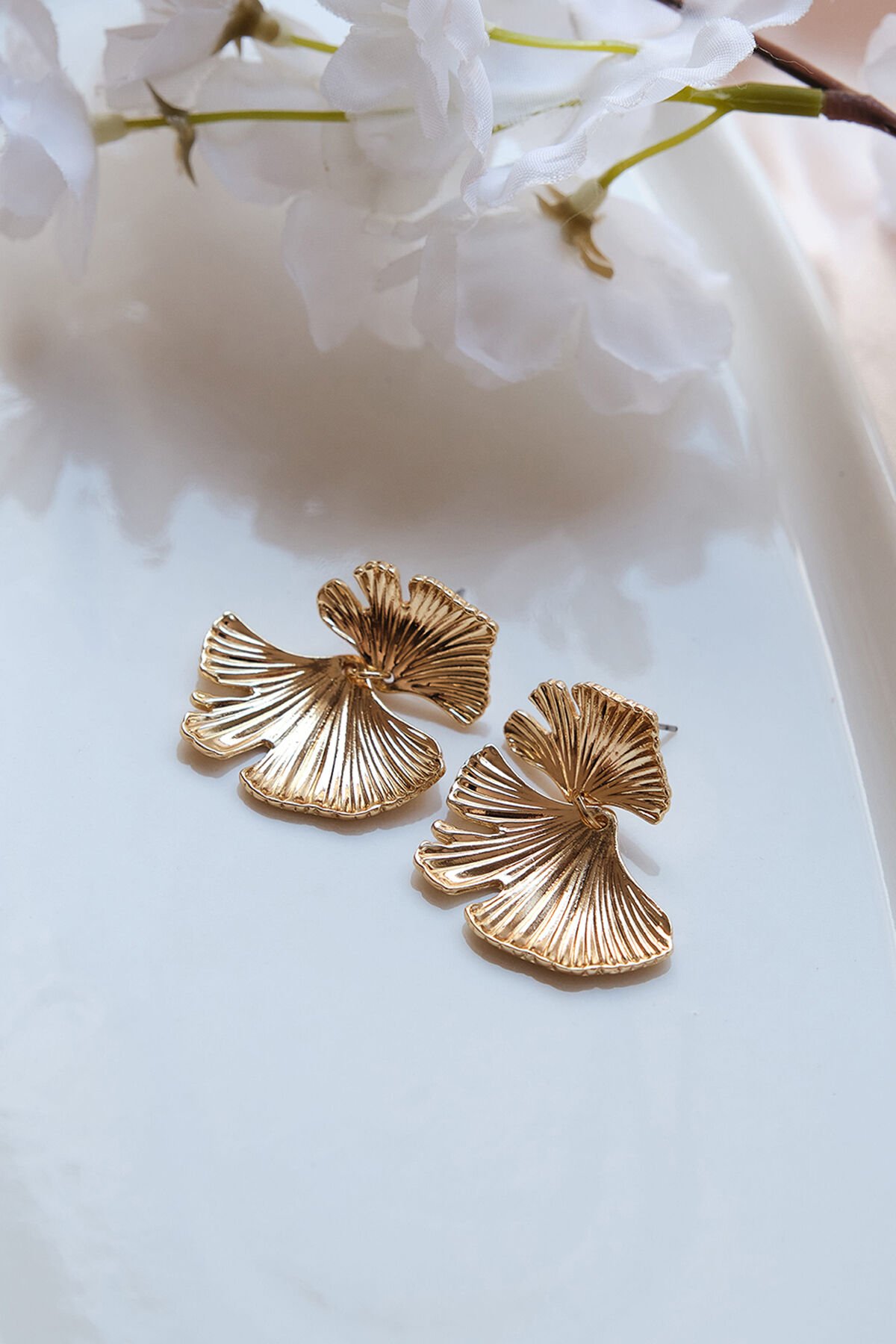 Doğanın Zarafeti Kulağınızda: Gold Sallantılı Çizgili Yaprak Küpe