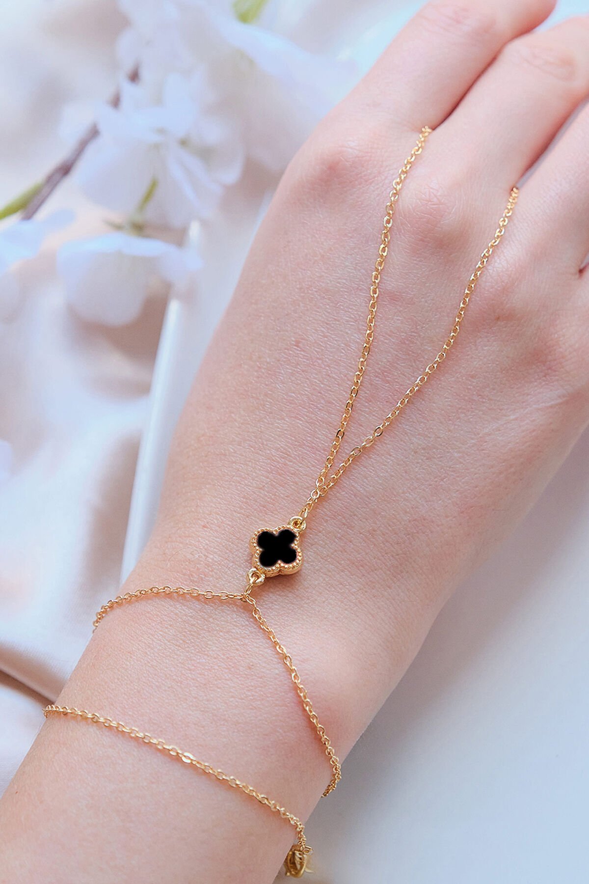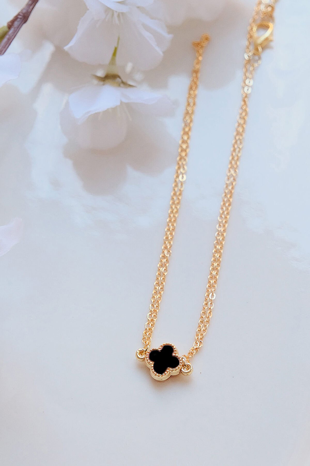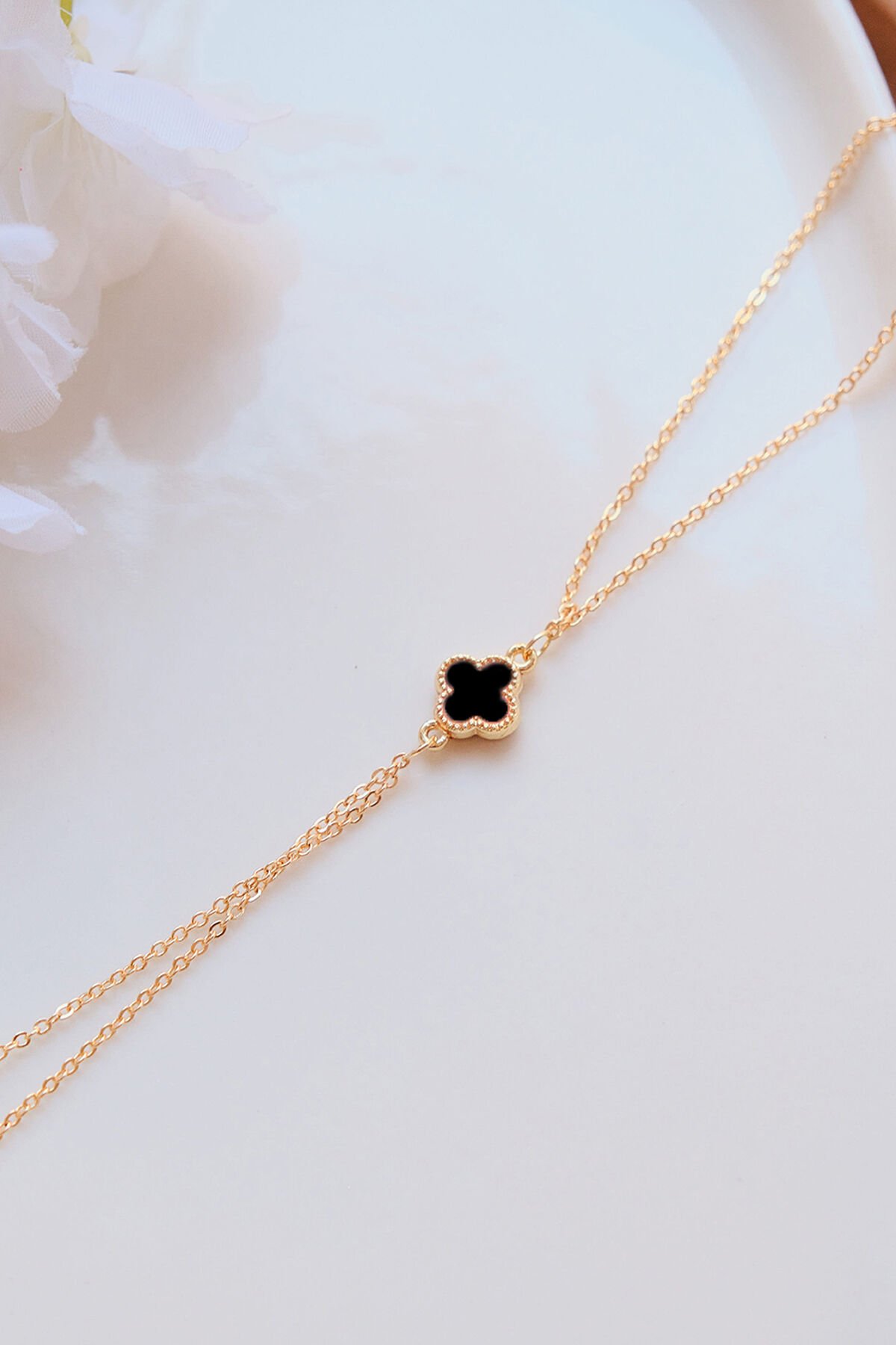 Gold Siyah Doğal Taşlı Yonca Şahmeran