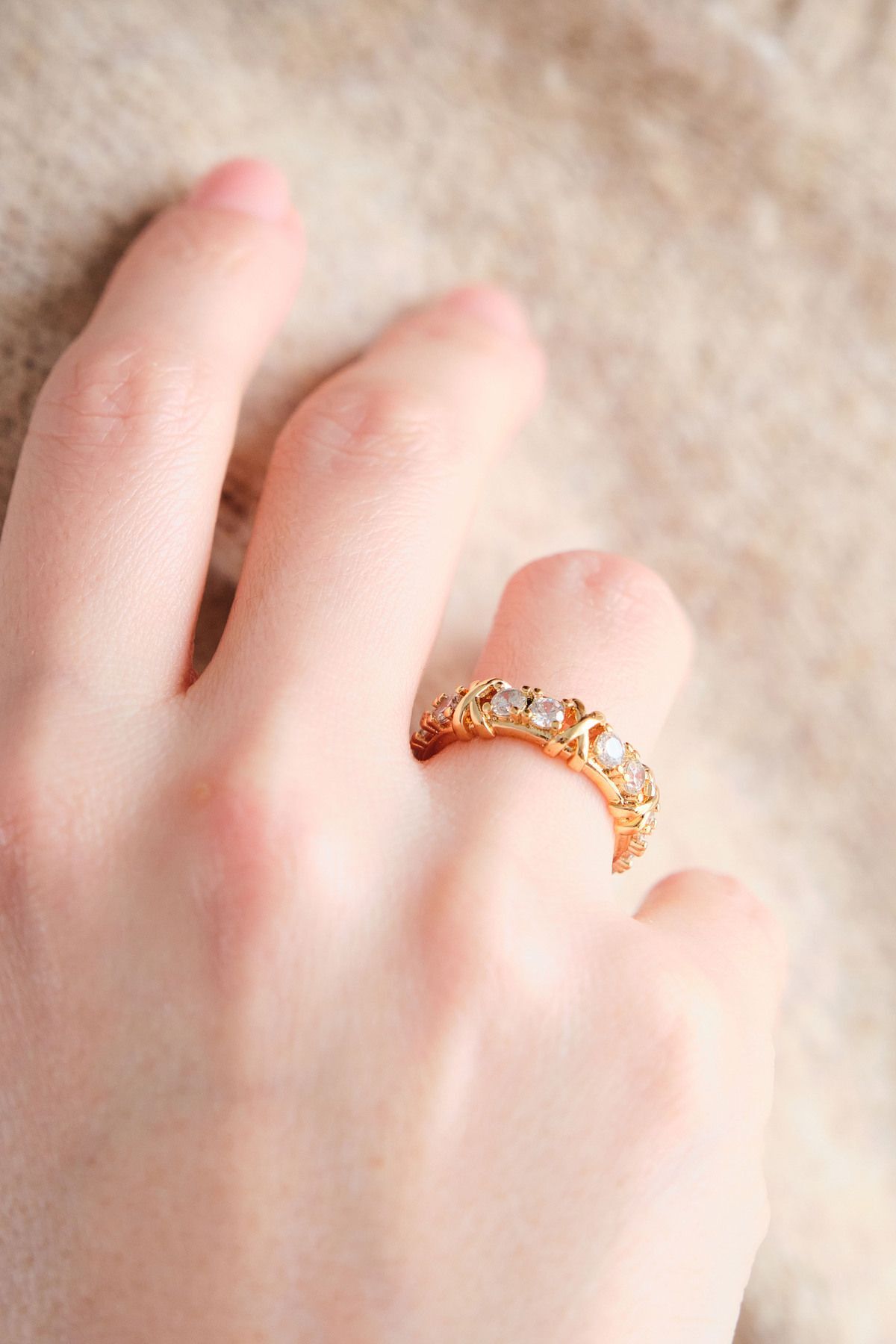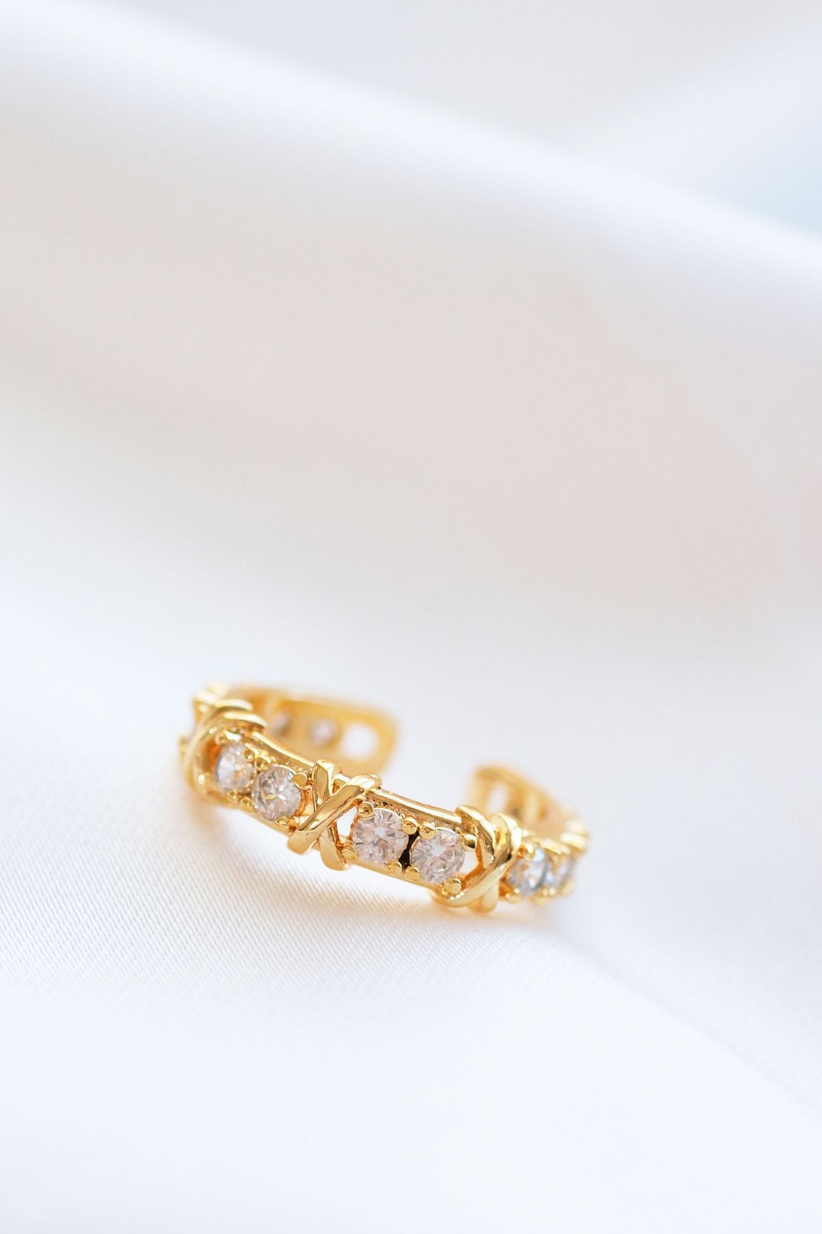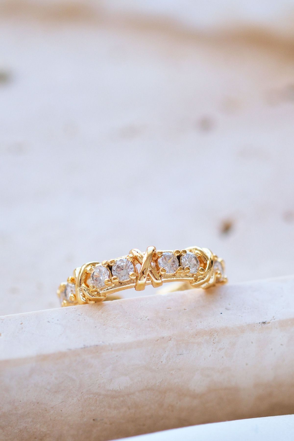 Gold Tiffany XOX Zirkon Ayarlanabilir Yüzük