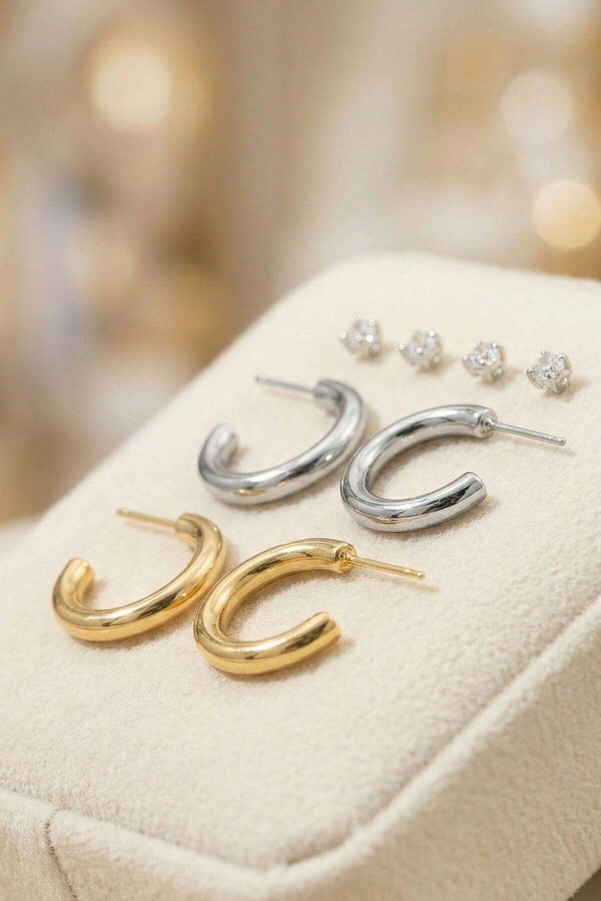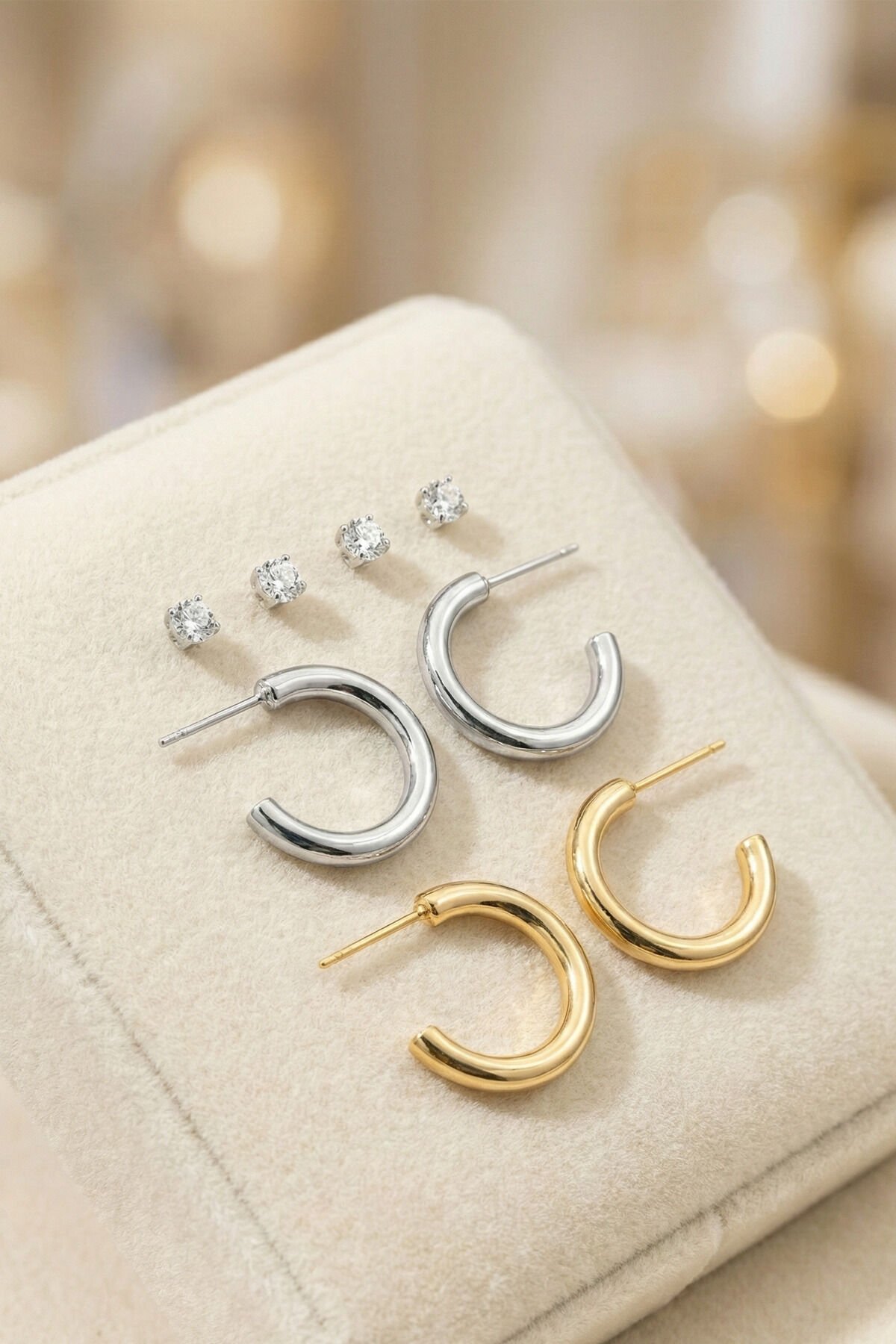 Gold Ve Silver Çift Halka Küpeler Ve 4 Adet Zirkon Taşlı Küpe