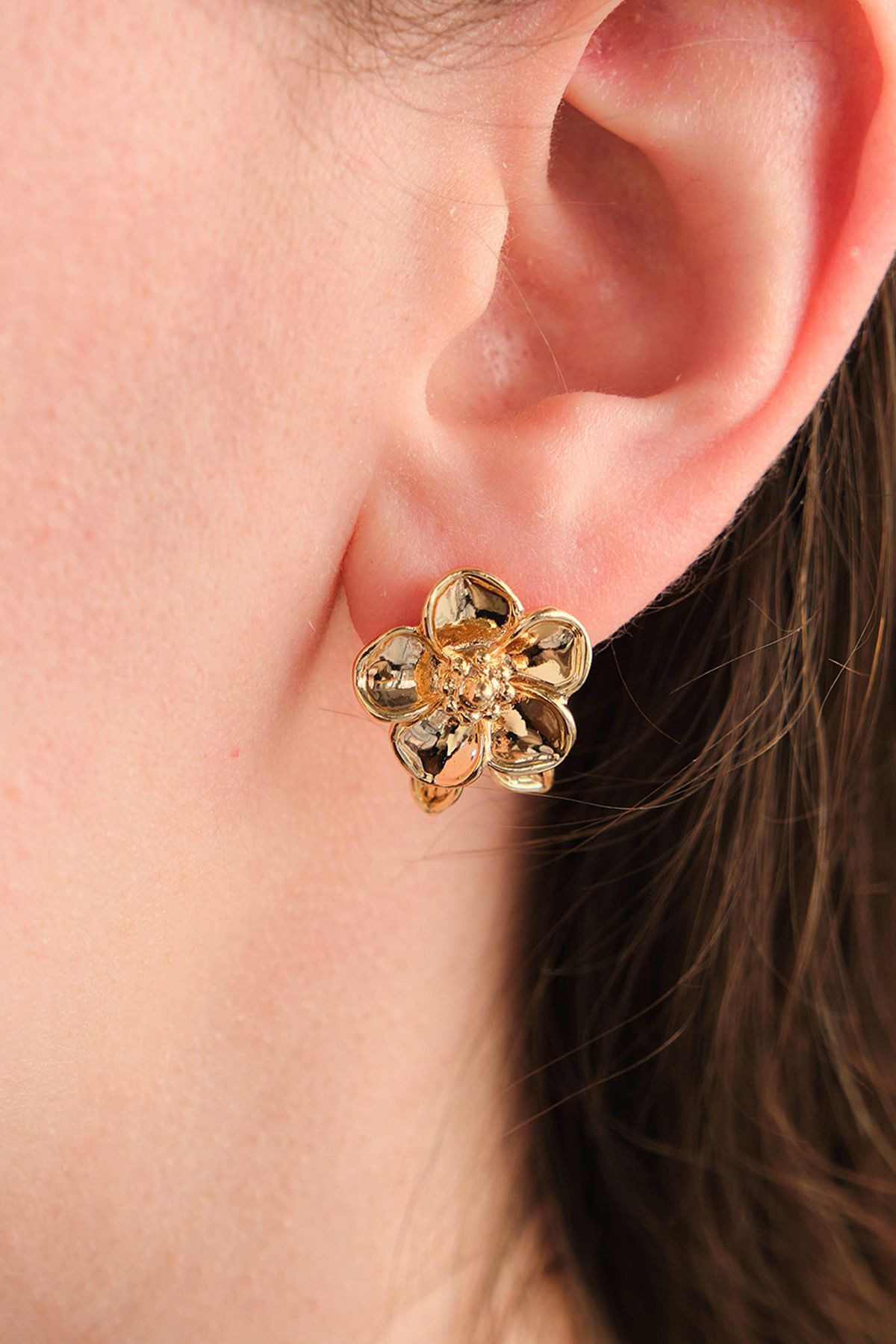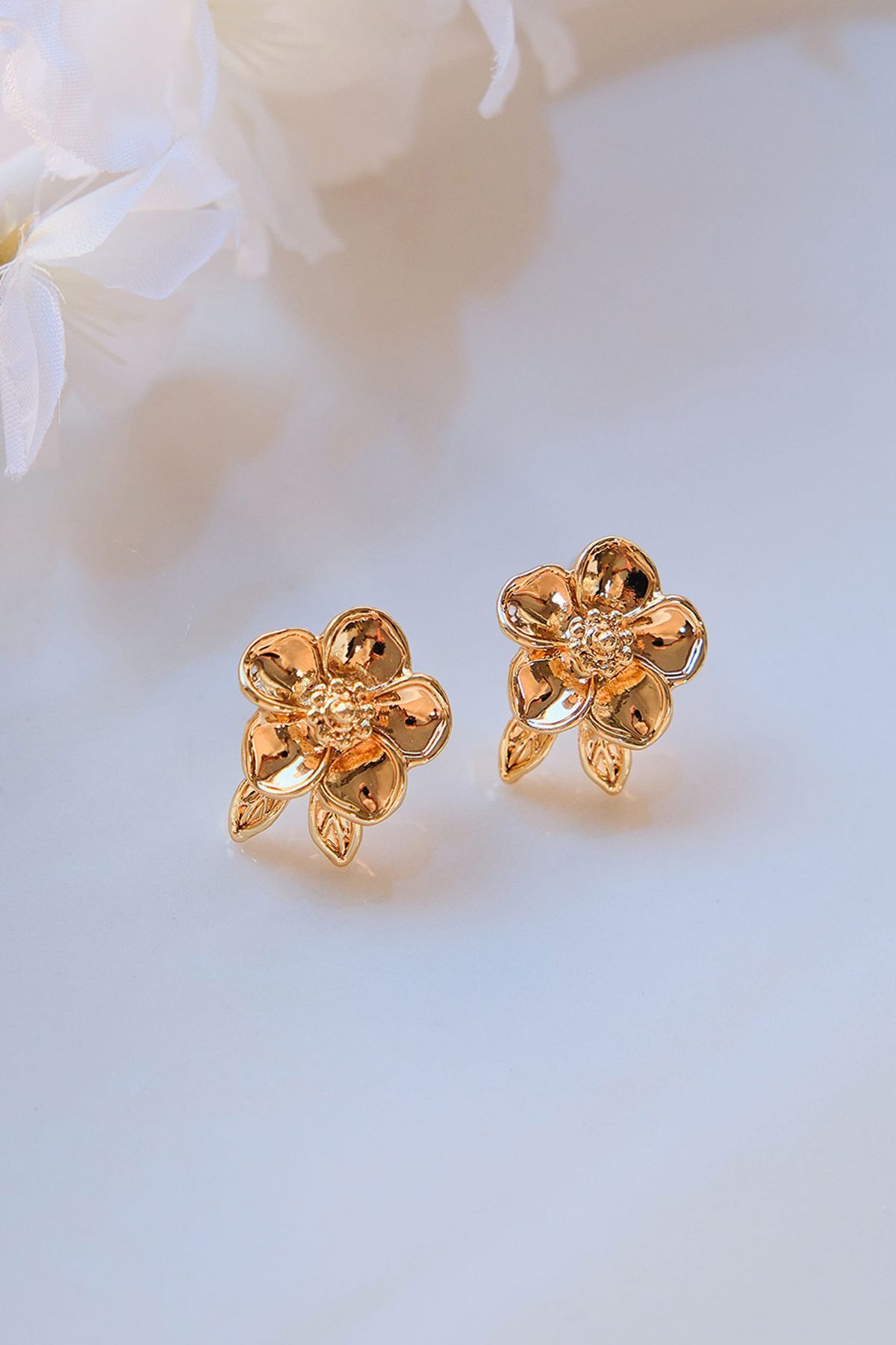 Gold Yapraklı Mini Papatya Küpe