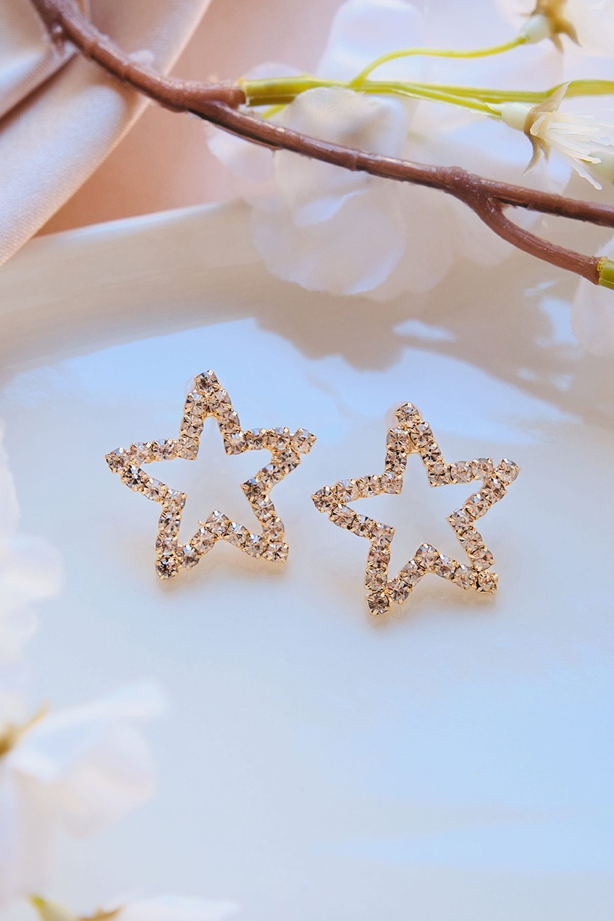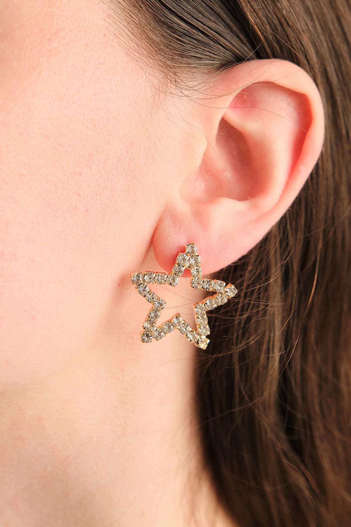 Gold Zirkon Taşlı Yıldız Şekilli Küpe