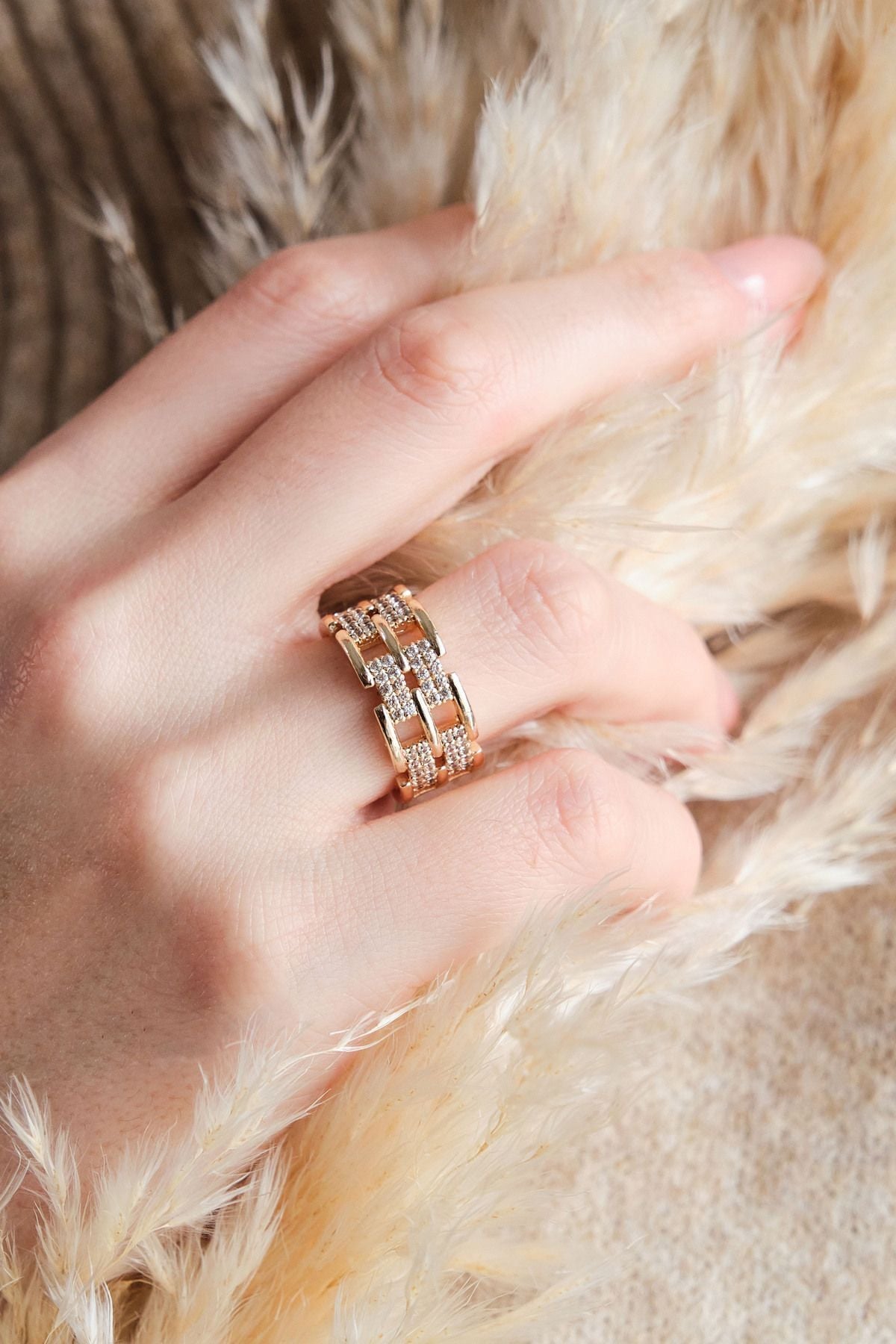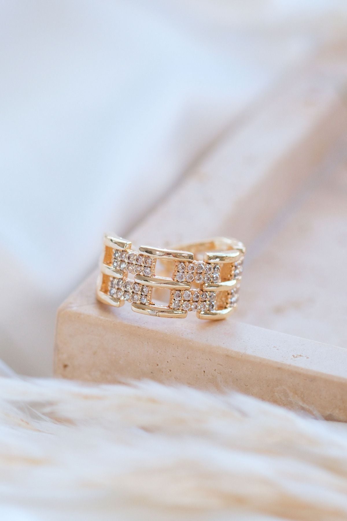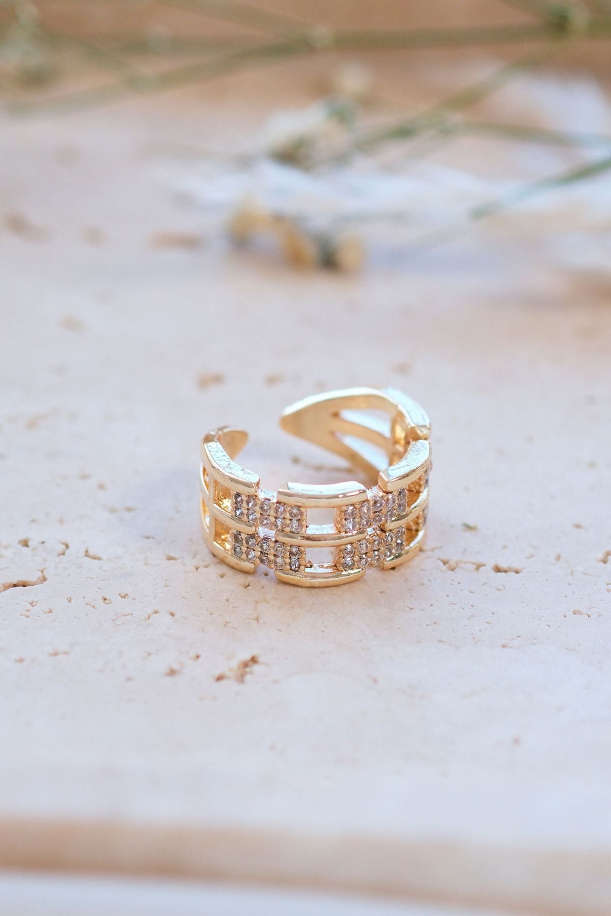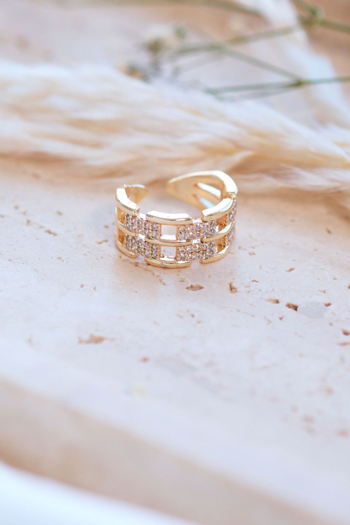 Gold Zirkon Taşlı Zincir Ayarlanabilir Yüzük