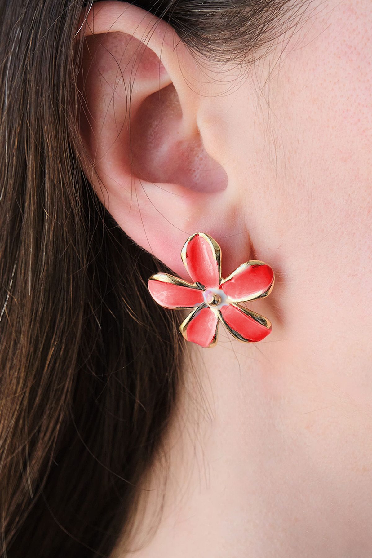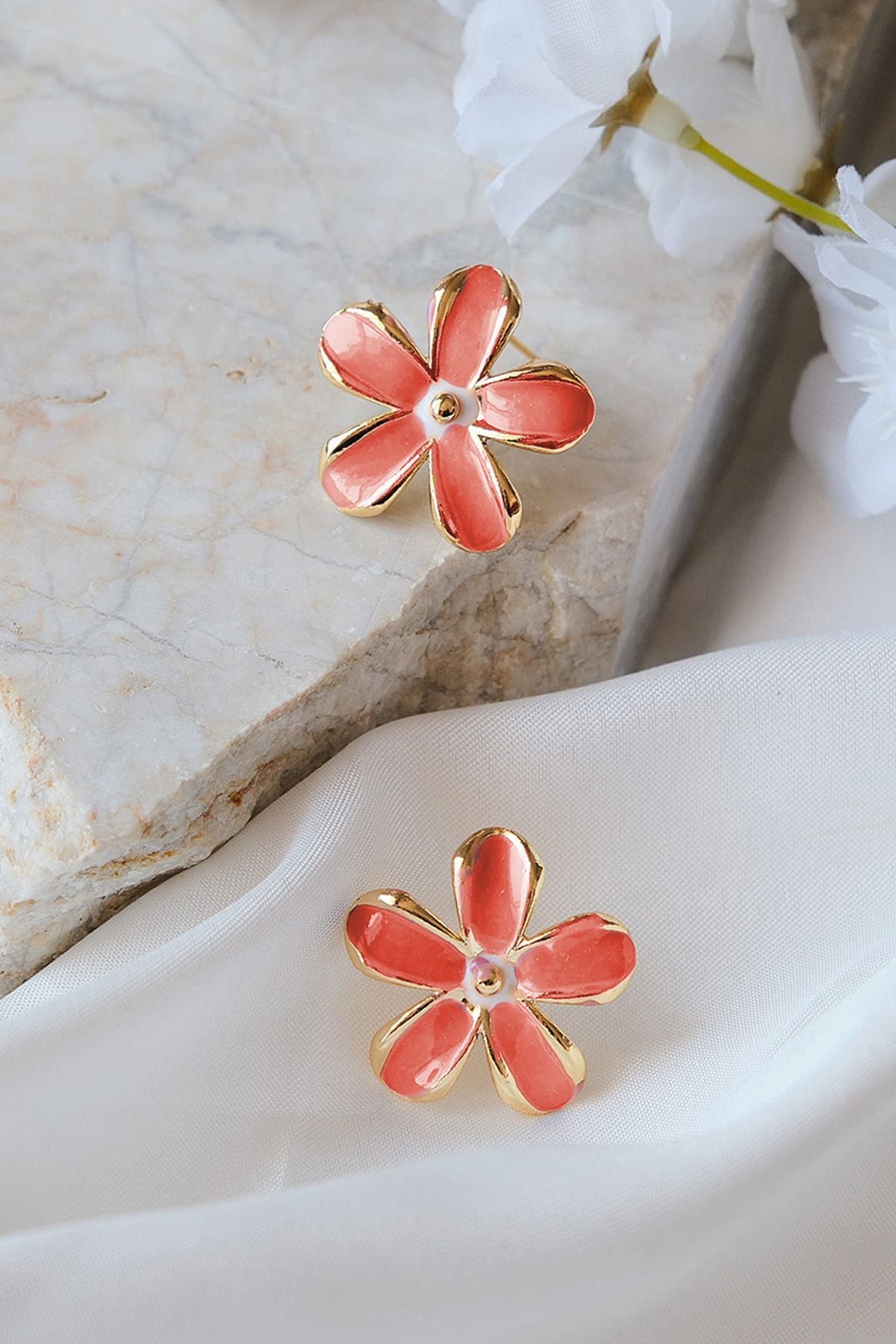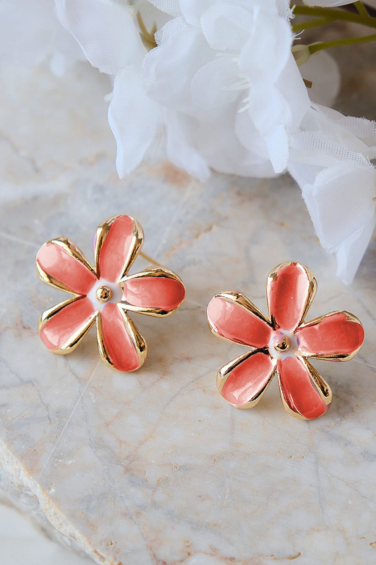 Gül Rengi ve Beyaz Mineli Papatya Küpe