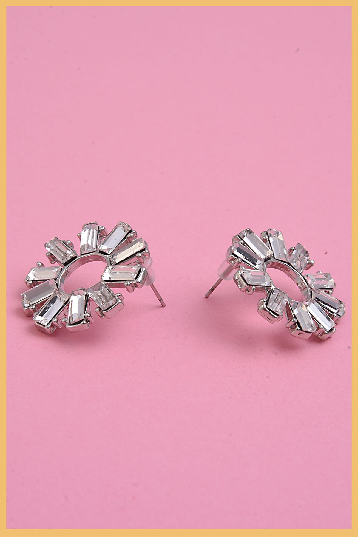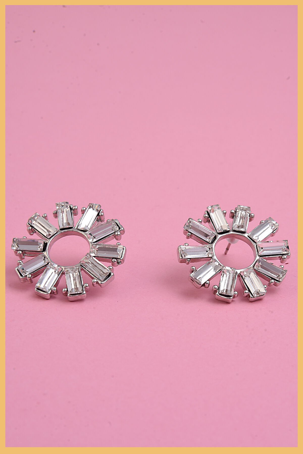 Aurrari 2’li Baget Taşlı Güneş Küpe Seti – Altın Kaplama Işıltılı Modern Tasarım Küpe