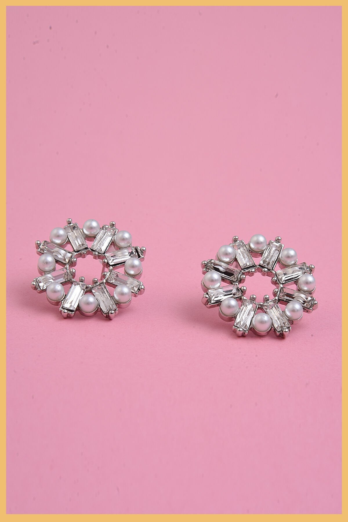 Gümüş Baget Taşlı Ve İncili Güneş Küpe