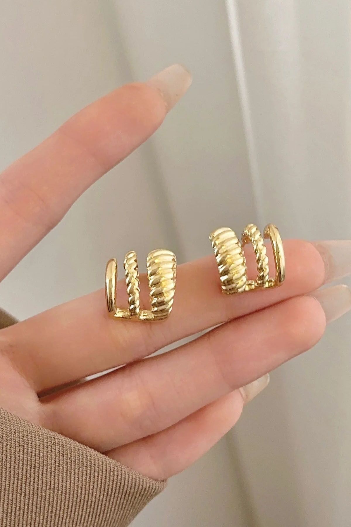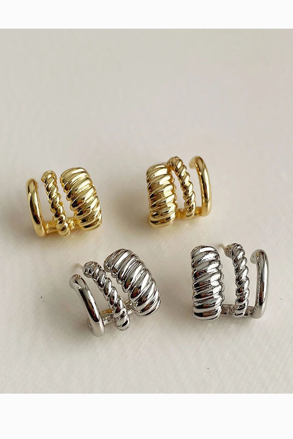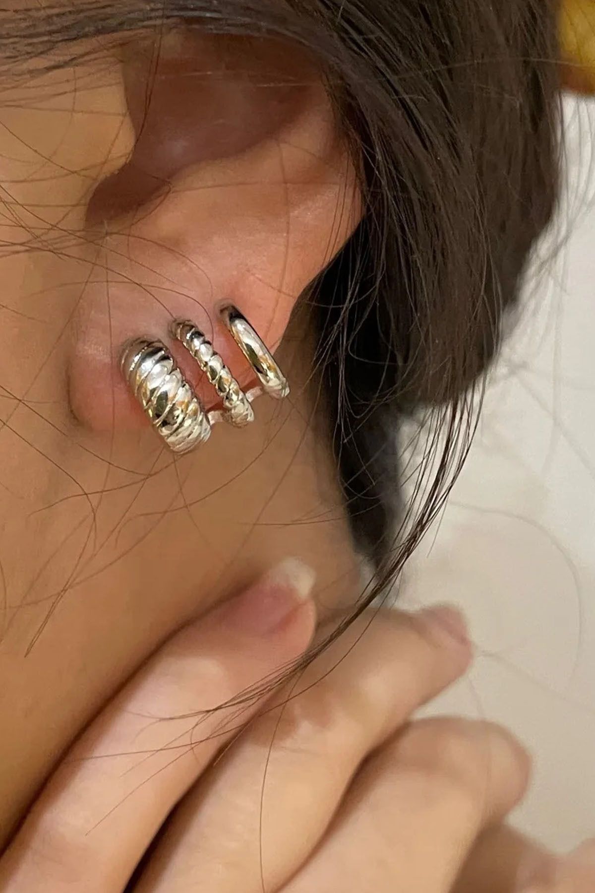 Gümüş Kaplama 3'lü Burgu Kıkırdak Görünüm Küpe Çifti