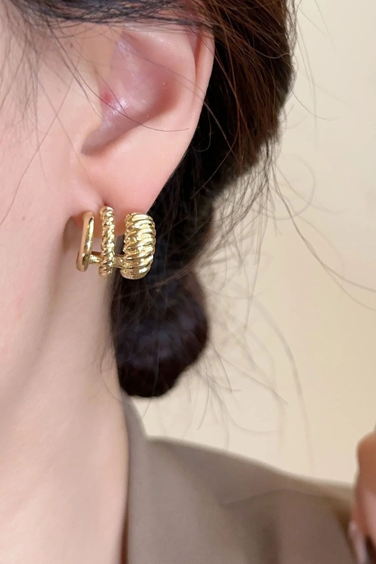 Şık Burgu Tasarımı:Her biri özenle tasarlanmış olan burgu detaylı küpeler, kulak deliğine takılırken yan yana üçlü bir görünüm sağlar ve kıkırdak piercingine benzer bir stil yaratır. Bu modern tasarım, farklı ve çarpıcı bir görünüm elde etmek isteyenler için idealdir.