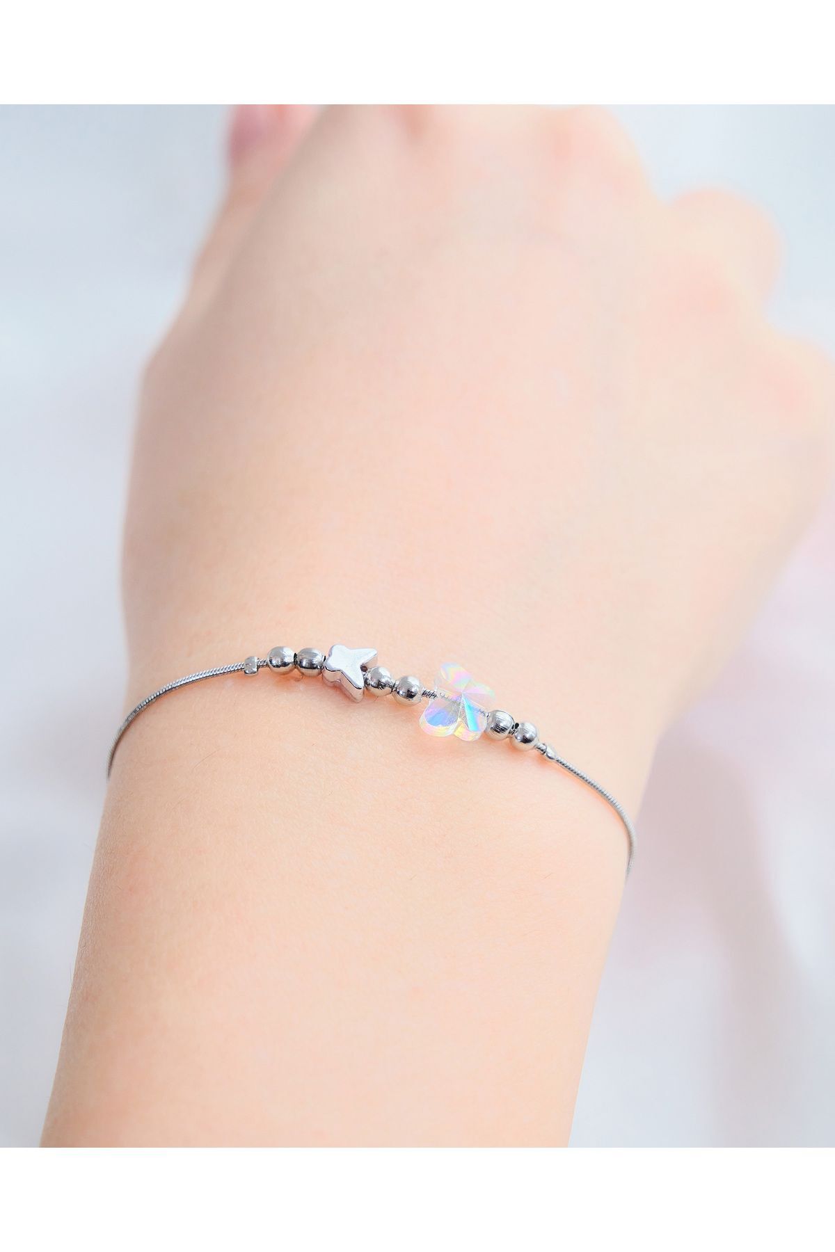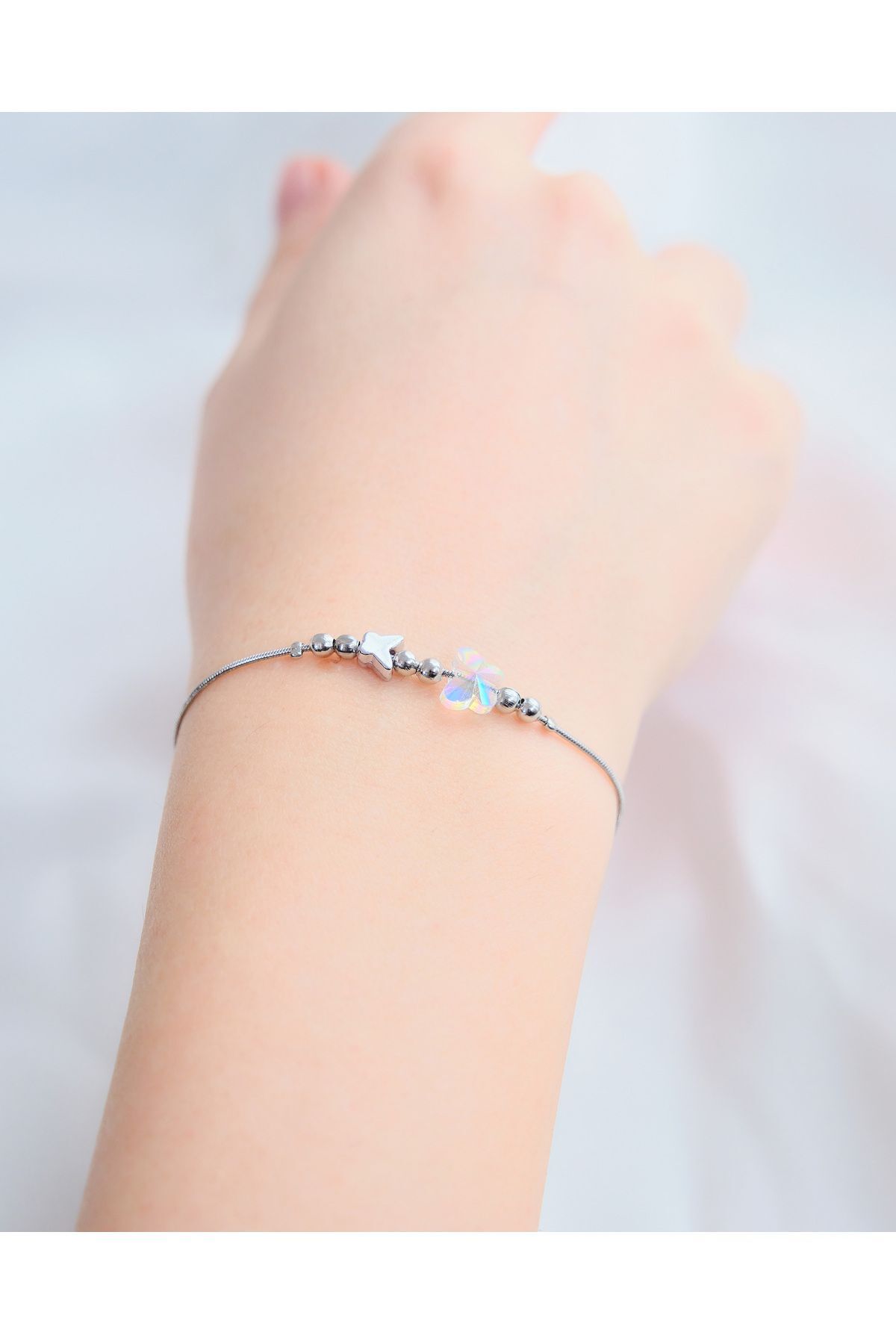 Aurrari Kadın Gümüş Kaplama Zirkon Taşlı Kelebek Çelik Bileklik - 2 Yıl Garantili Minimalist Tasarım