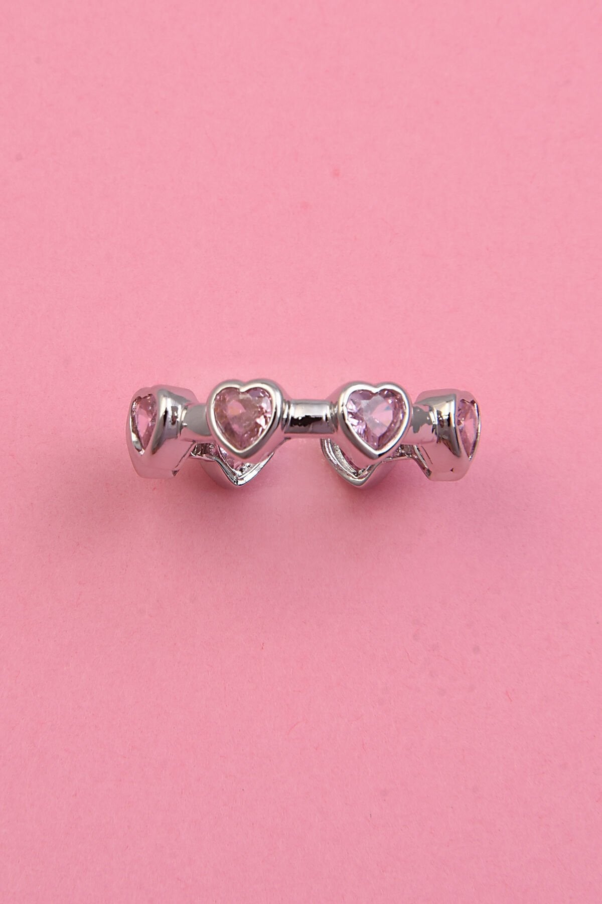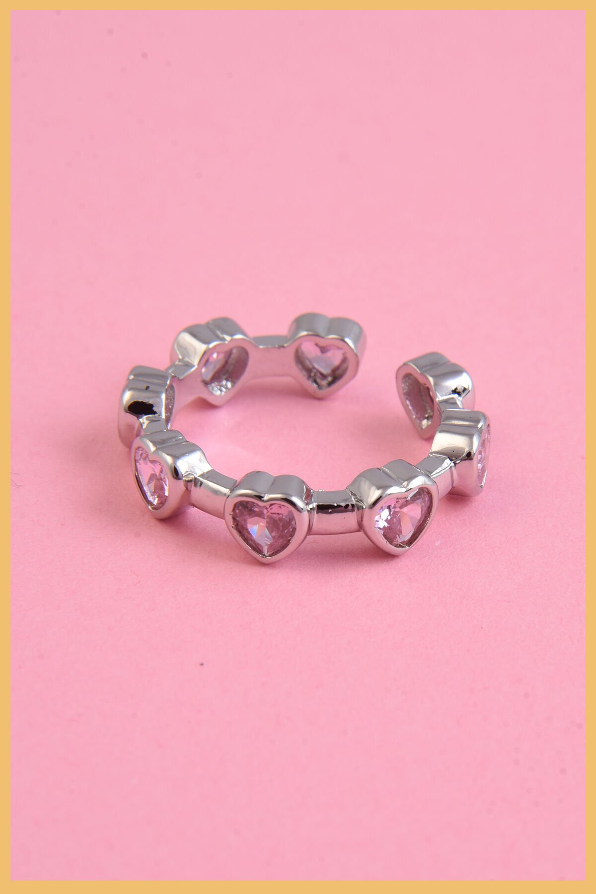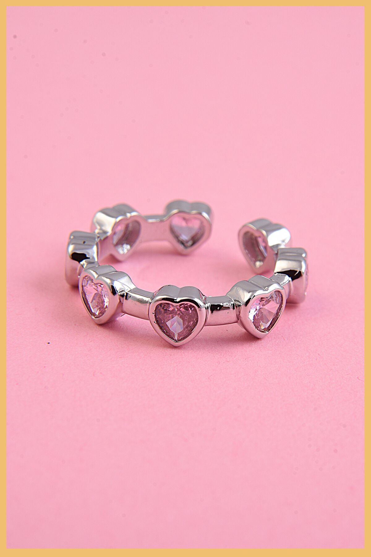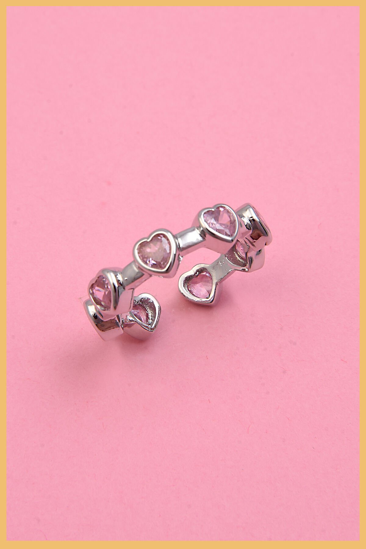 Gümüş Mor Kalp Kesim Çoklu Zirkon Ayarlanabilir Çelik Yüzük (Exclusive)