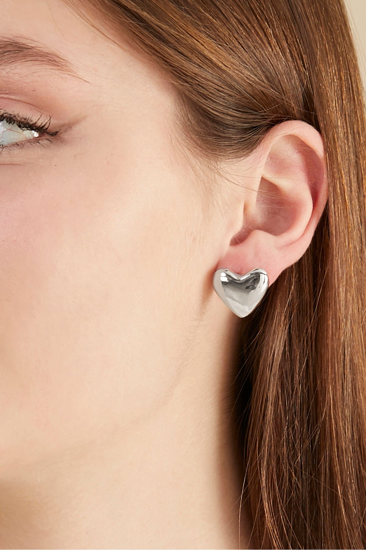 Kadın Gümüş Kaplama Parlak Tombul Kalp Küpe - Modern Minimalist Çivi Model "Chunky" Kalp Küpe