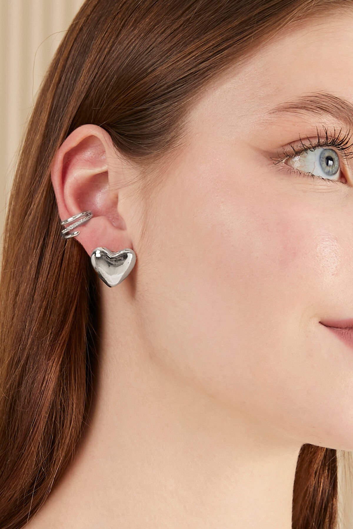 Klasik kalp figürüne cesur ve çağdaş bir yorum katmaya hazır mısınız? Aurrari Tombul Kalp Küpe, gümüşün (silver) serin ve ayna parlaklığındaki ışıltısını, son dönem podyumlarının vazgeçilmezi olan hacimli "chunky" tasarımıyla buluşturuyor. İnsanlık tarihinin en eski motiflerinden biri olan kalbi, minimal çizgiler ve dolgun bir dokuyla yeniden yorumlayan bu küpe, stilinize hem romantik bir derinlik hem de modern bir imza katar.