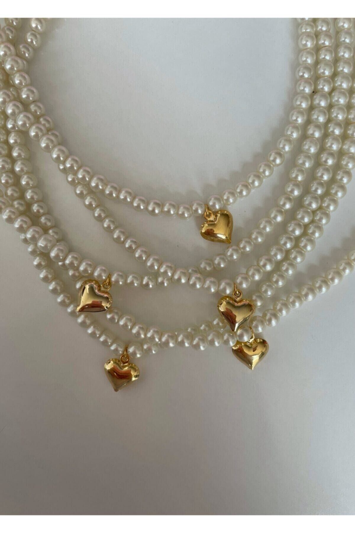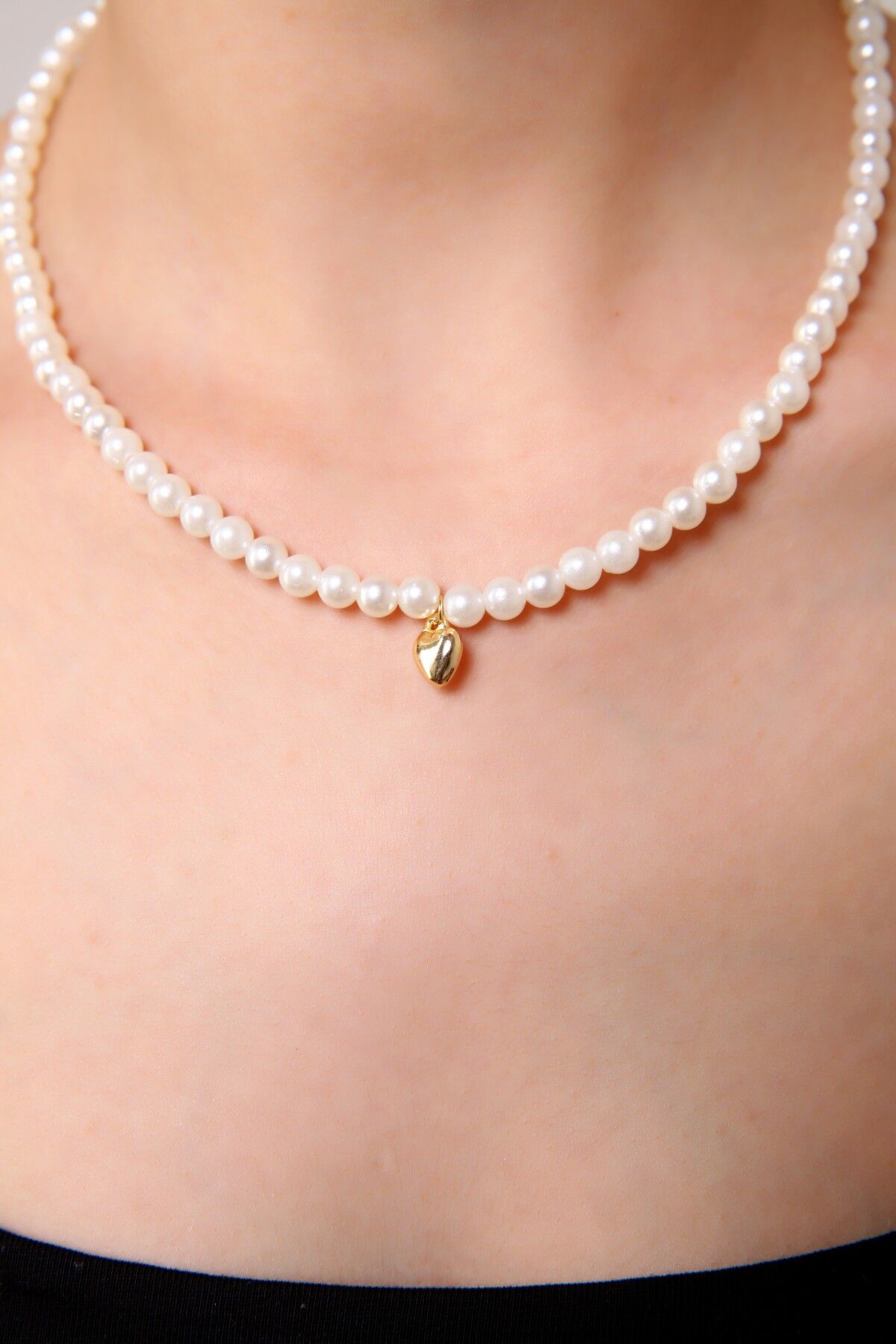 Incili Mini Kalpli Kolye