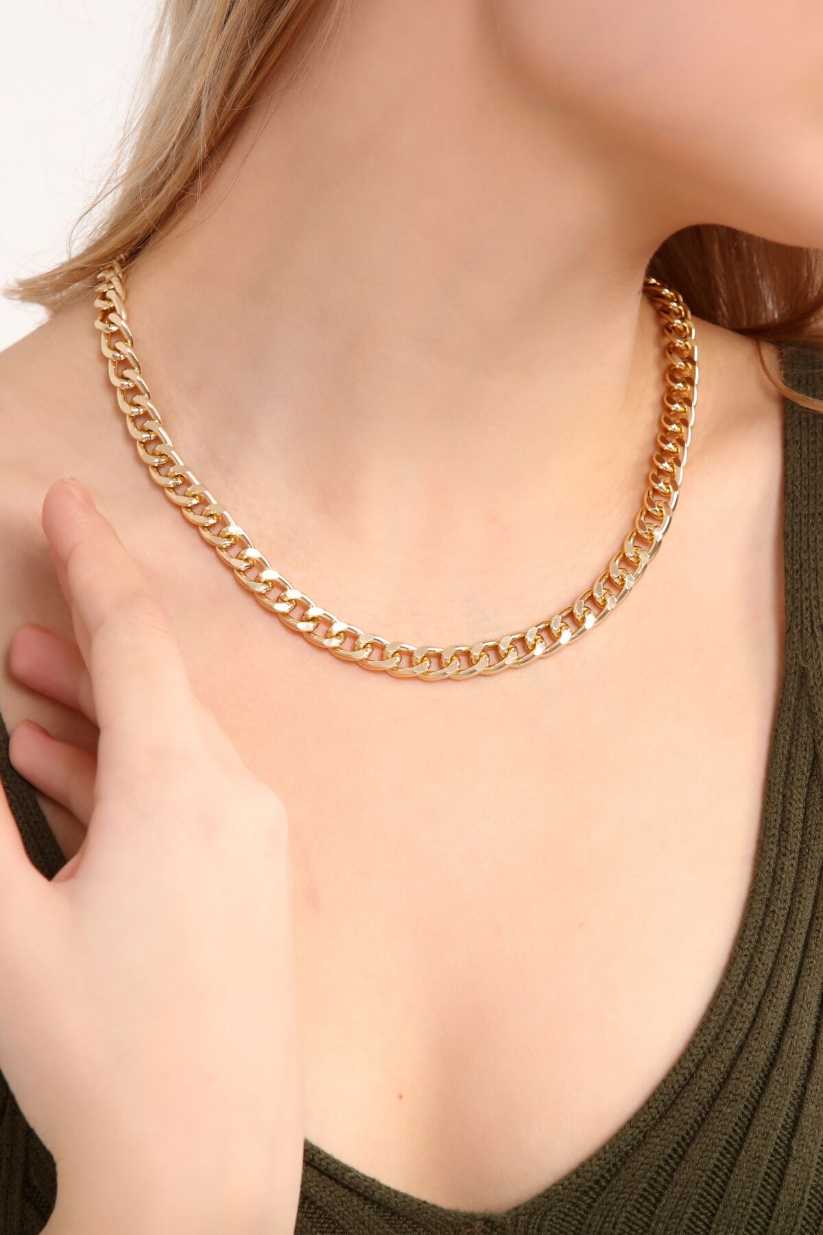 Kadın Altın Kaplama Clasic Kalın Zincir Kolye