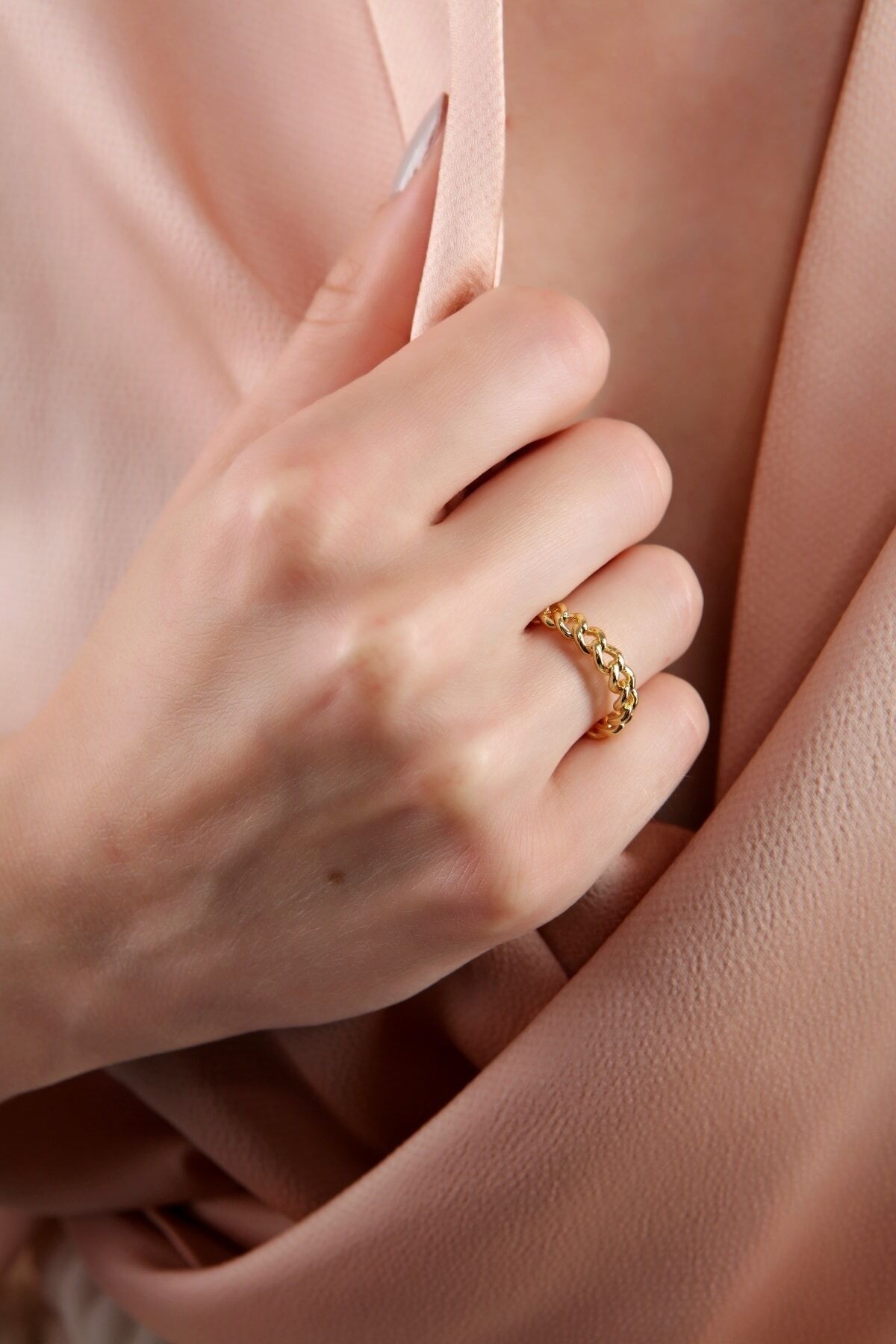 Kadın Altın Kaplama İnce Halat Yüzük
