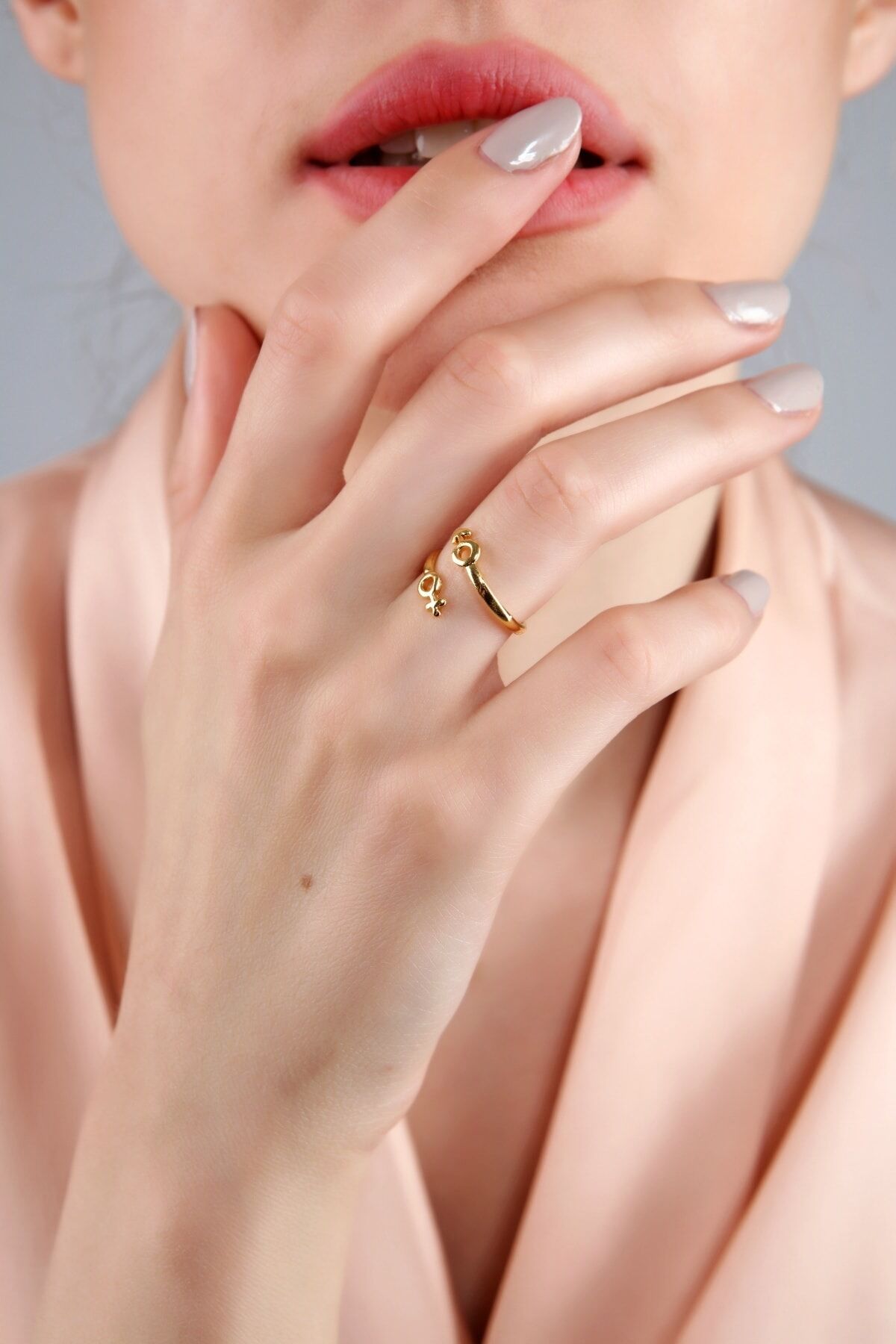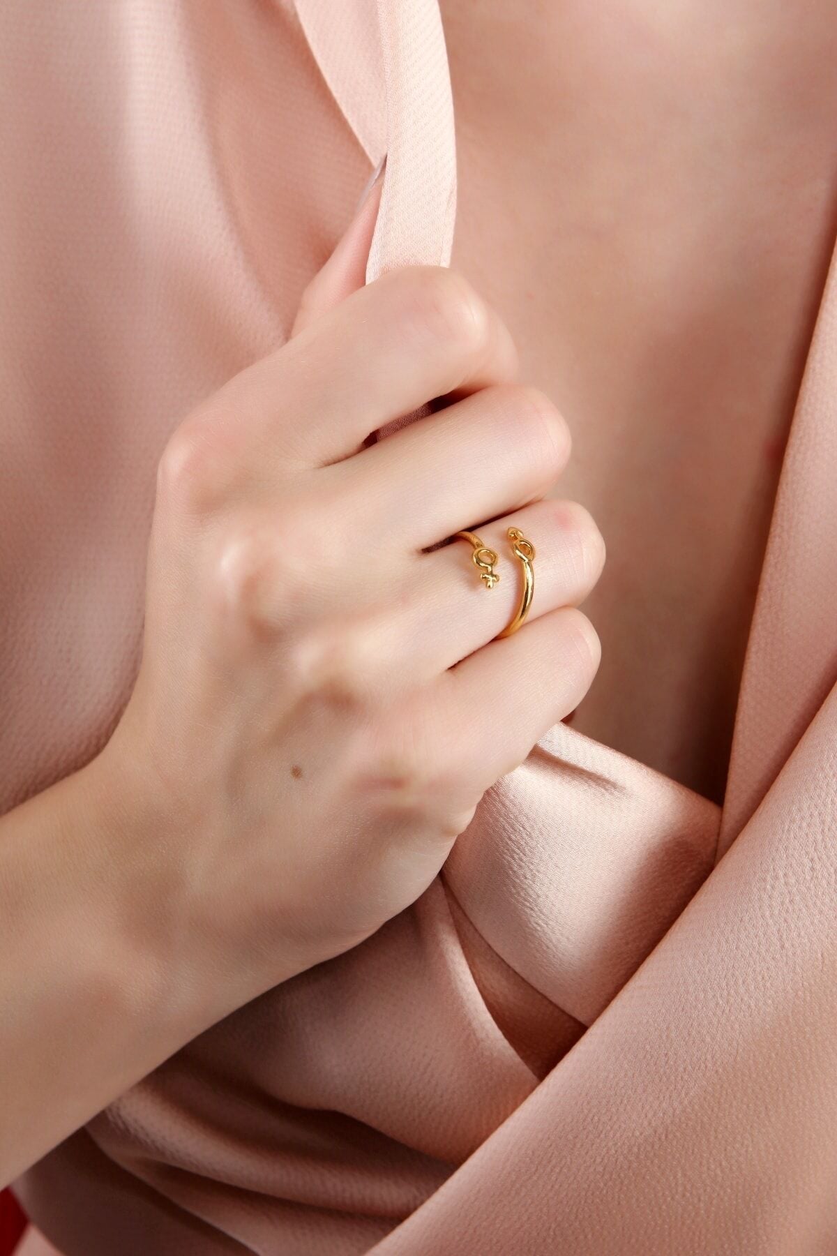 Kadın Altın Kaplama Ince Mars Ve Venüs Sembollu Yüzük