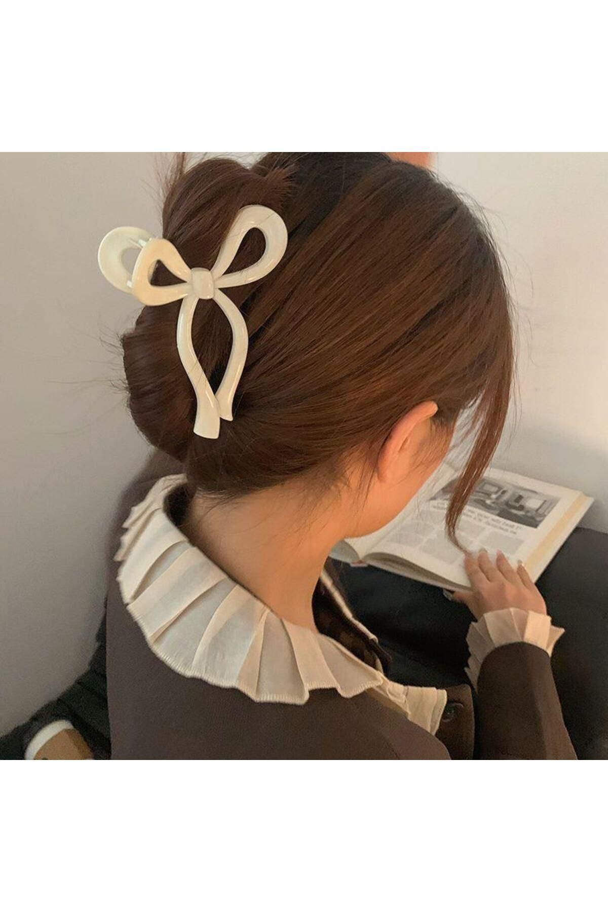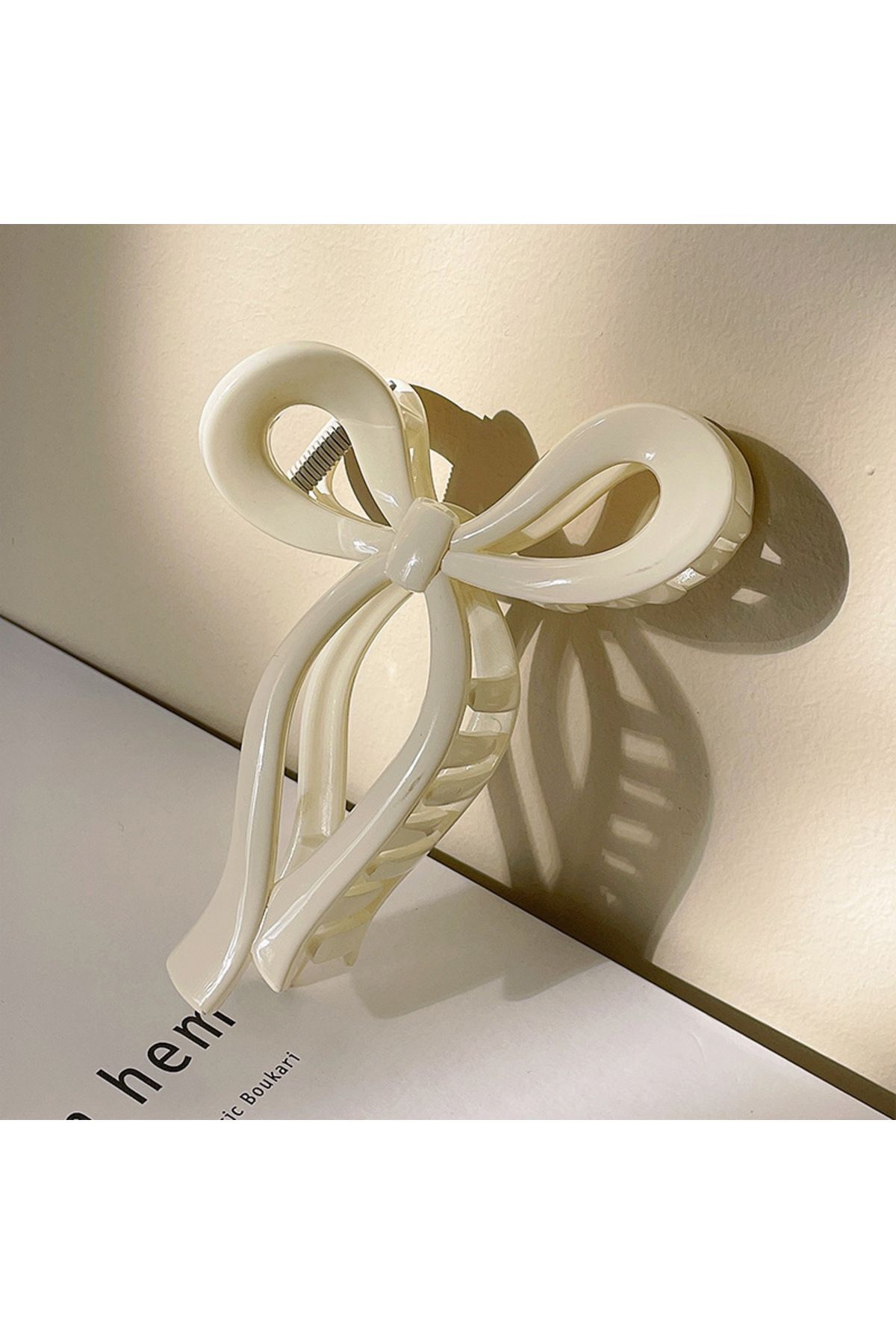 Kadın Beyaz Büyük Boy Fiyonk Parlak Kırılmaz Toka (11Cm)
