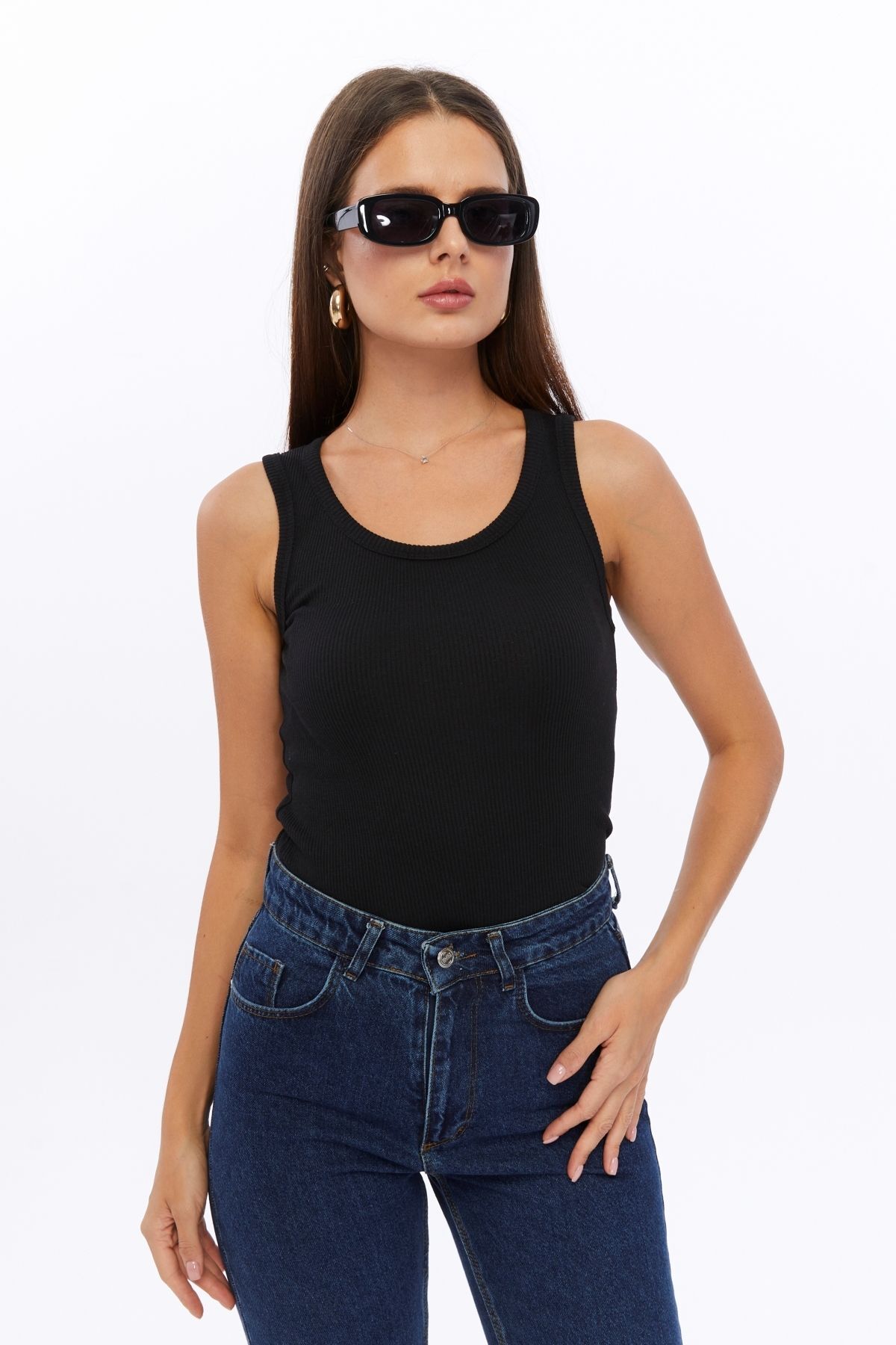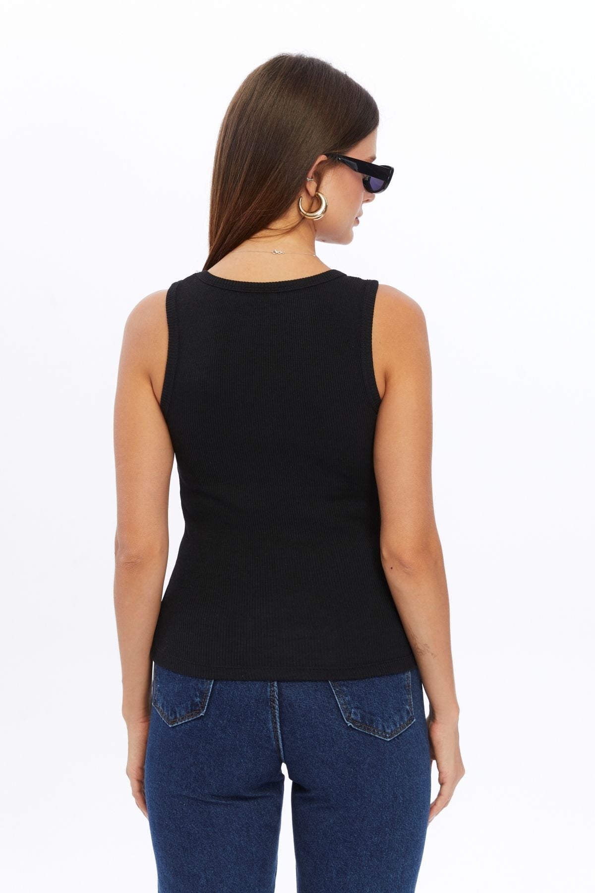 Kadın Fitilli Görünümlü Kalın Askılı Basic Siyah Atlet