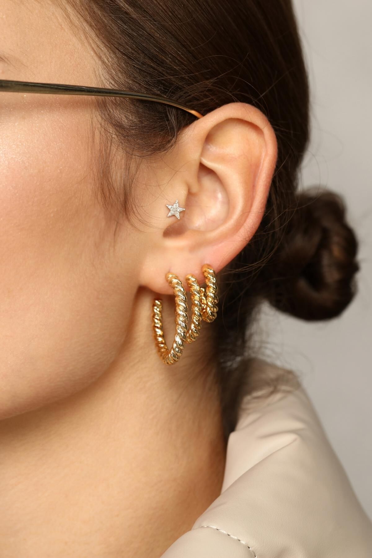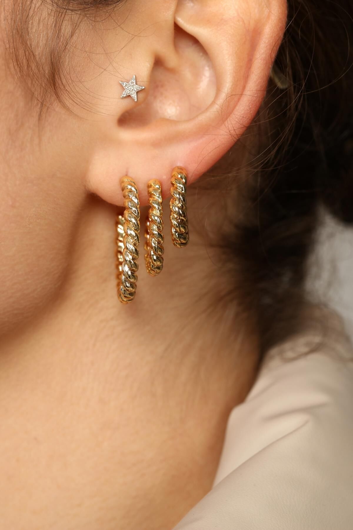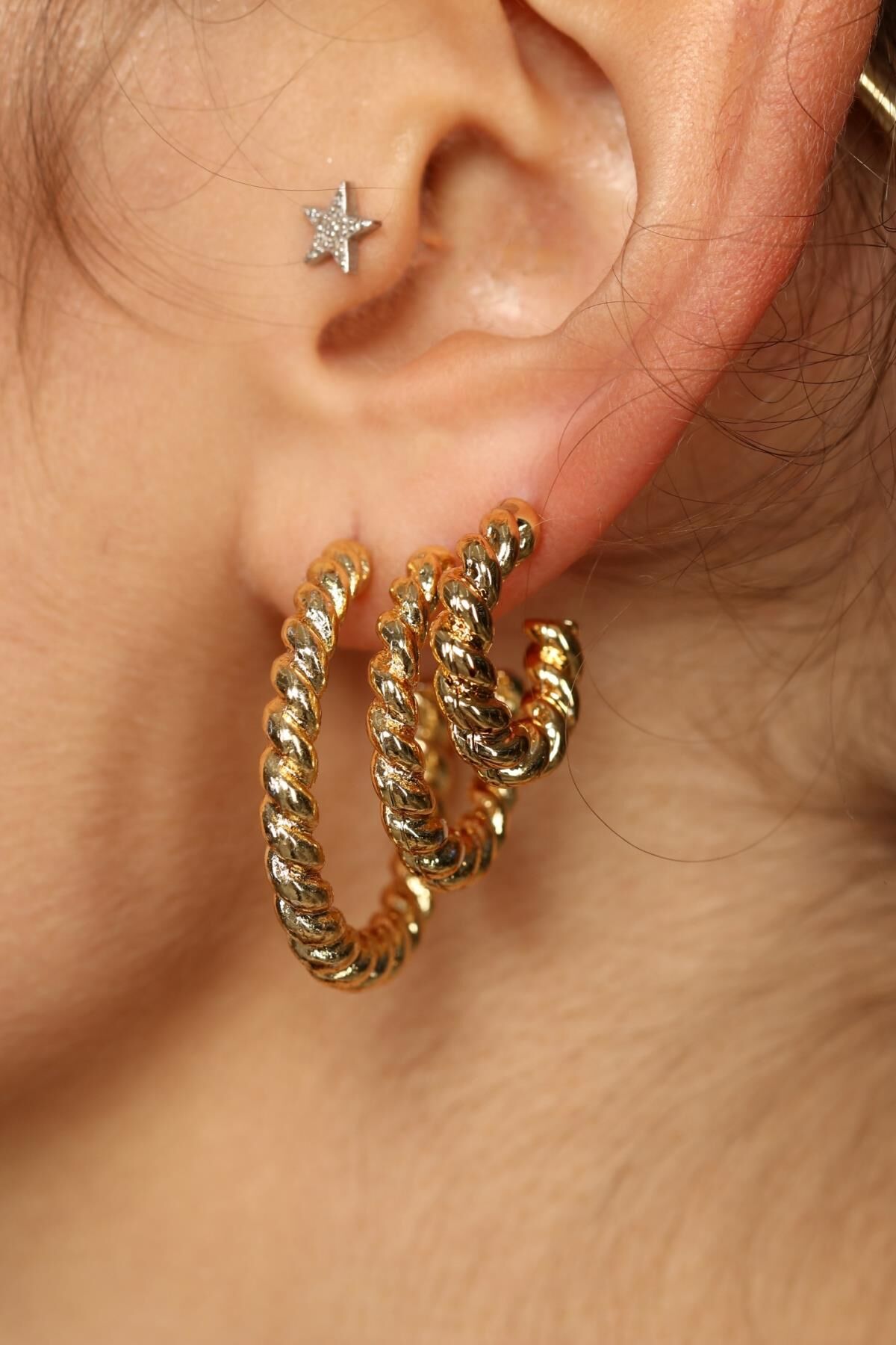 Aurrari 3'lü Burgu Küpe Set altın kaplama 3 farklı boyda halka küpe modelinden oluşur.