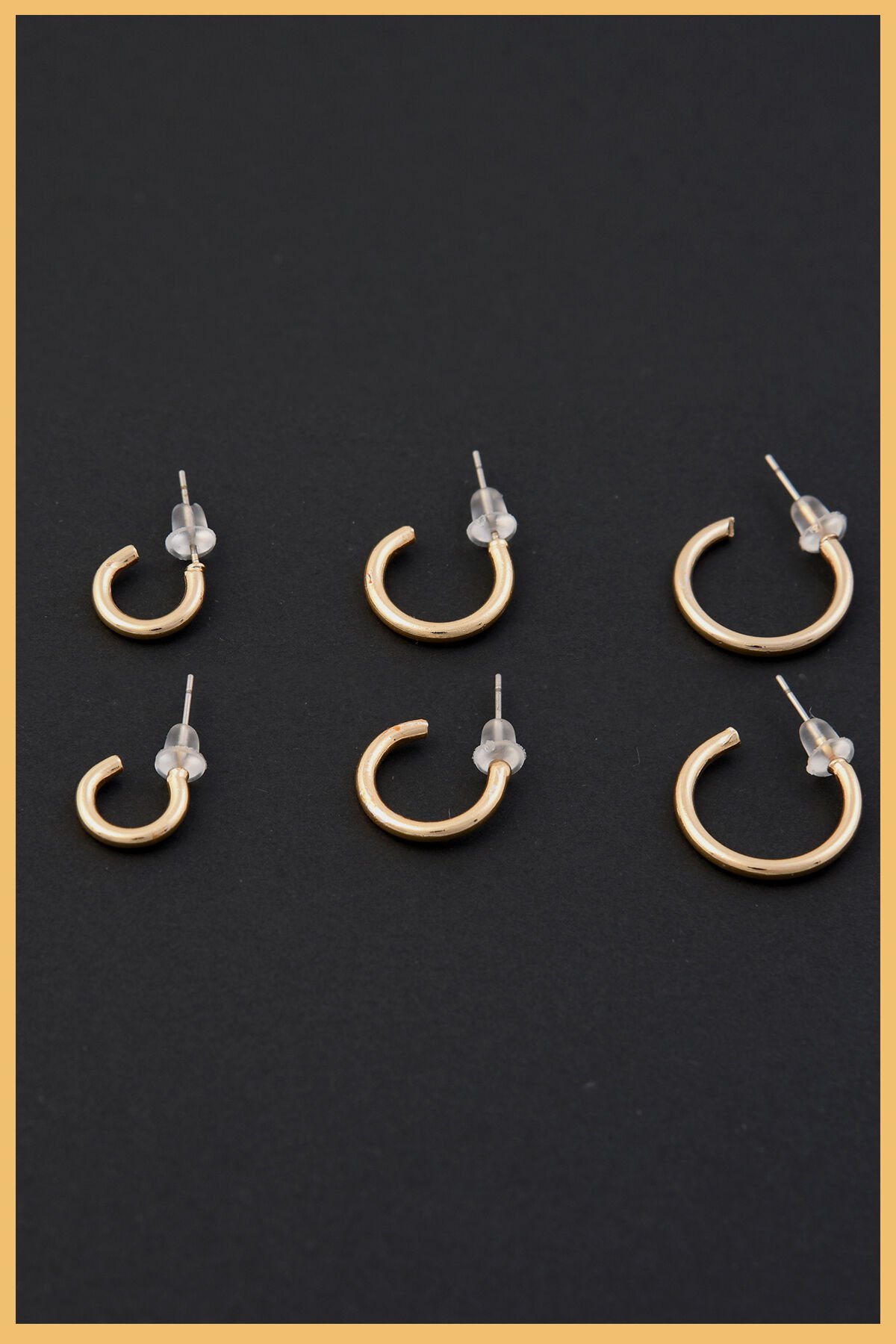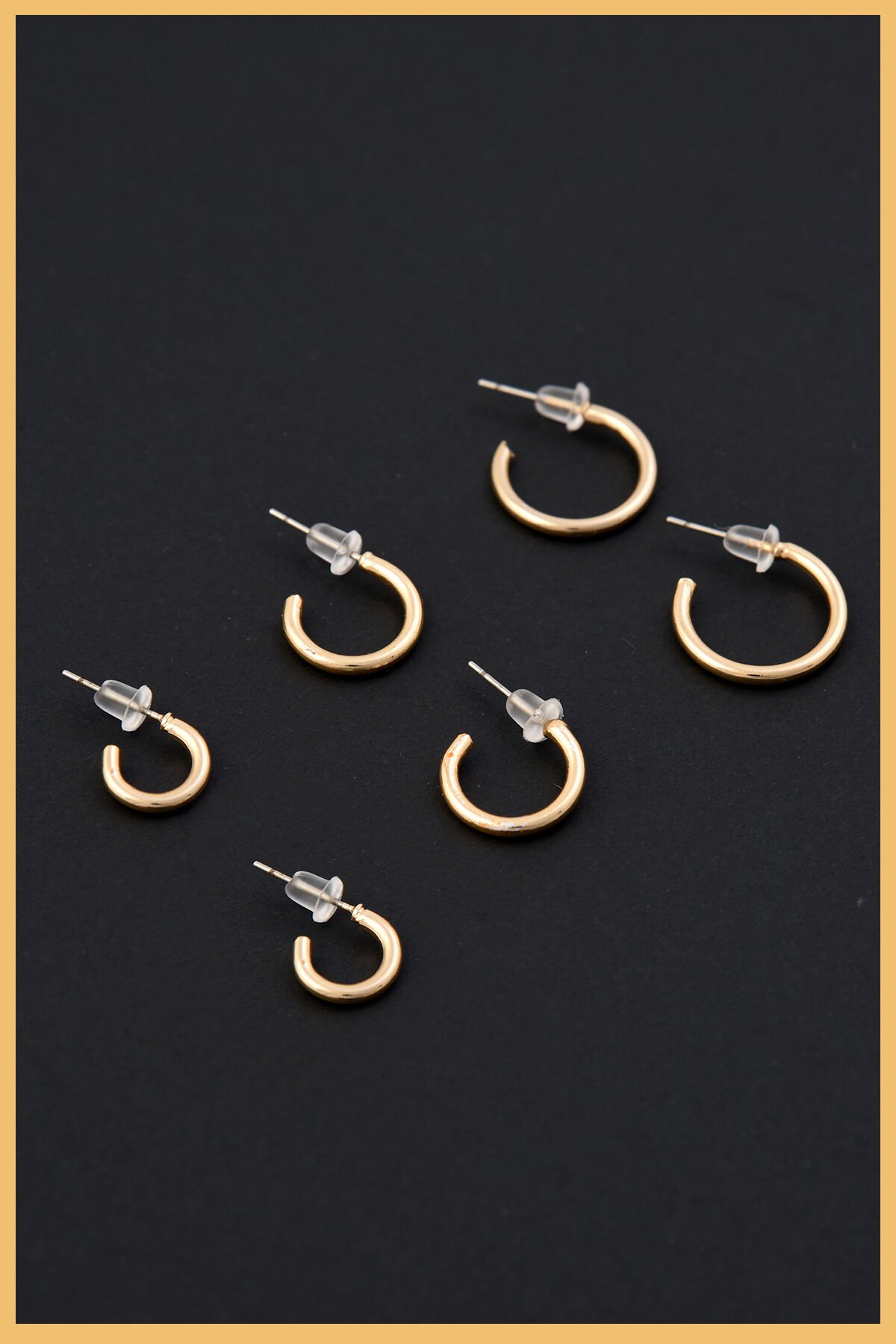 Kadın Gold 6'lı İnce Halka Küpe Seti – Altın Kaplama 3 Farklı Boy Alerji Yapmaz Küpe