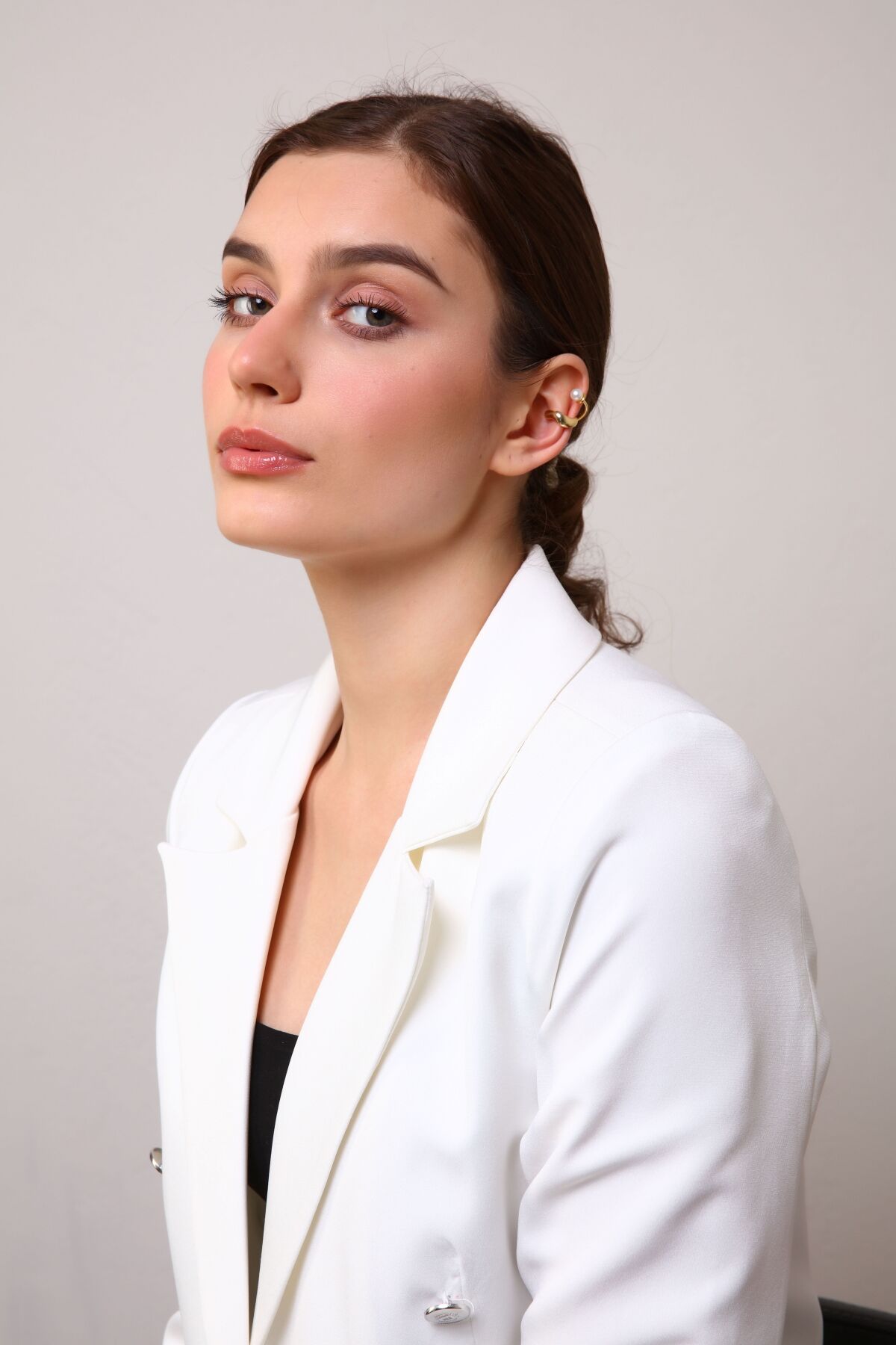 Stil: Modern kıkırdak küpe (ear cuff) modasının en zarif ve feminen yorumu.