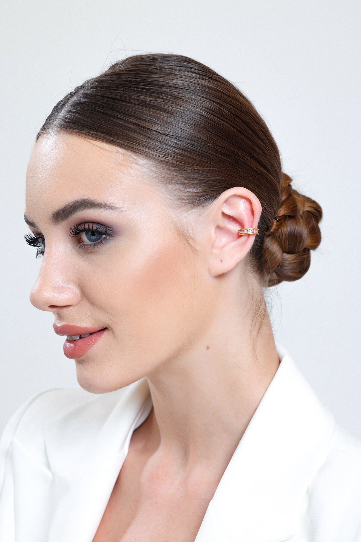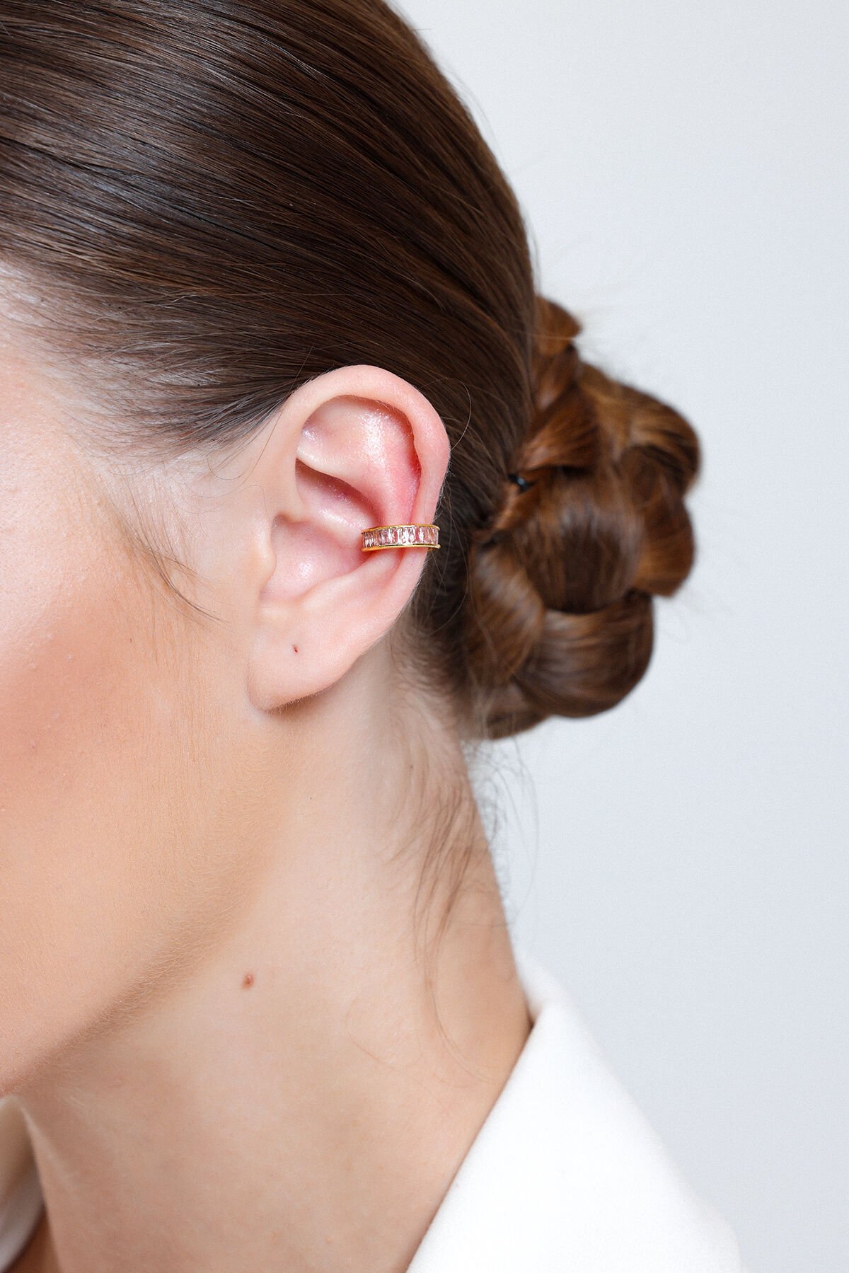 Kadın Gold Pembe Zirkon Baget Suyolu EarCuff Küpe