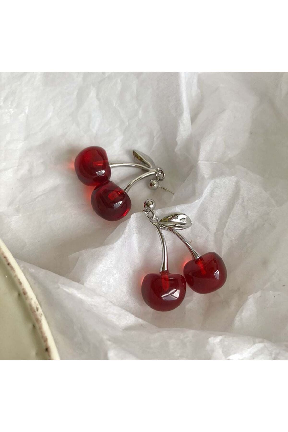Kadın Gümüş 2'li Cherry Yapraklı Kiraz Küpe