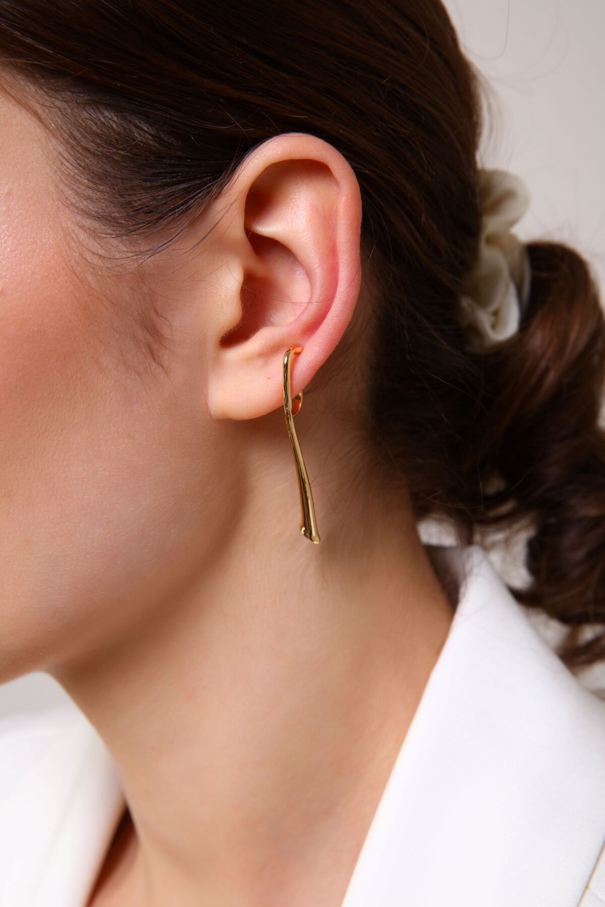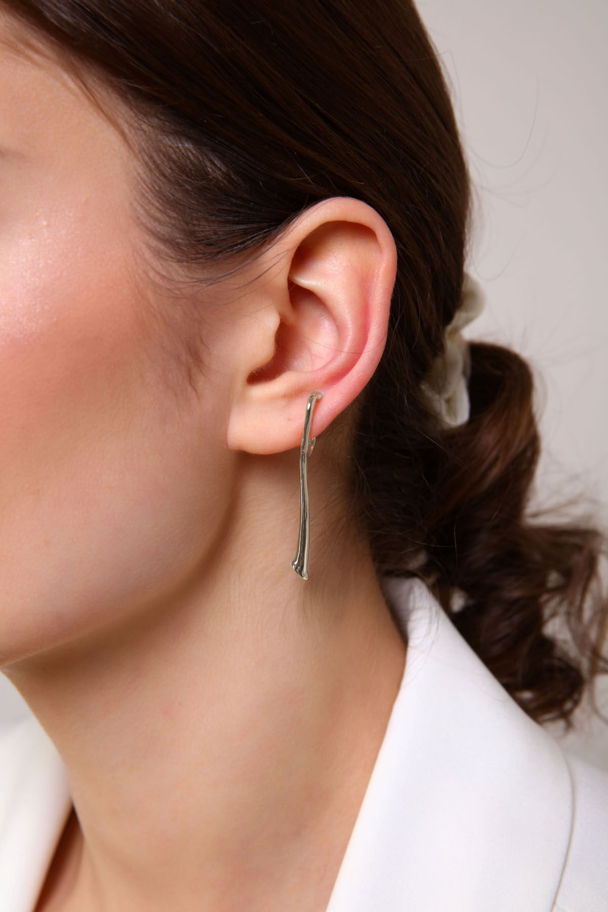 Stilinize zahmetsiz ve modern bir dokunuş katın. Aurrari’nin Baston Formlu Earcuff küpesi, minimalist bir dal parçasını andıran organik hatlarıyla kıkırdak bölgeniz için tasarlandı. Kulak deliği gerektirmeyen sıkıştırmalı yapısı, gümüşün serin ışıltısıyla birleşerek hem günlük kombinlerinize hem de özel davet şıklığınıza sofistike bir hava katar. Esnek yapısı sayesinde kulağınıza tam oturan bu parça, modern takı trendlerinin en özgün temsilcilerinden biri.