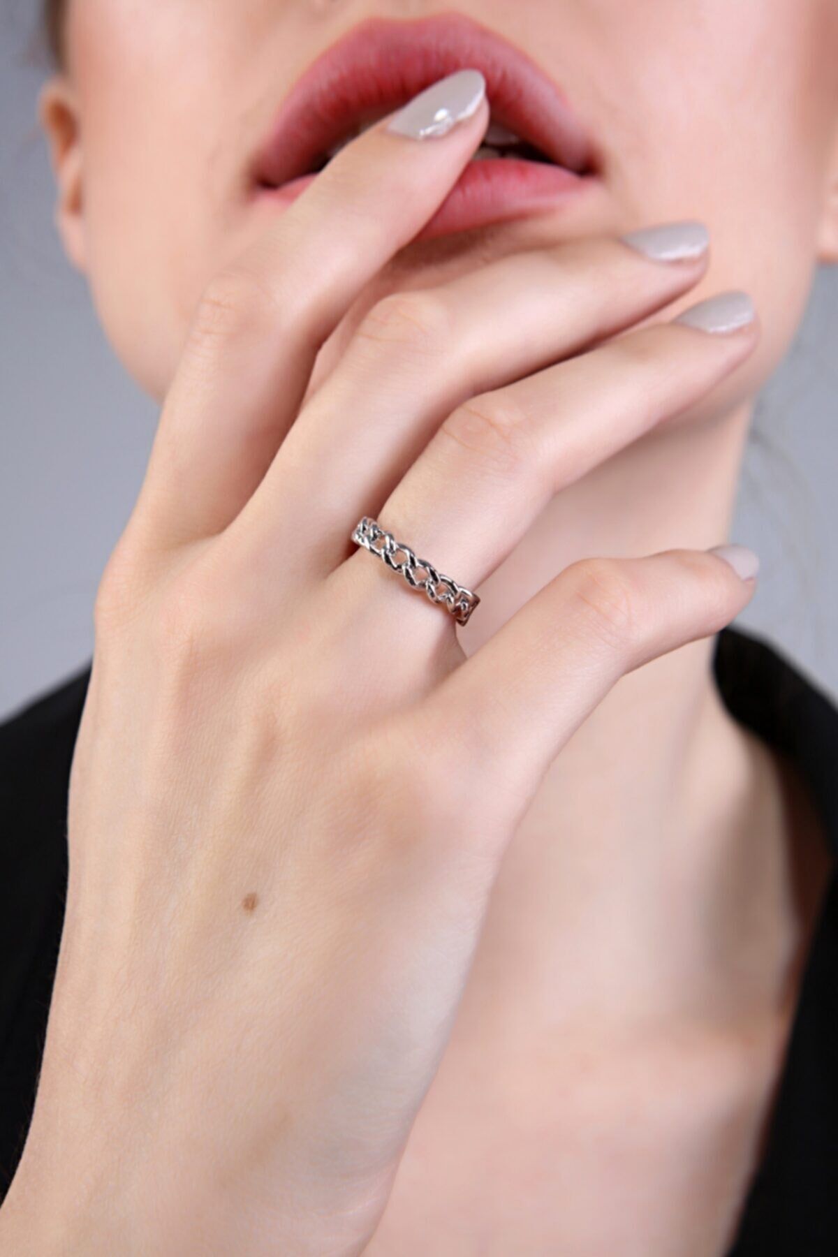 Kadın Gümüş Kaplama Ince Halat Yüzük