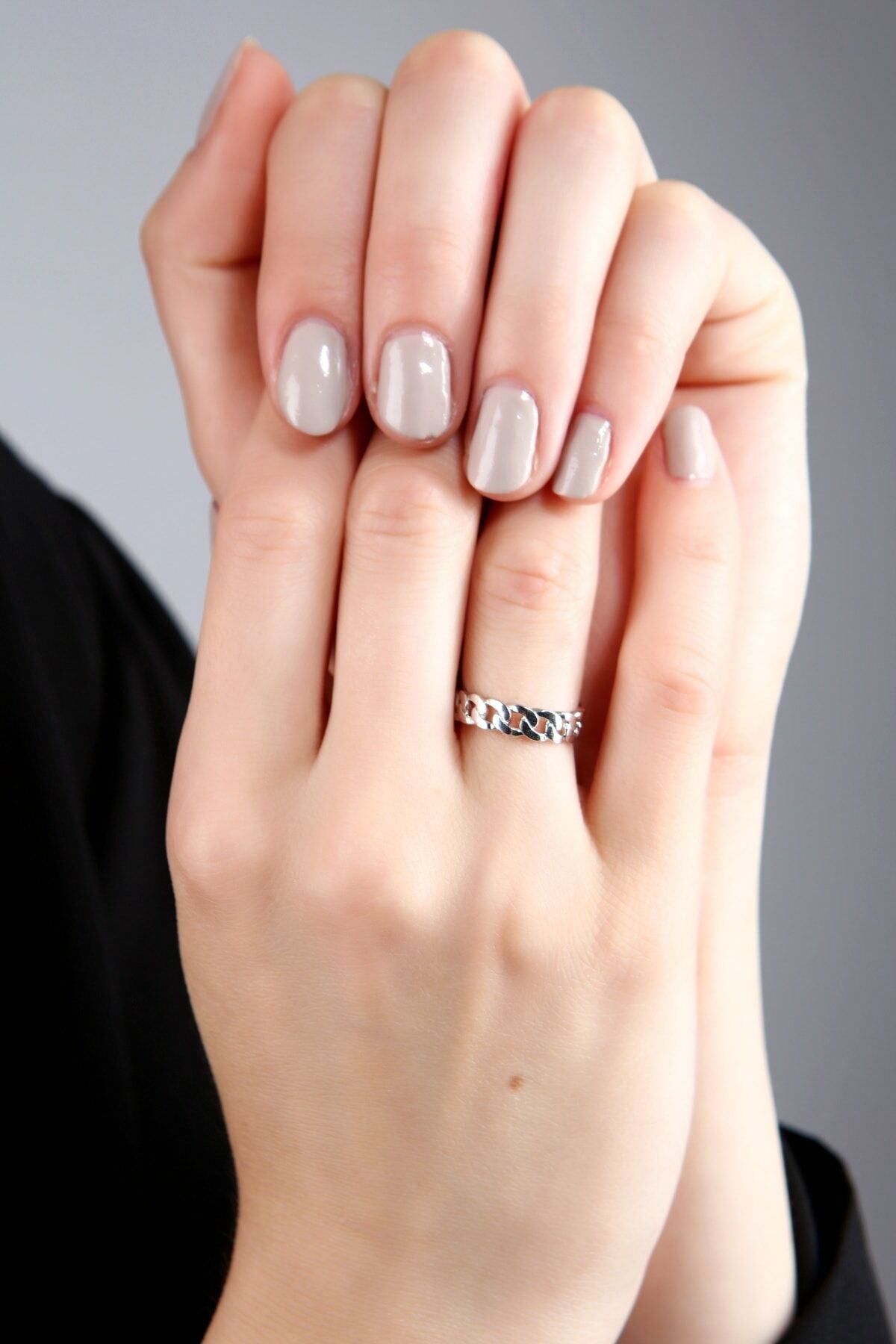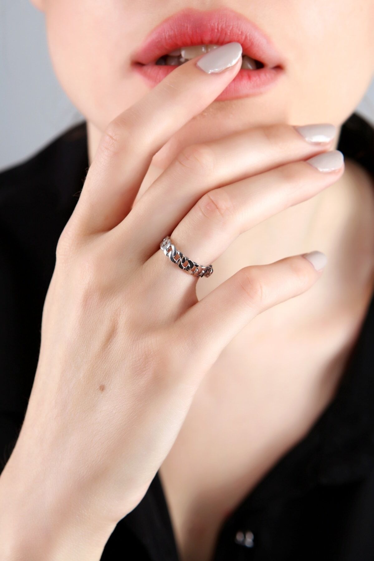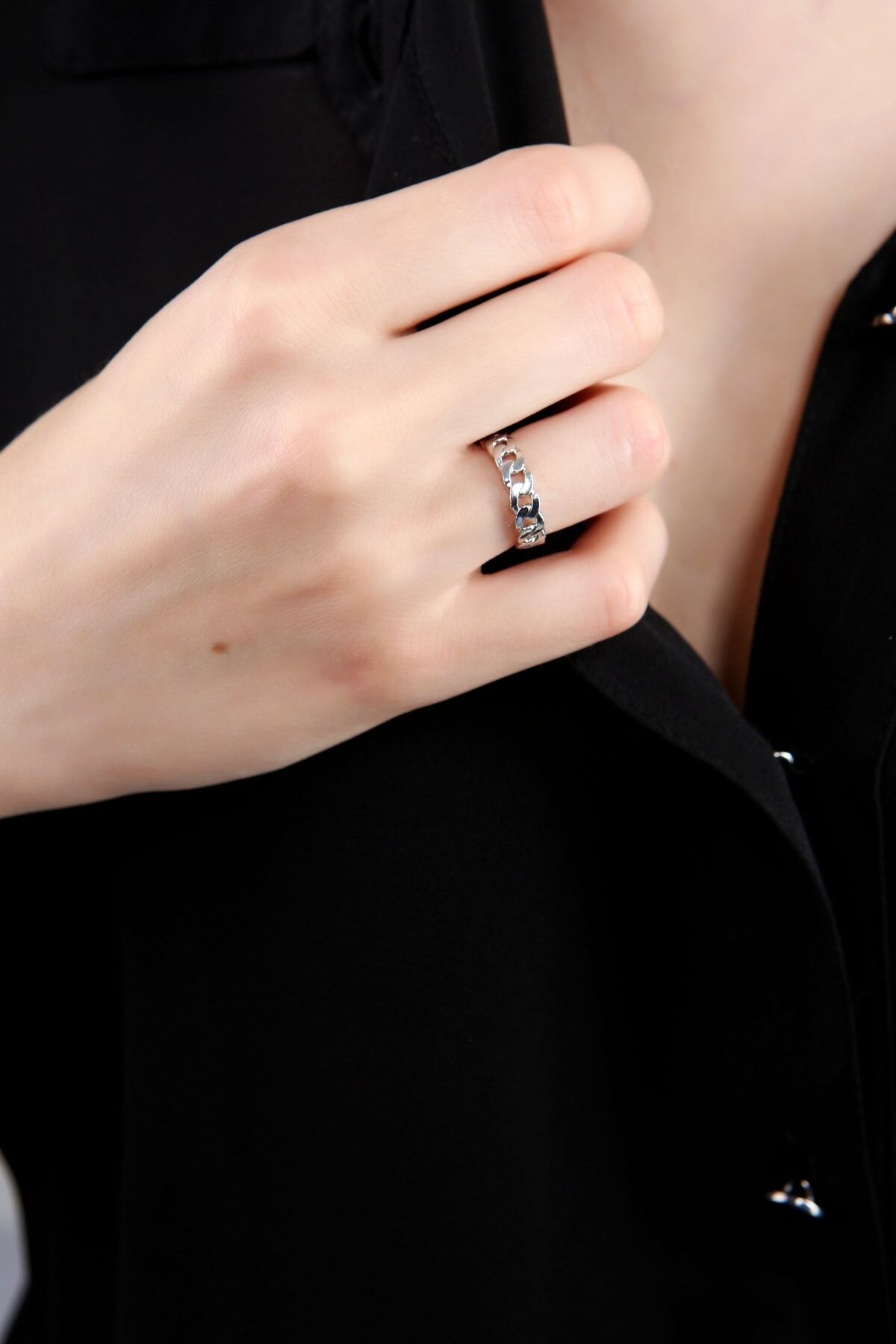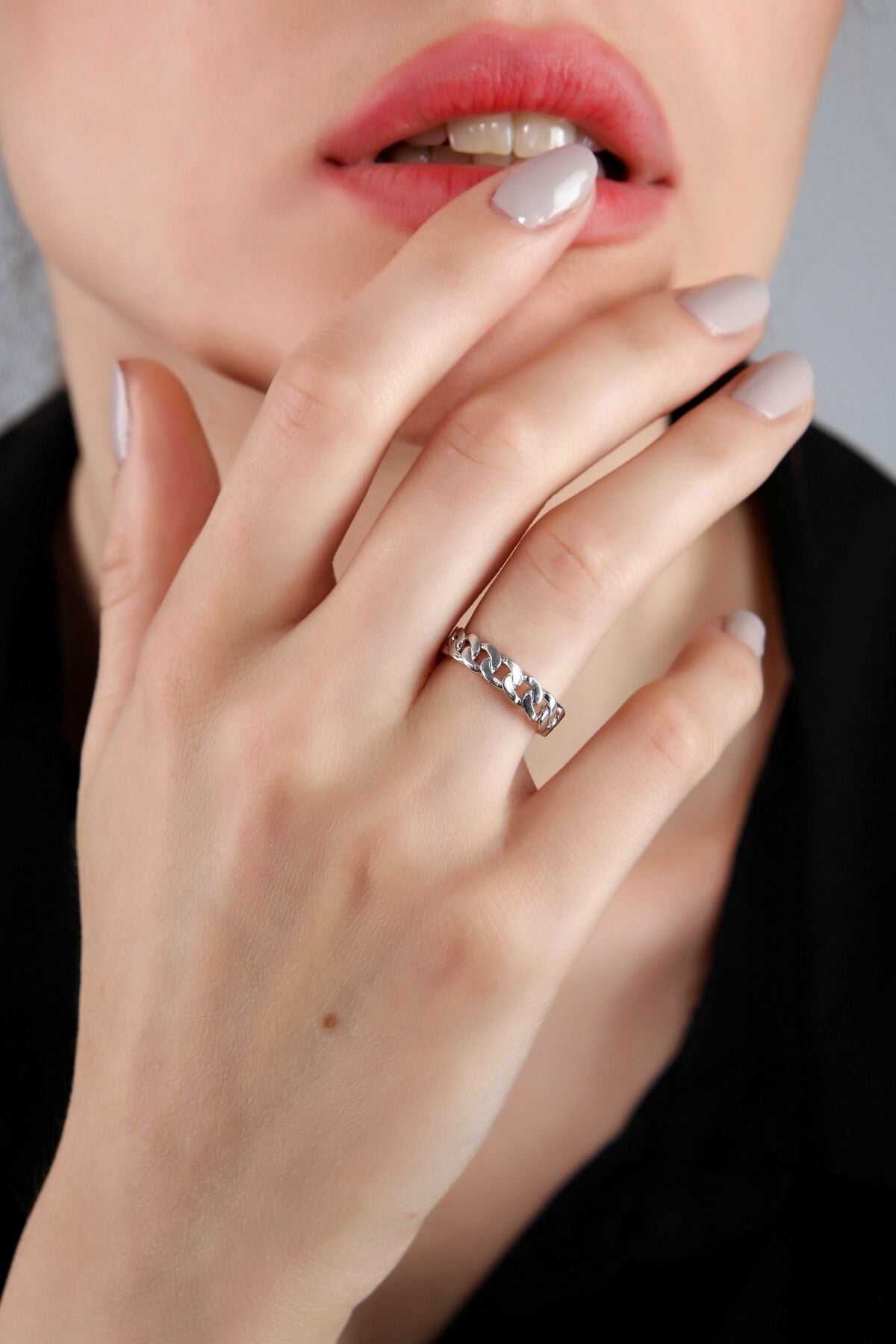 Kadın Gümüş Kaplama Ince Zincir Yüzük(ayarlanabilir)