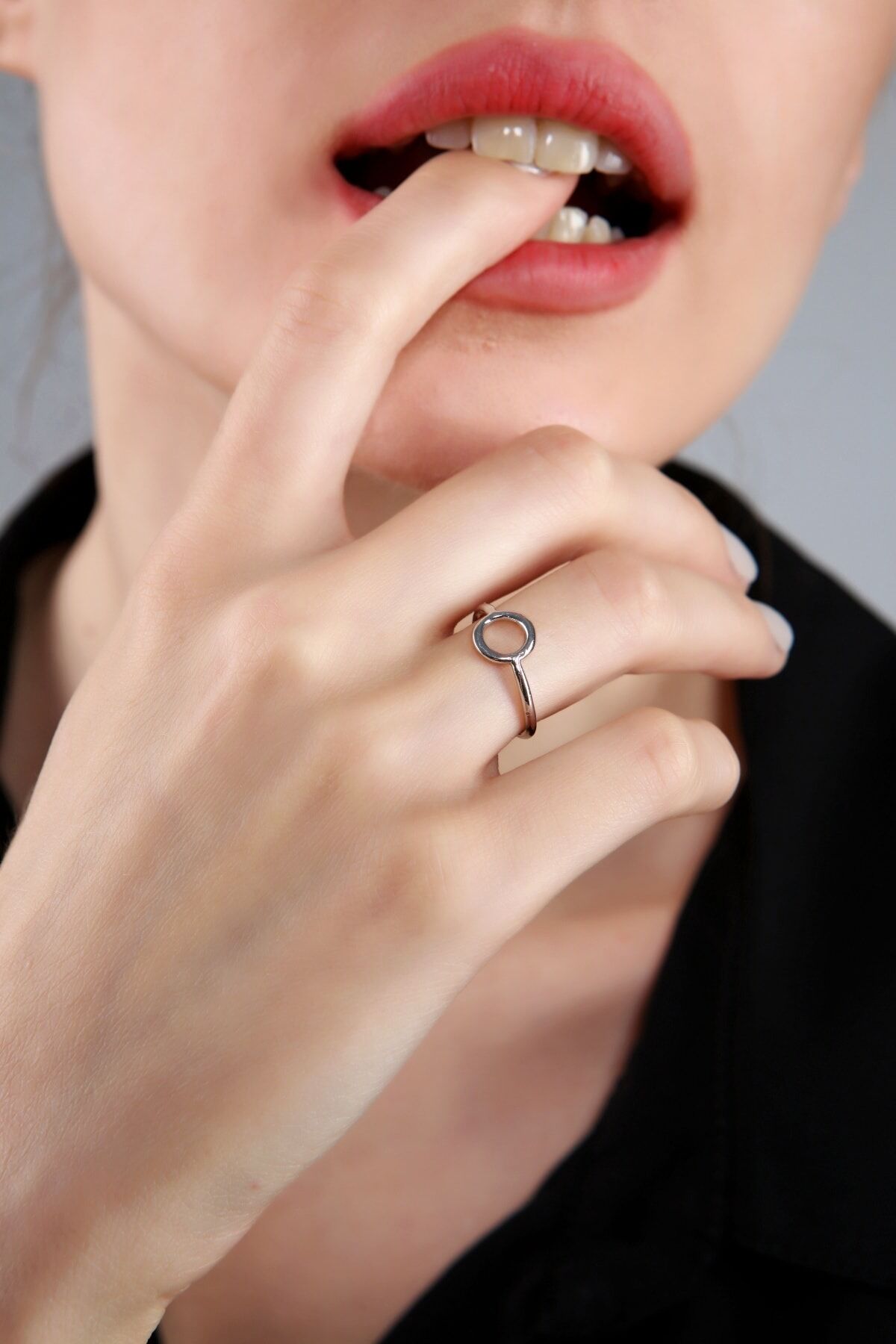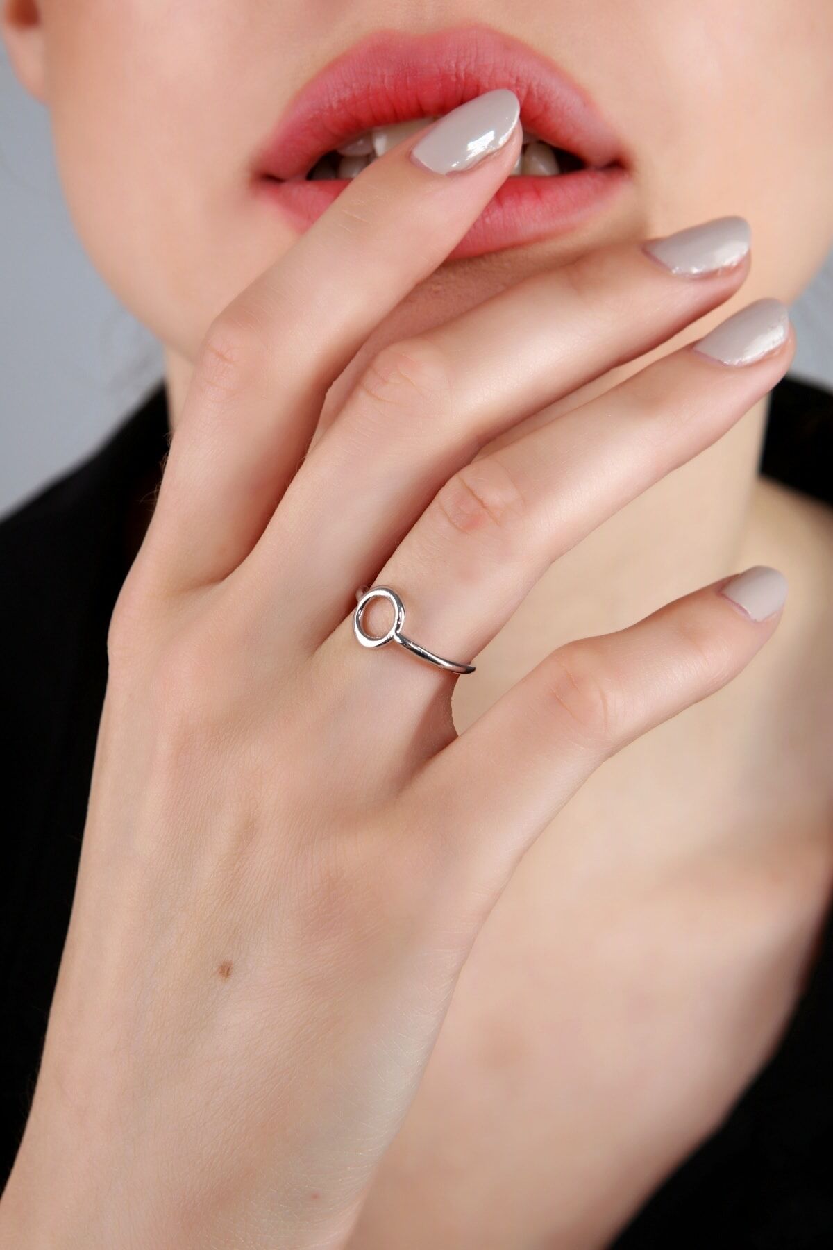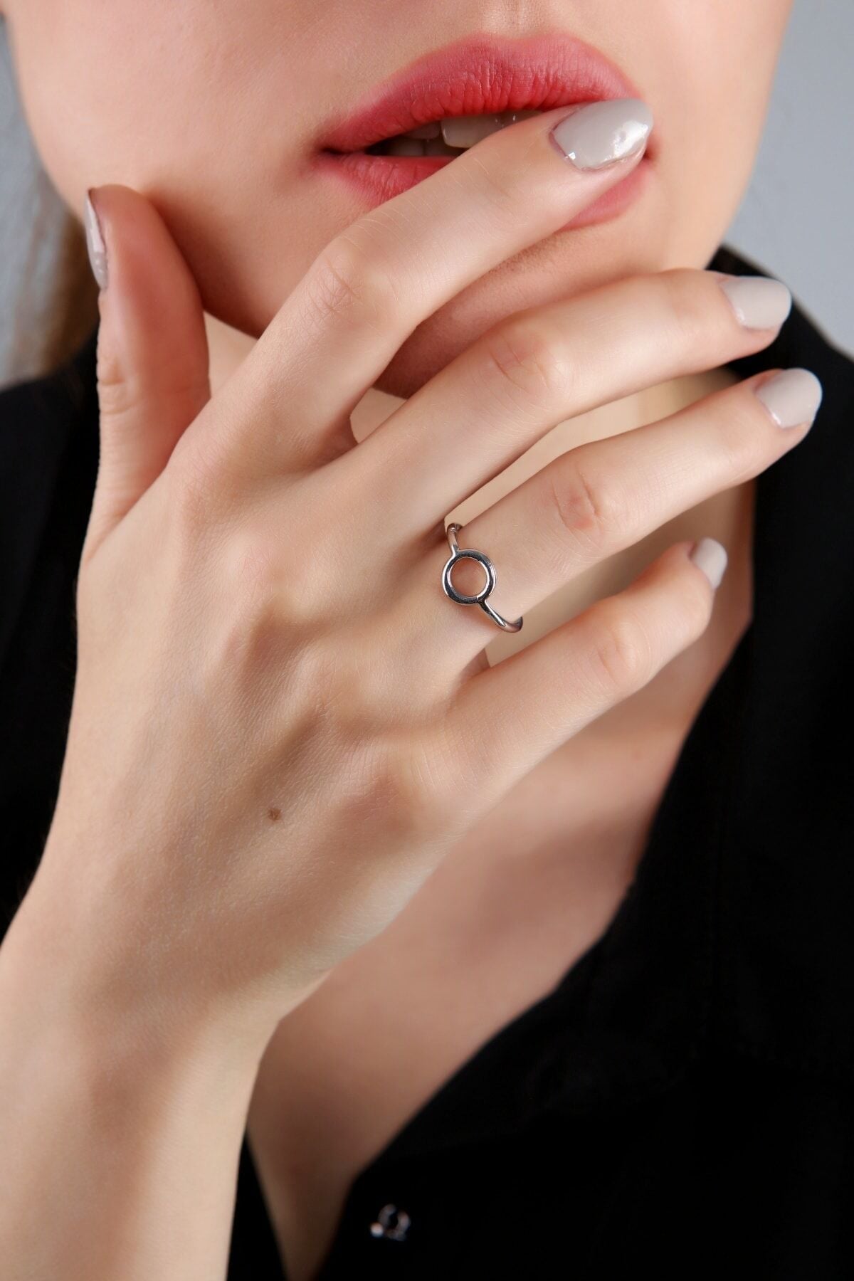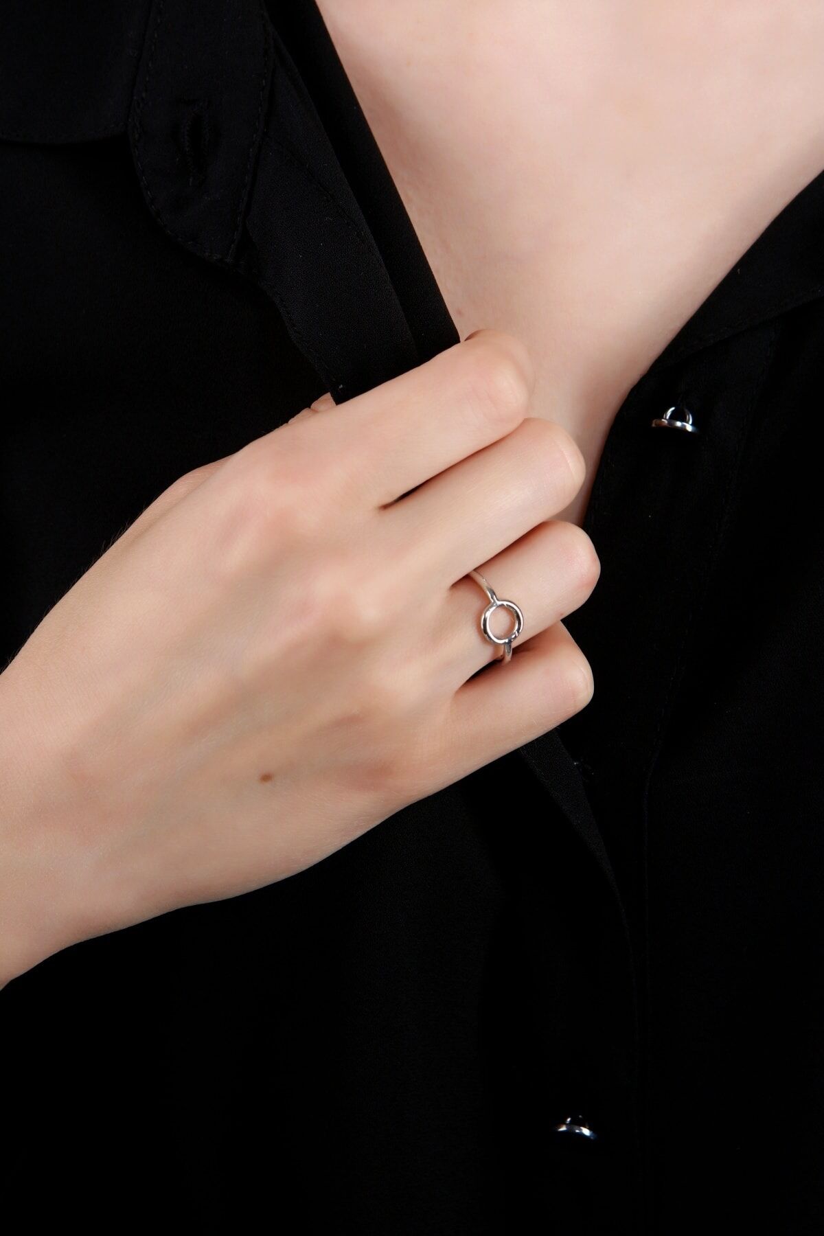 Gümüş kaplama yuvarlak yüzük, ayarlanabilir minimalist yüzük, dairesel takı modelleri, antialerjik gümüş aksesuar, modern eklem yüzüğü, ince gümüş yüzük, şık kadın takıları, Aurrari özel tasarım.