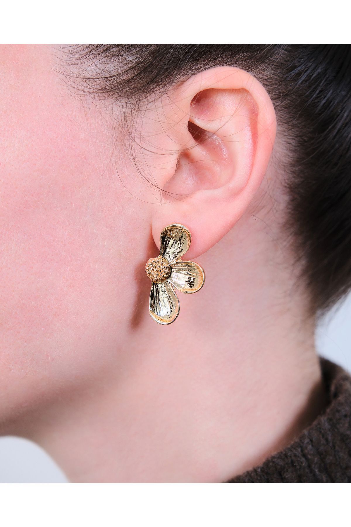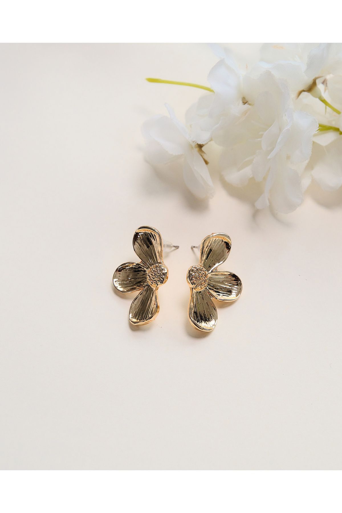 - Altın kaplama malzemesiyle üretilmiş, uzun ömürlü ve şık bir görünüm sunar.; - Bakımı kolaydır; nemli bir bez ile silerek temizlenebilir.; - Kadın ve kız kullanıcılar için idealdir, zarif tasarımıyla dikkat çeker.; - Türkiye'de üretilmiştir, yerel üretim avantajını yansıtır.; - Pirinç materyali sayesinde dayanıklılık ve estetik birleşir.; - Çivi modeli ile klasik ve zamansız bir stil vurgular.; - Taşsız yapısıyla minimalist ve sofistike bir dokunuş katarken, çiçek motifleriyle feminenliği ön plana çıkarır.