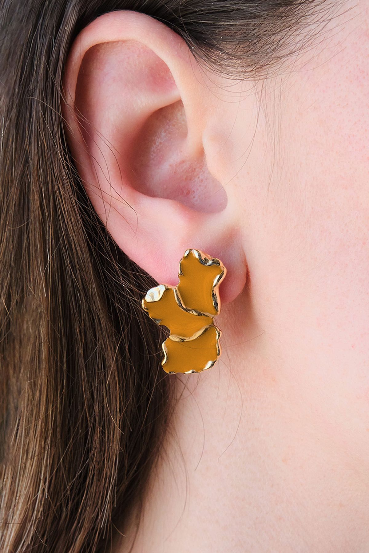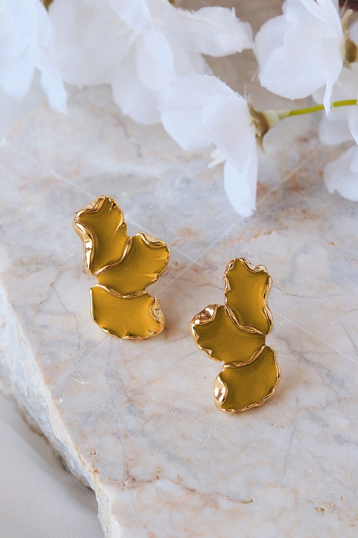 Sarı Mineli Yaprak Küpe