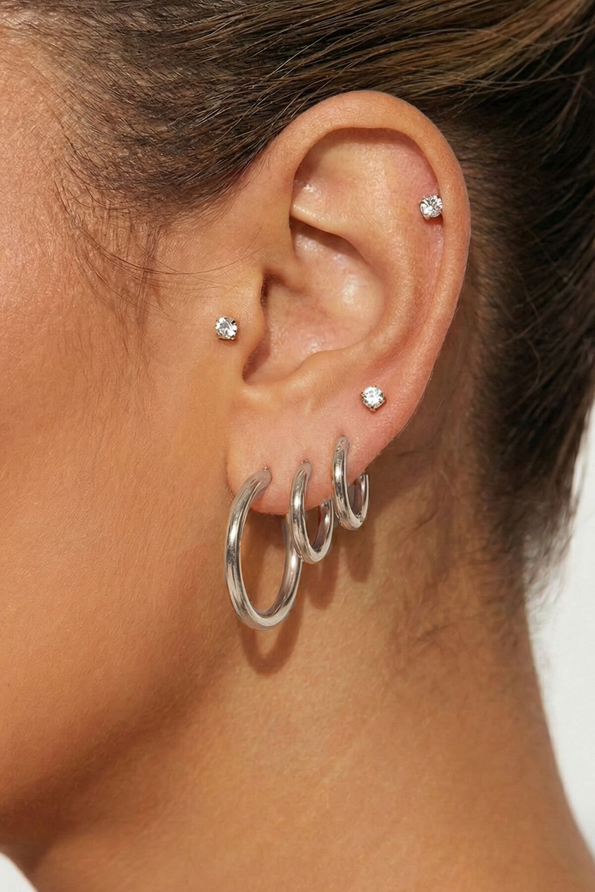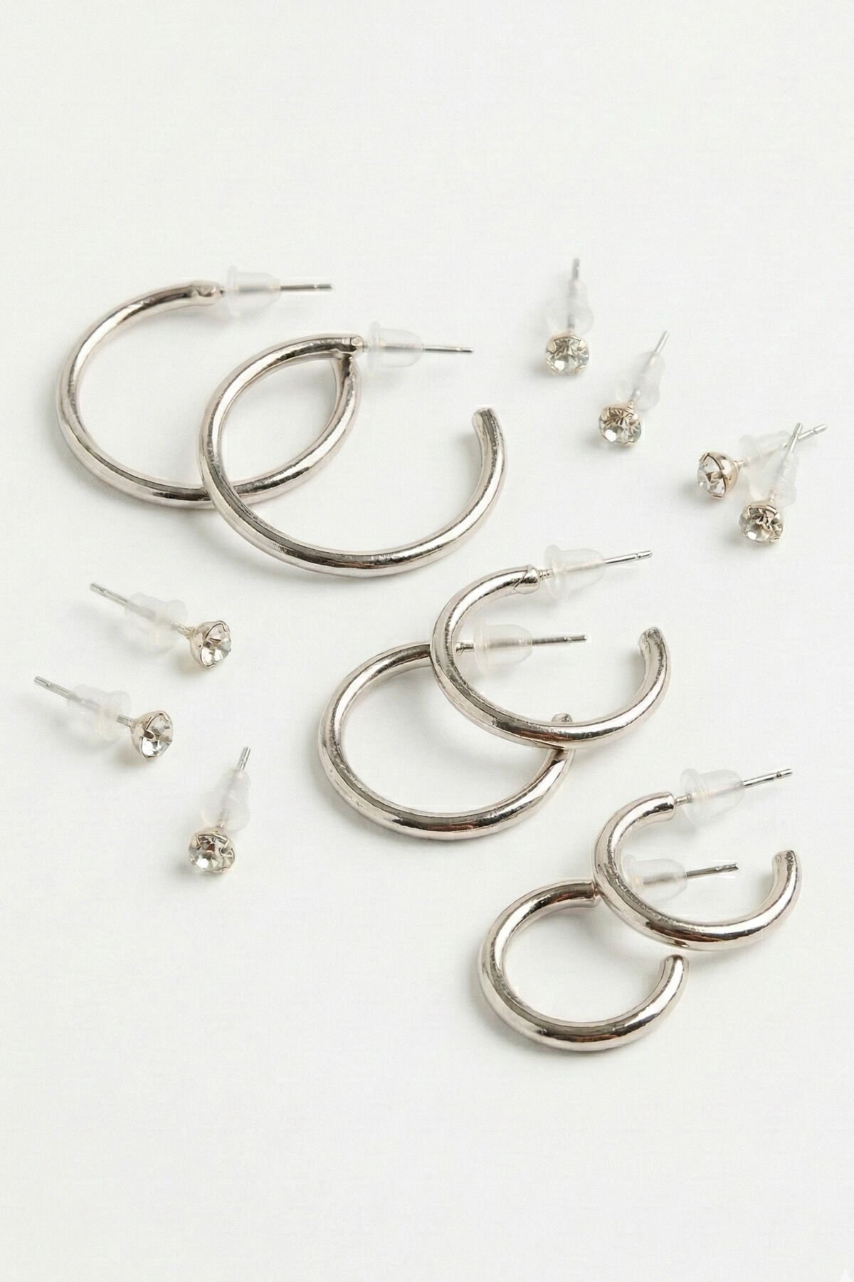 Silver 3 Çift Halka Ve 6 Adet Zrikon Taşlı Küpe Seti