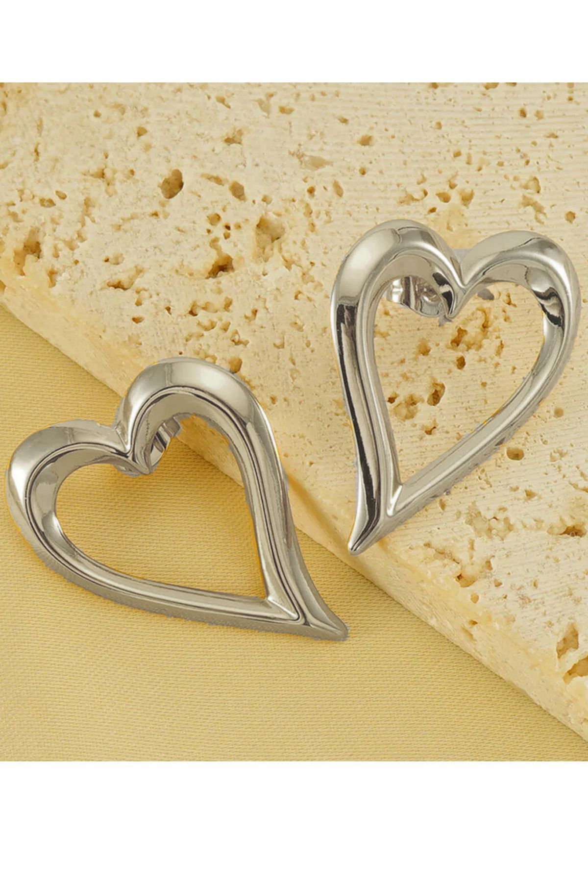 Silver Küçük Kalp Minimal Küpe – Gümüş Kaplama Minimalist İçi Boş Çivi Küpe