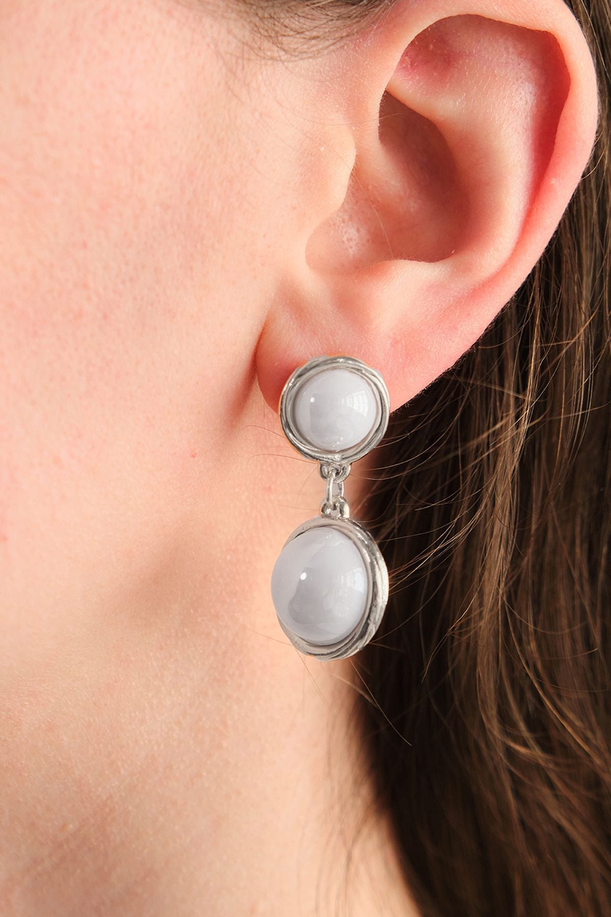 Silver Sallantılı Taşlı Yuvarlak Küpe