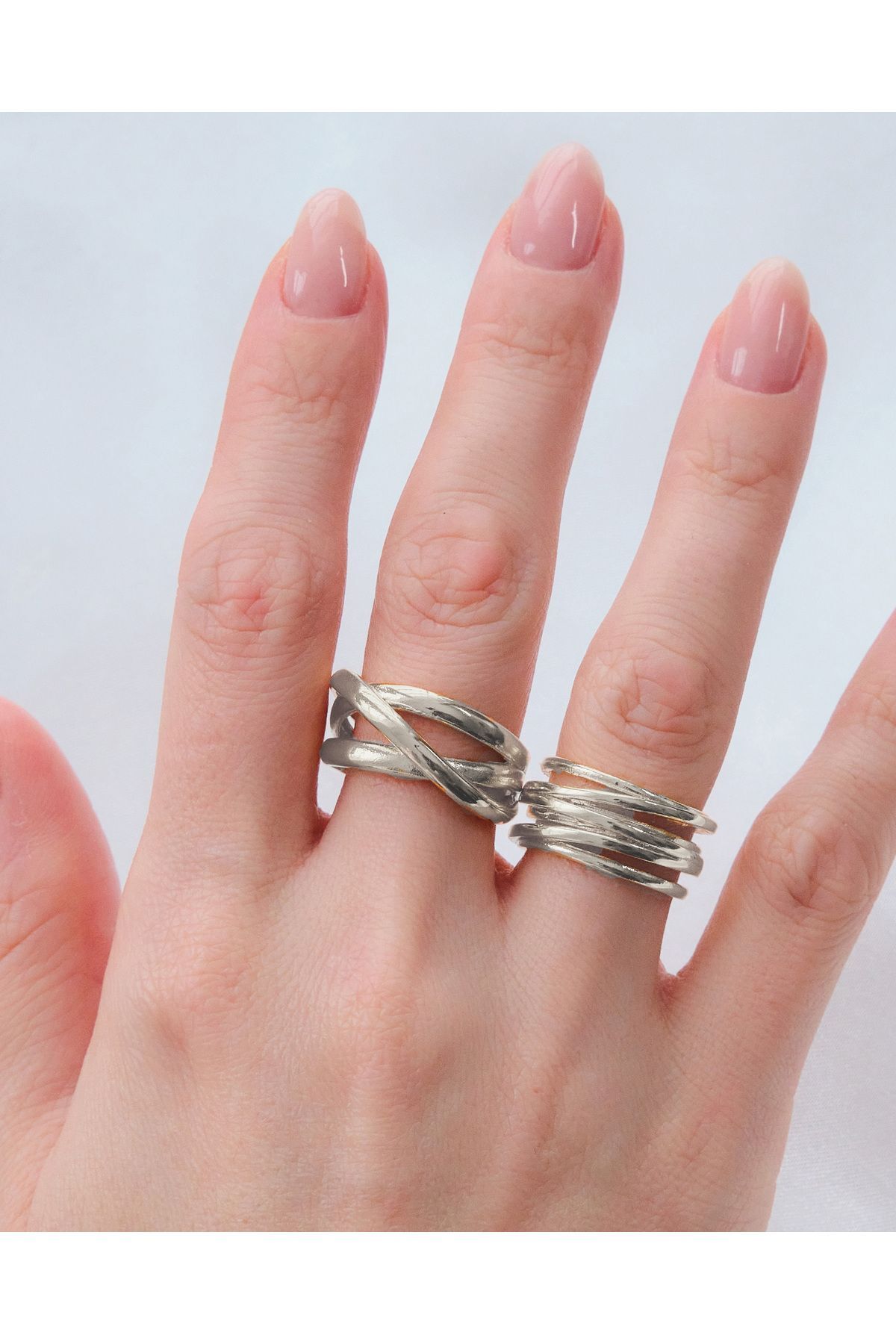 Silver Sarmal 2'li Yüzük Seti