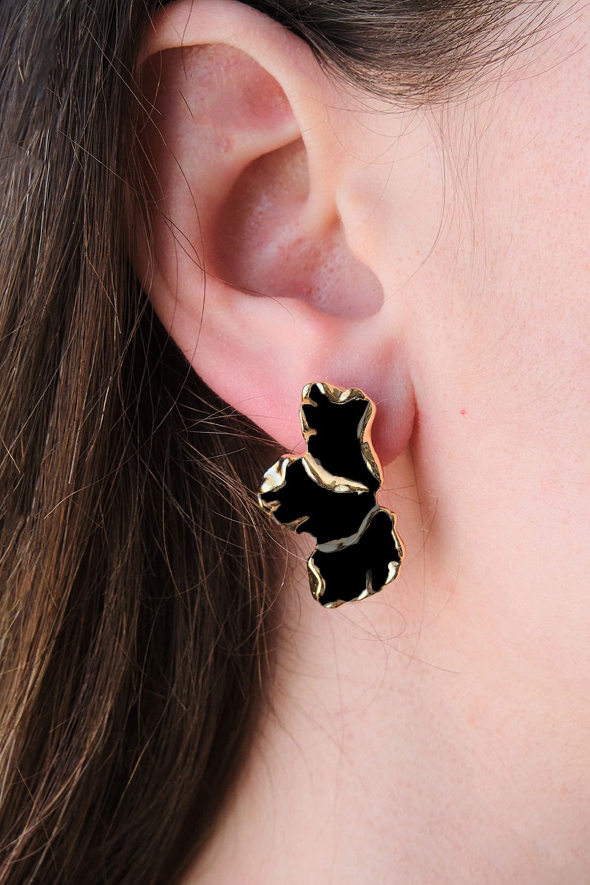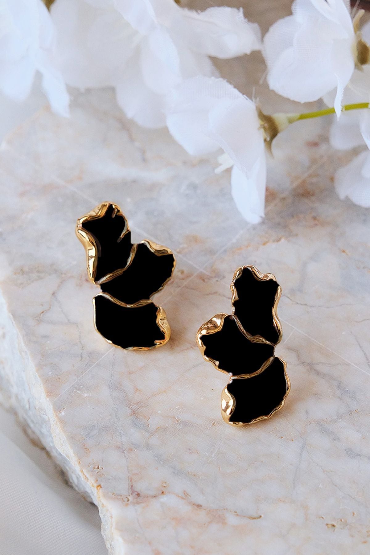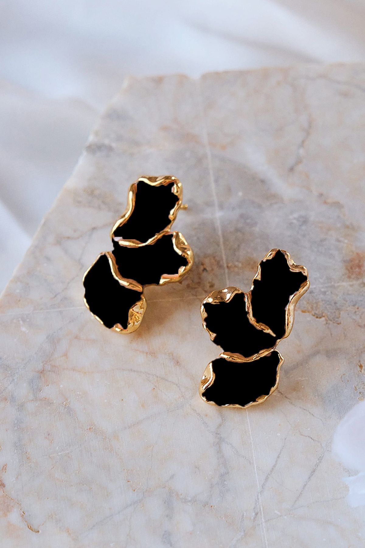 Siyah Mineli Yaprak Küpe