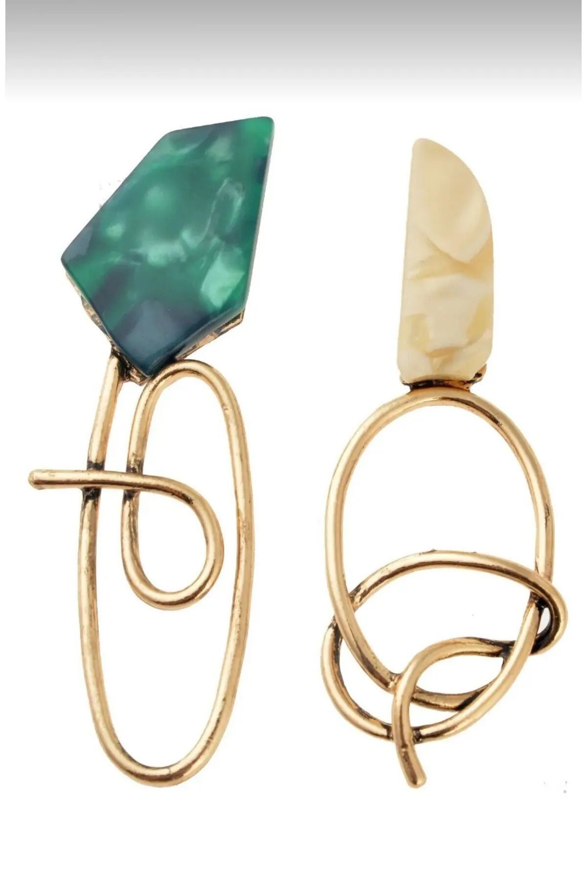 Yeşil Beyaz Tasarım Mine Gold Küpe