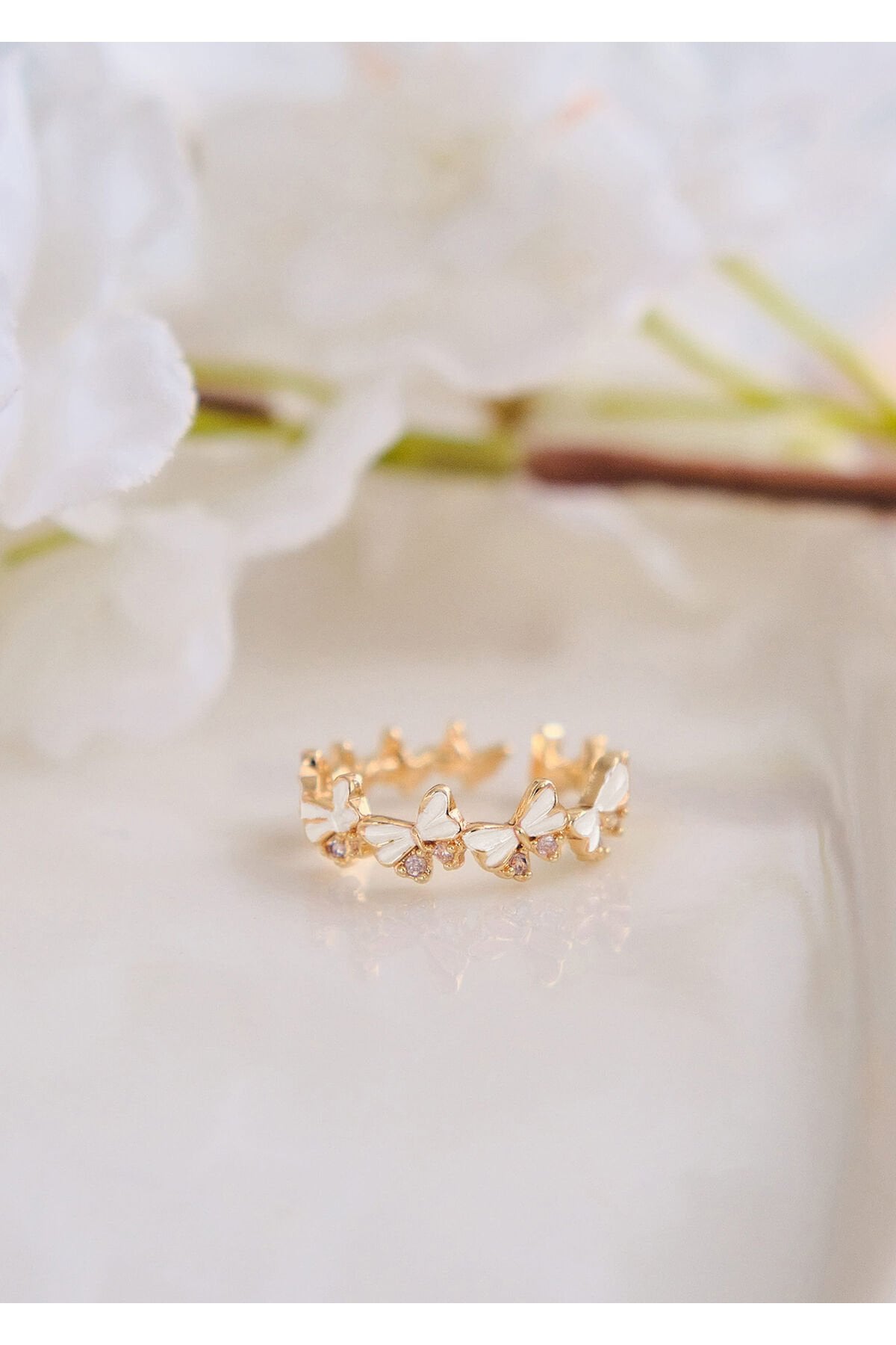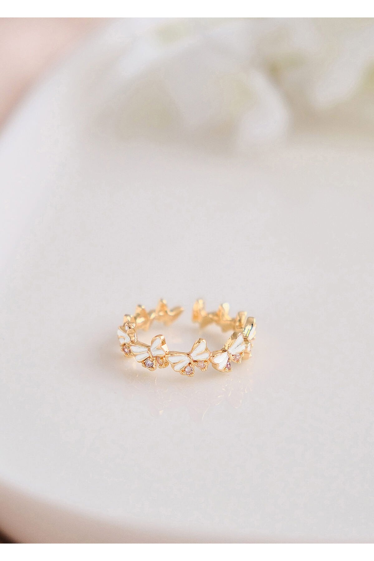Zirkon Taşlı Beyaz Kelebek Çelik Yüzük