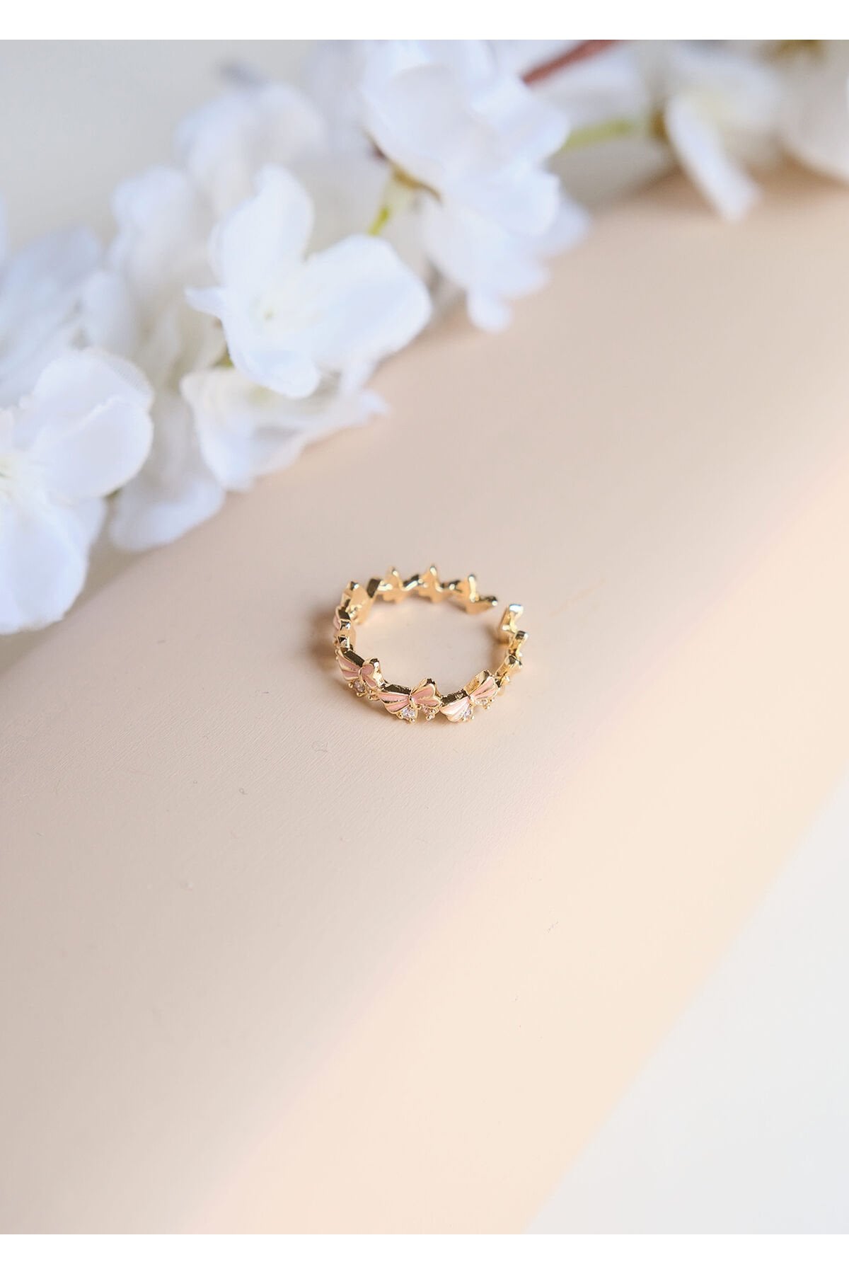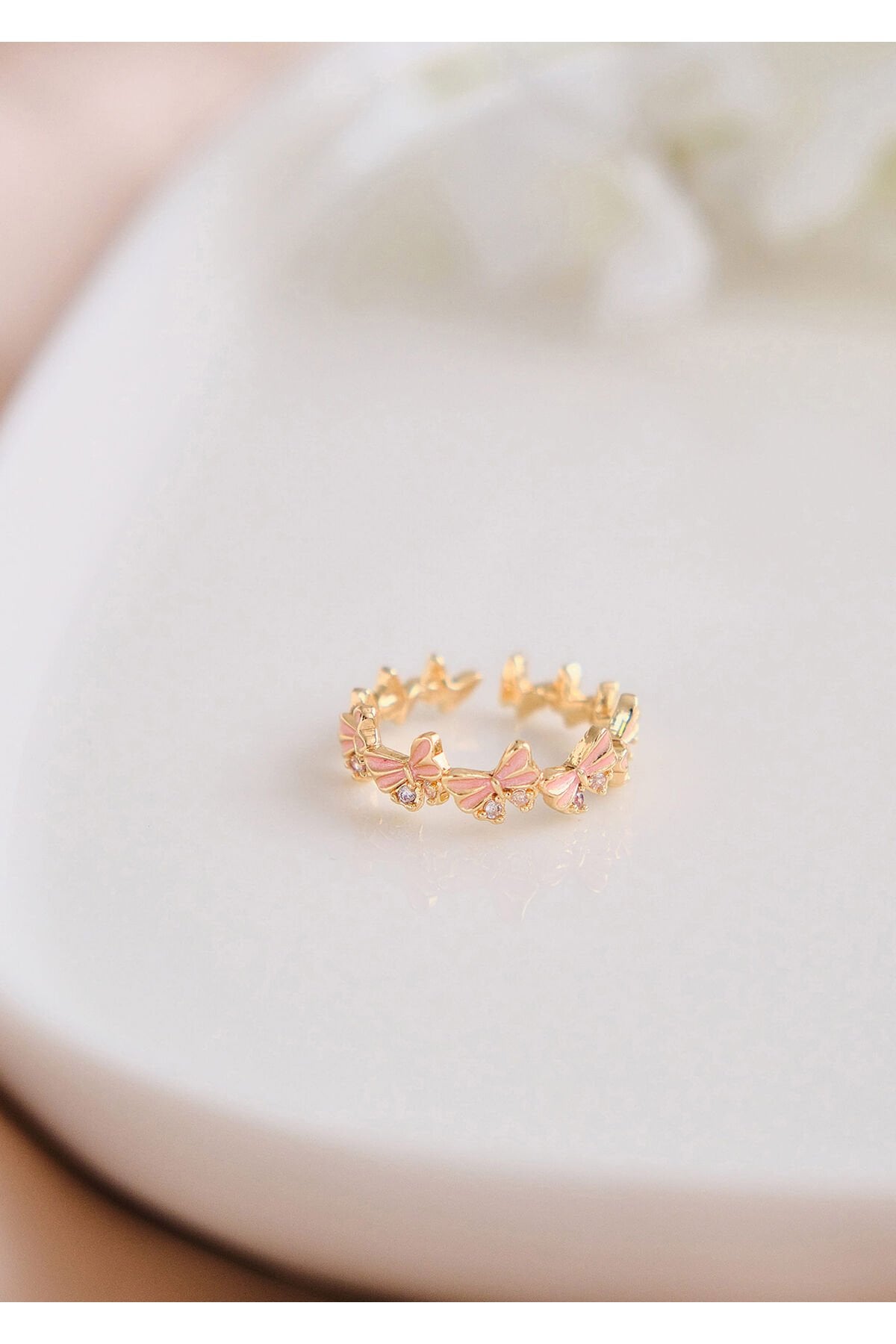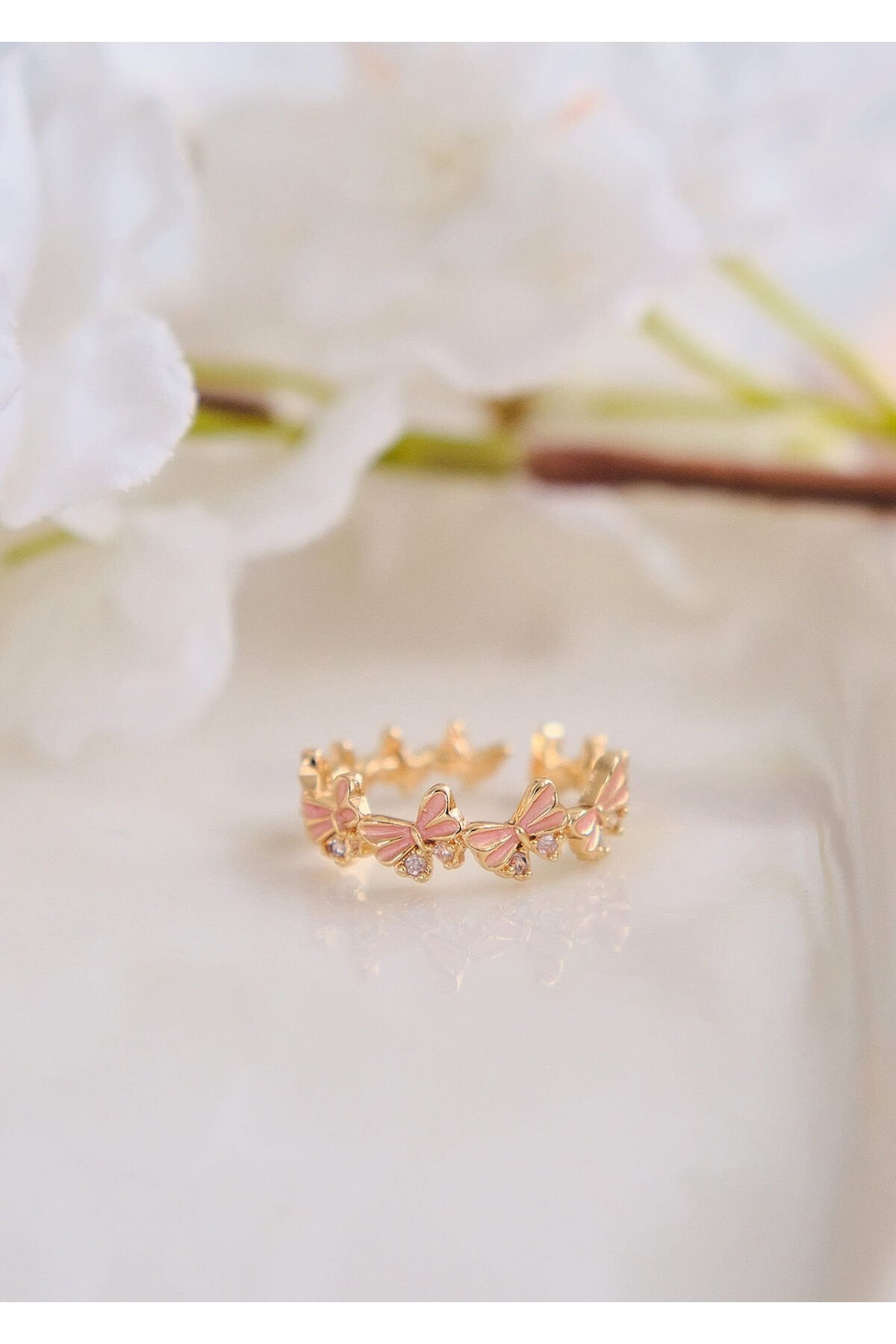 Zirkon Taşlı Pembe Kelebek Çelik Yüzük