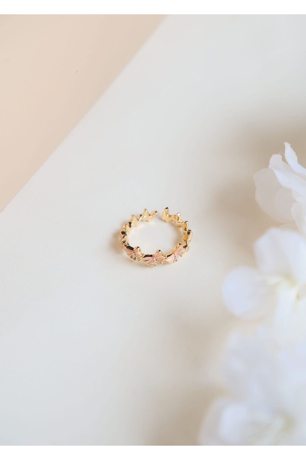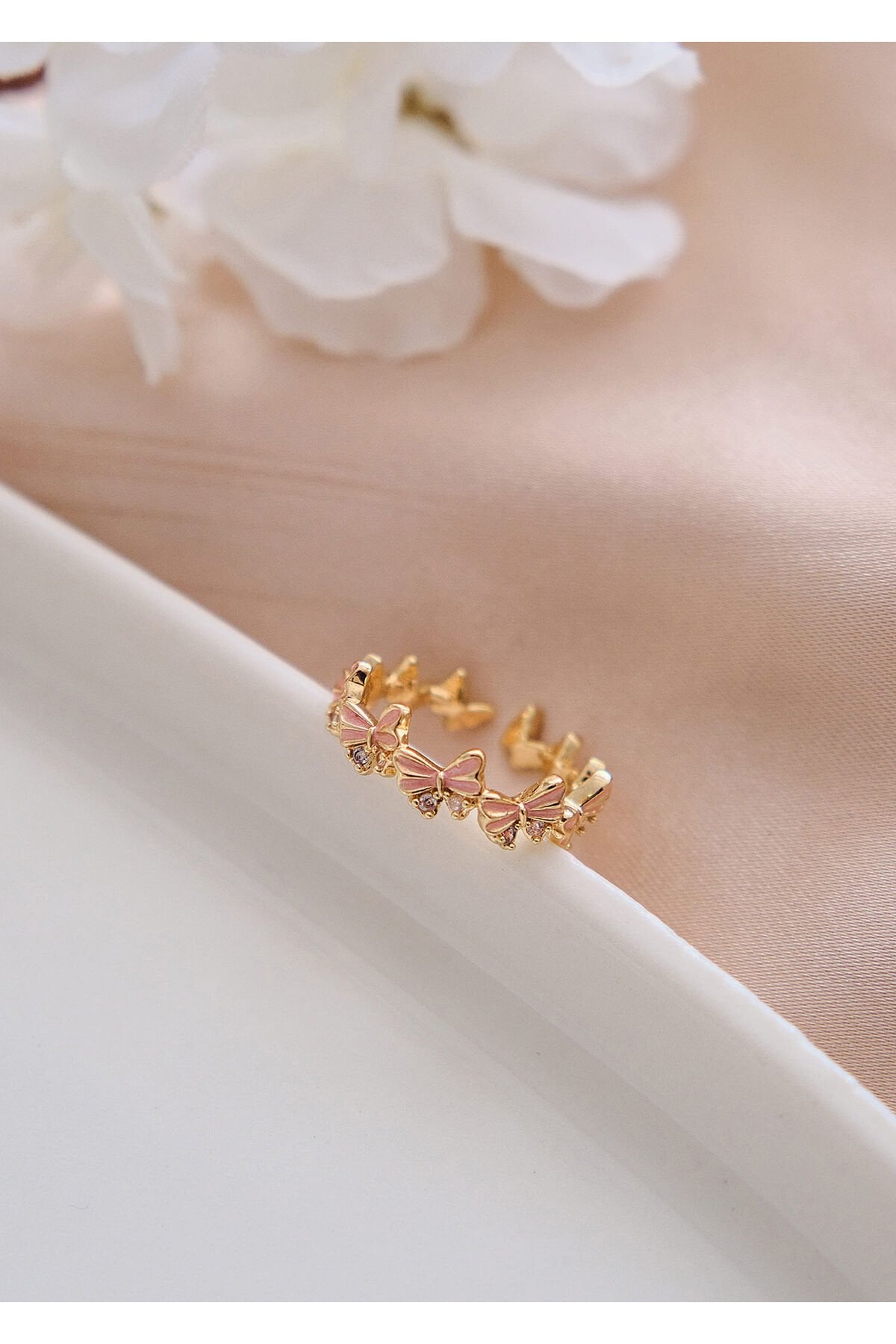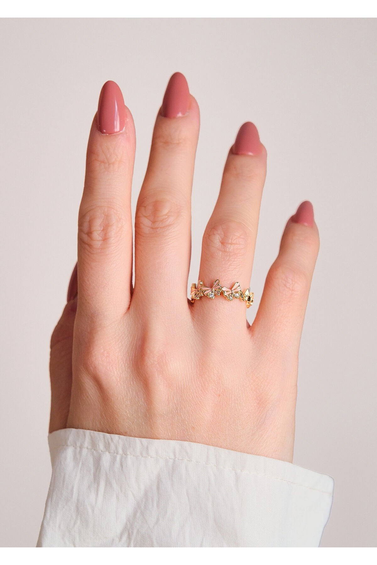 Zirkon Taşlı Pembe Kelebek Çelik Yüzük